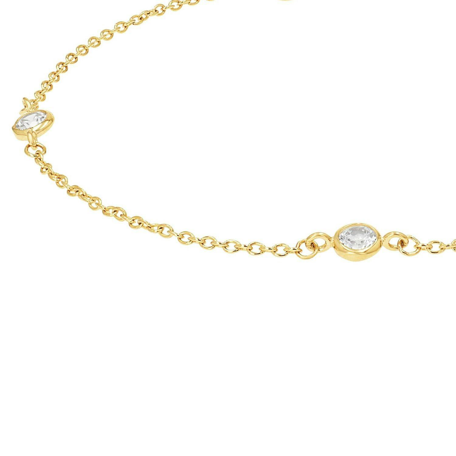 Dieses filigrane 18 cm lange Damen-Armband mit integrierten Zirkonia (synth.)-Anhängern besteht aus 375 Gelbgold. Als Verschluss dient ein praktischer Karabinerverschluss.