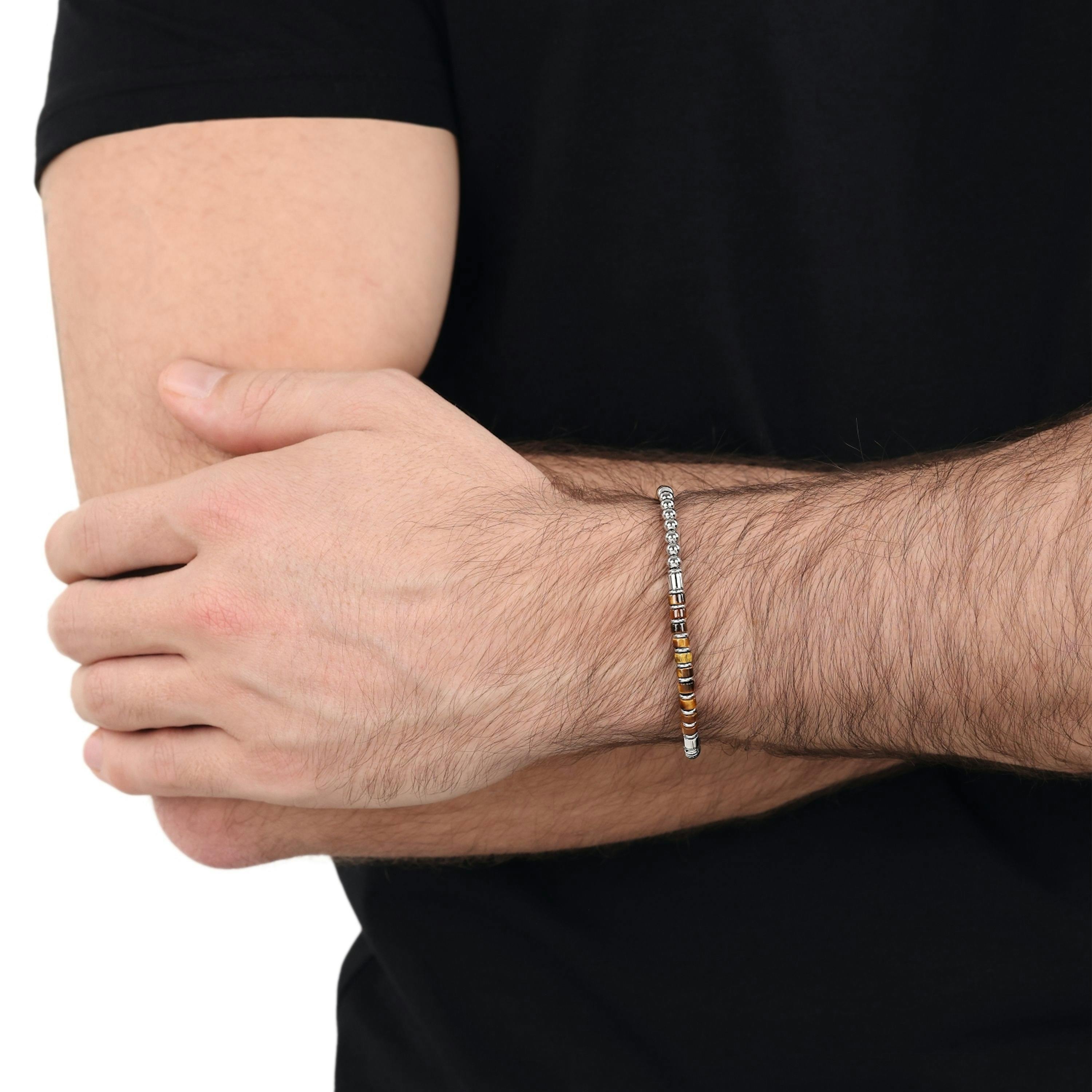 - Das Armband besteht aus hochwertigem Edelstahl und ist mit Tigerauge-Steinen besetzt