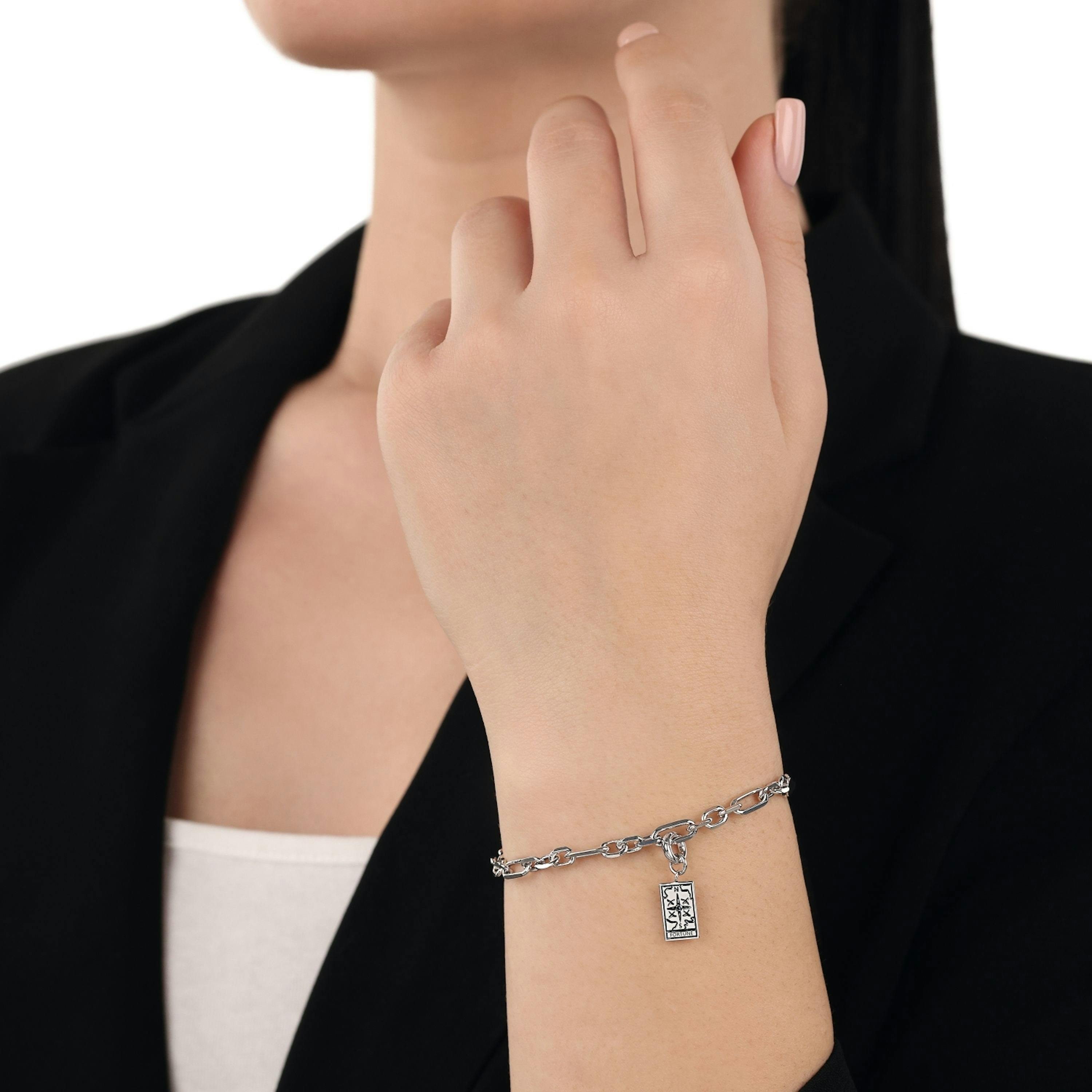 Der Anhänger der bekannten Echtschmuckmarke Amor ist für Damen designt und ein absoluter Hingucker. Für Damen die sich von der Masse abheben möchten: Dieser einzigartige Anhänger aus 925 Sterling Silber mit dem Motiv einer Tarotkarte ist das optimale Accessoire für jeden Anlass. Finde jetzt die ergänzenden Schmuckstücke von Amor und profitiere von der vielseitigen Trageweise dieses Charms. Durch seine hochwertige Verarbeitung und den bequemen Tragekomfort ist der Charm-Anhänger für Damen ein perfektes Accessoire. Mit einer Anhängerlänge von 22 mm und einer Breite von 7 mm ist es eine stilvolle Ergänzung für Frauen, die auf der Suche nach einem zarten Accessoire sind. Die Amor Charms Kollektion lässt sich mit Halsketten, Colliers, Armbändern sowie Fußketten und Creolen frei kombinieren und erweitern. Achte hierfür auf die passenden Maße, um die Öse der Anhänger anzubringen. Der bewusst gewählte Sicherheitsverschluss mit kleiner Nase zum Öffnen sorgt dafür, dass die Charms sicher an ihrem Platz bleiben. Die Amor Schmuckkreation wird in einer ansprechenden Schatulle geliefert, die sich hervorragend zum Aufbewahren sowie Verschenken eignet. Im Lieferumfang enthalten ist nur der Artikel aus dem Titel und nicht etwa weiteres Schmuckzubehör, das zur bildlichen Veranschaulichung verwendet wurde.
