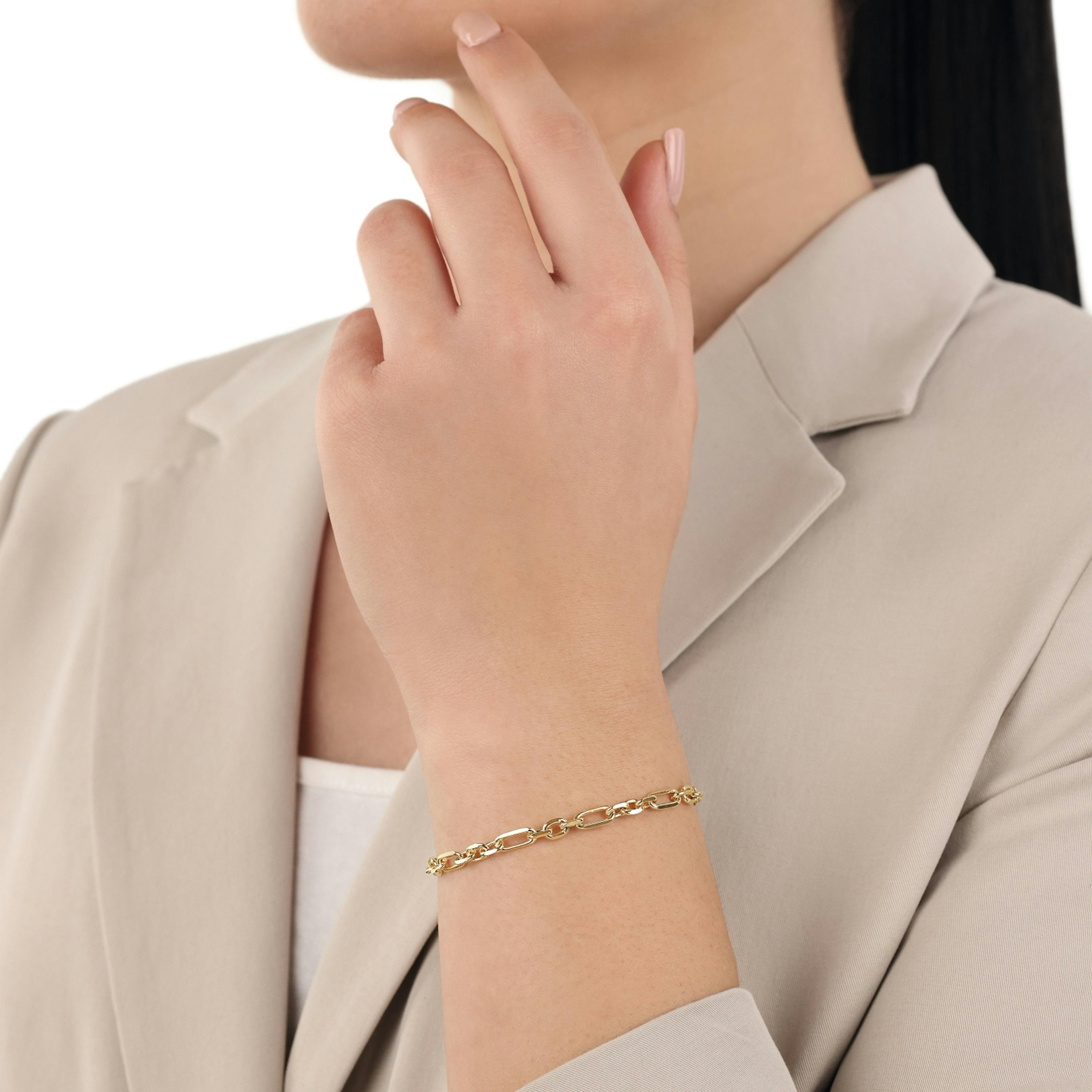 - Der Armschmuck in Figarogliederung für Damen ist in der Länge 16+4 cm erhältlich und hat einen praktischen Karabinerverschluss
