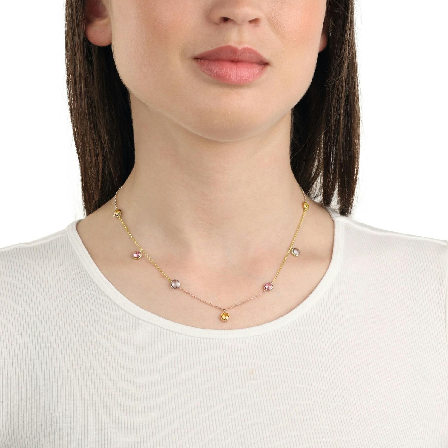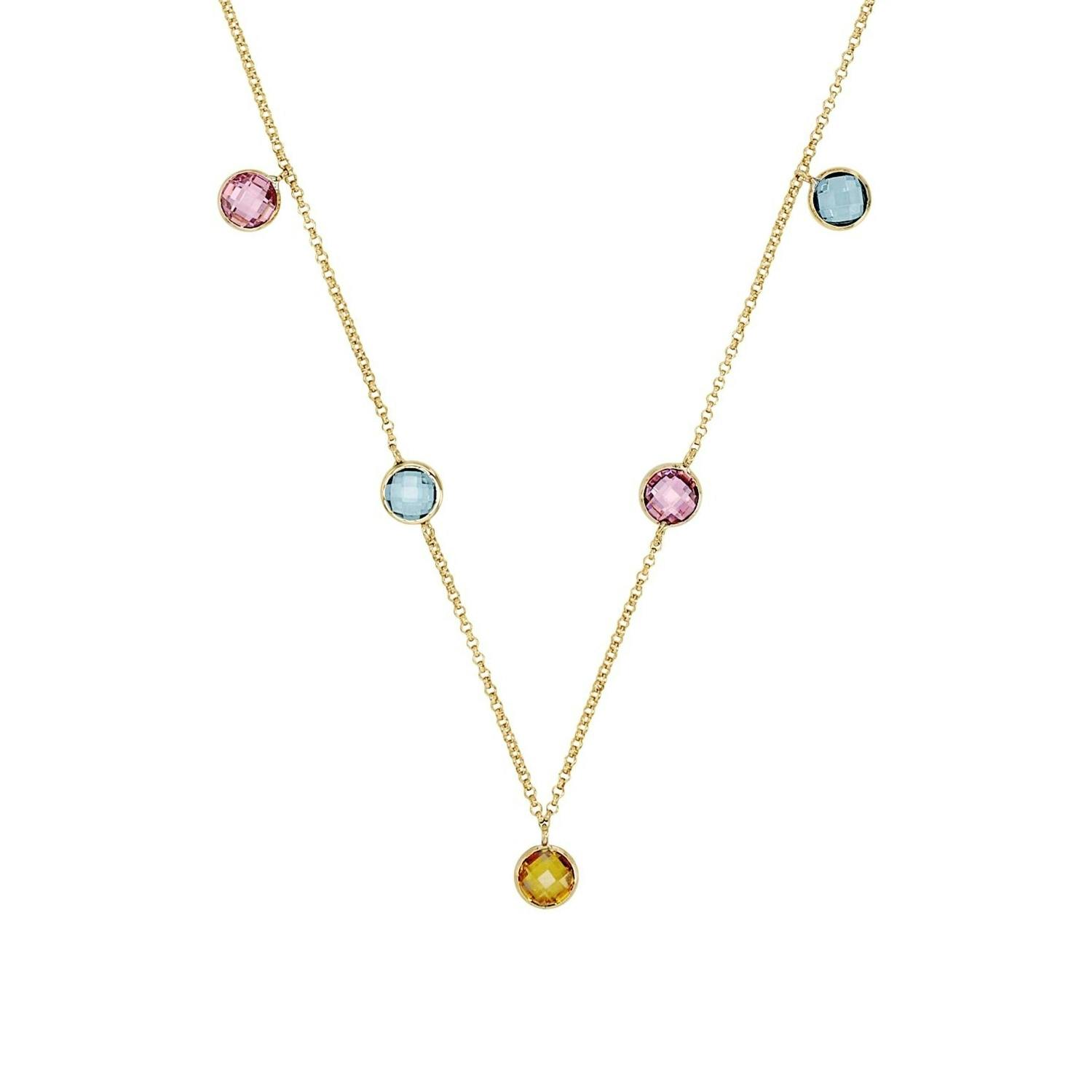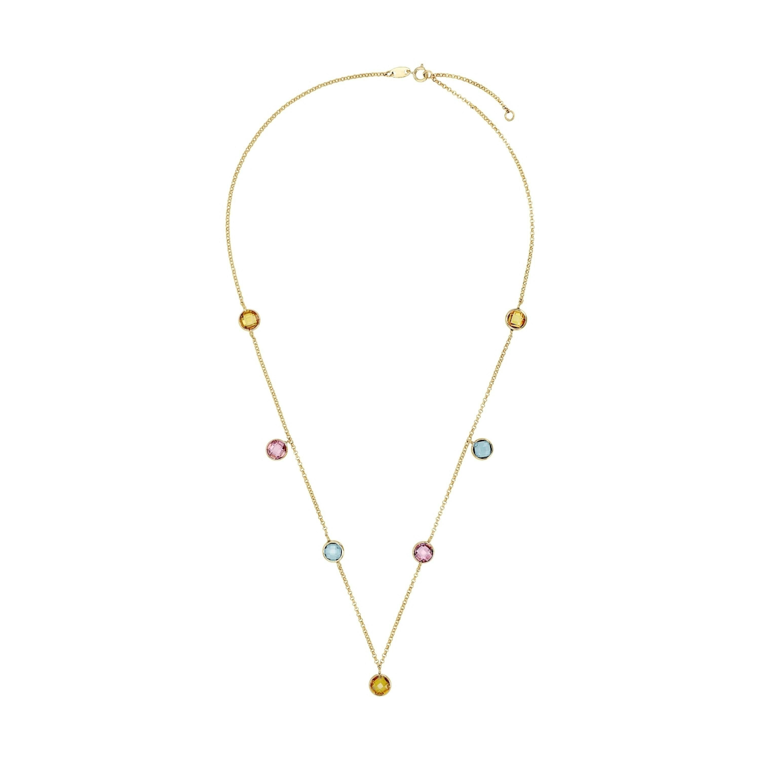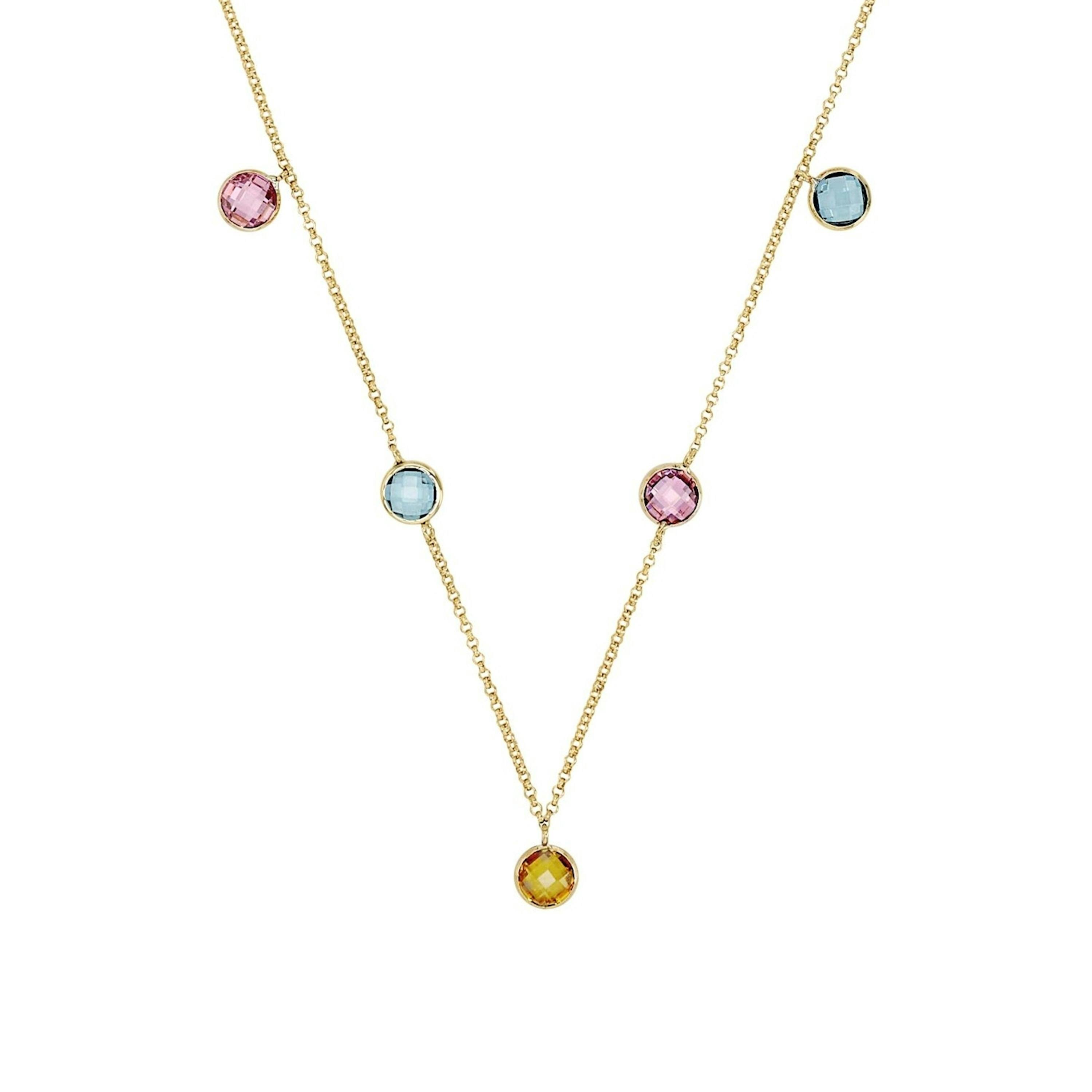 Ganz viel Stil überbringt dieses wundervolle Schmuckstück. Die Halskette besteht aus hochwertigem 375er Gelbgold (9 ct). Sowohl die Kette als auch die vielen bunten Zirkonia (synth.)-Steine versprechen eine hochwertige Qualität und ein zeitloses Design.