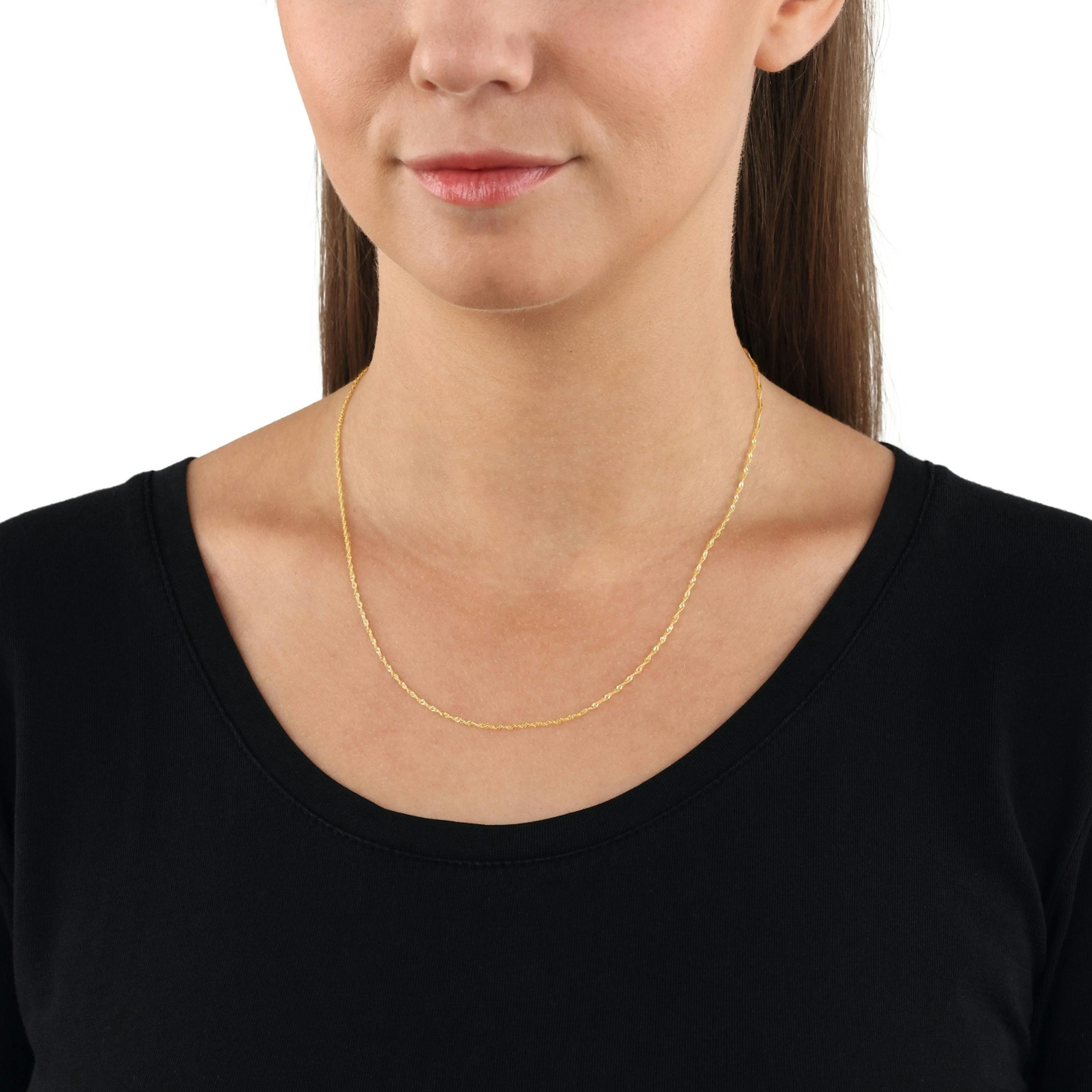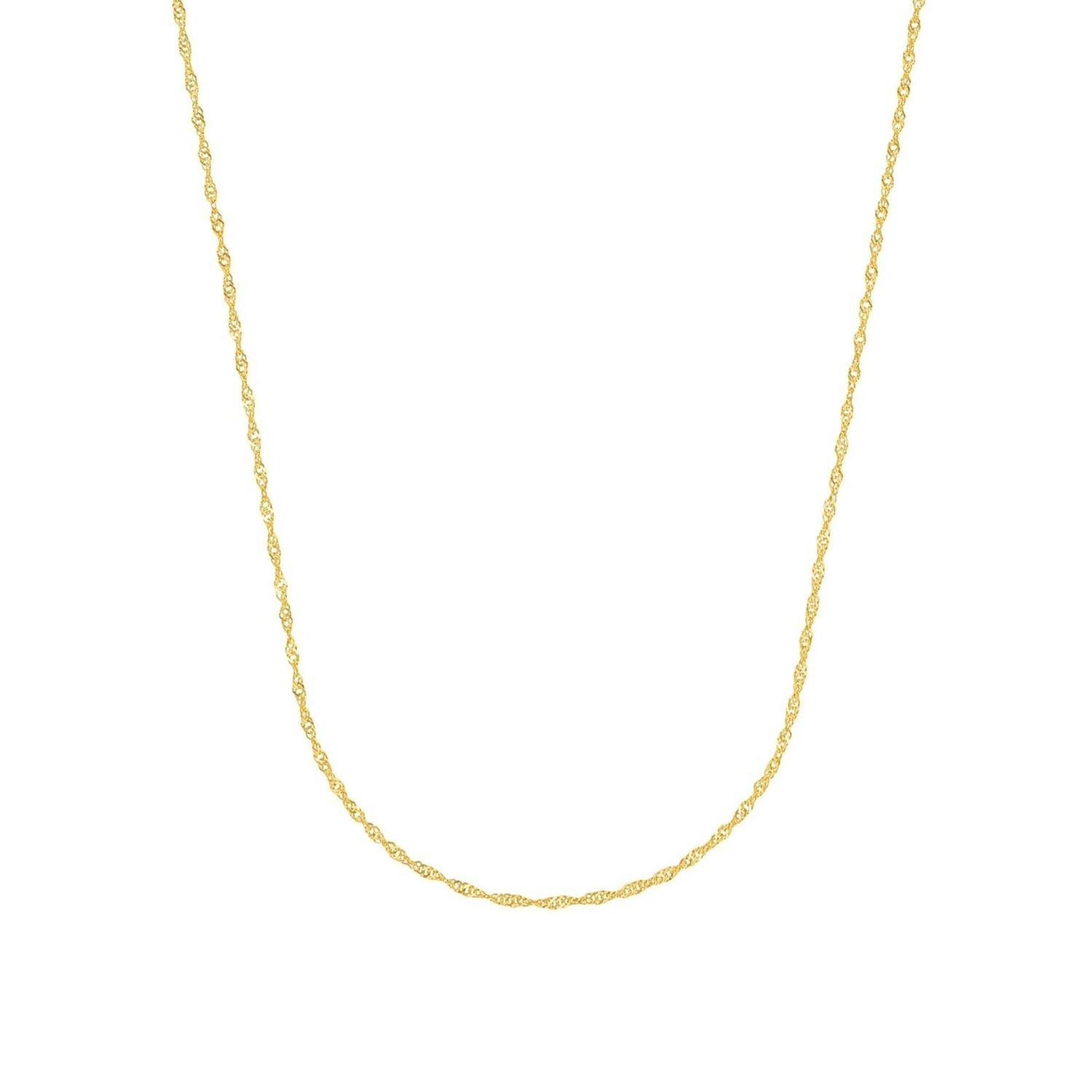 - Die filigrane Singapur-Kette für Frauen aus Gold überzeugt im zeitlosen Design. Die Kette kann als Collier getragen oder mit einem Anhänger kombiniert werden. Kommt in passender Schmuckbox