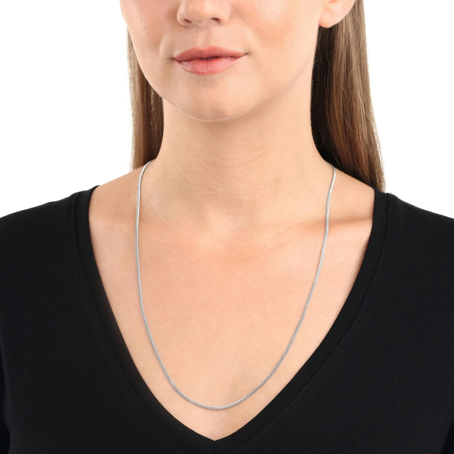 Zartes Design und hochwertige Verarbeitung vereinen sich in diesem 60 cm langen Collier Kettchen mit Panzergliederung. Ideal für das Tragen von Anhängern schmiegt sich das 925 Sterling Silber an die Haut. Die Kettenstärke beträgt ca. 2 mm. Das Halskettchen ist für Damen und Herren geeignet. Als Verschluss dient ein praktischer Federring.