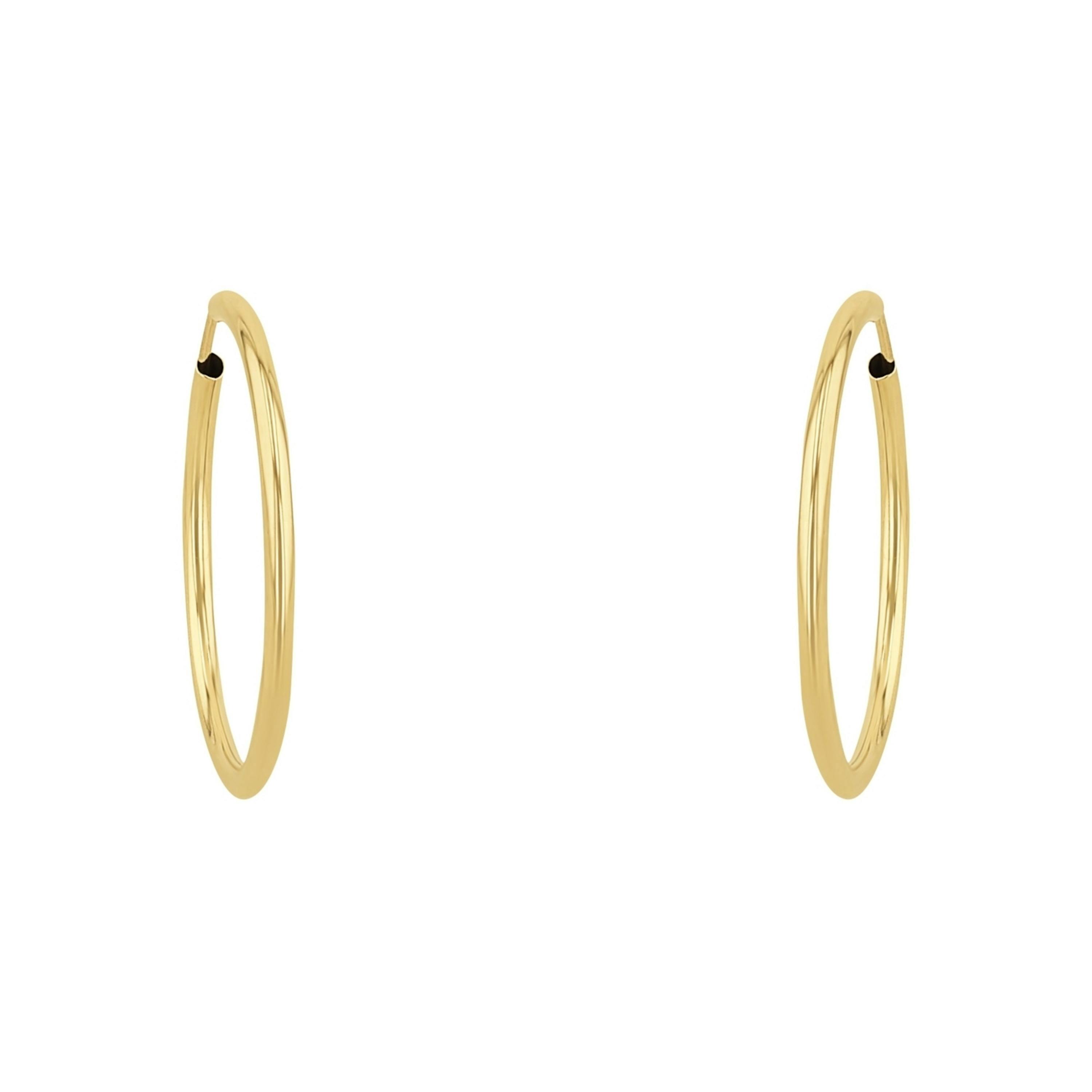 Die klassischen kleinen Creolen sind ein absolutes Must-have Basic. Passend zu jedem Anlass ist dieser Ohrschmuck immer das richtige Accessoire. Getragen werden können die Creolen von Frauen genau so wie von Männern. Die hochwertige Verarbeitung und das klassische Design mach das Kombinieren des Ohrschmucks besonders einfach. Ob mit einer schönen Halskette oder als Bestandteil des angesagten "Ear Party" Looks, diese Creolen sind echte Allrounder. Hergestellt wurden die Ohrringe aus hochwertigen glänzendem 375 Gelbgold.