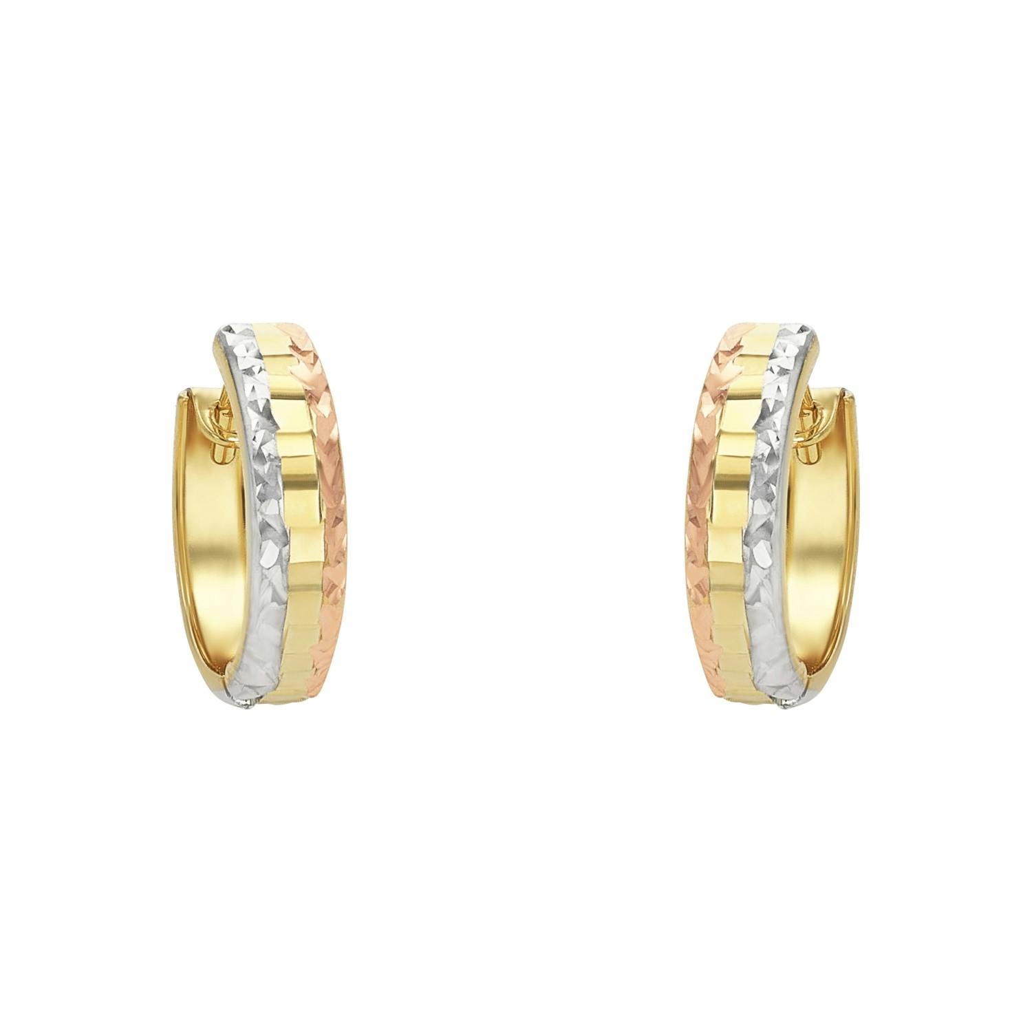 Damen-Creolen von Amor. Diese Creolen für Damen von der bekannten Echtschmuck-Marke Amor zeigen sich im trendy Bicolor-Look. Der Ohrschmuck wurde aus hochwertig glänzendem 375 Gelbgold gefertigt. Die kleinen 9-karätigen Kreolen für Damen haben eine Größe von ca. 12 mm. Für den sicheren Halt beim Tragen sowie eine einfache Handhabe sorgt der praktische Bügel-Verschluss. Somit zählen die Ohrringe Gold 375 zu den etwas Kleineren. Trage die Gold als dezente Einzelstücke oder kombiniere sie mit weiteren Accessoire wie der passenden Halskette, Armband und Ring. Darüber hinaus kannst du die Creolen als Teil des angesagten Ear-Piece-Looks tragen, bei dem du gleich mehrere Ohrringe am selben Ohr trägst. Diese Creolen geben dir die Möglichkeit, deinen eigenen Look zu erschaffen. Die Echtschmuck-Creolen Gold 375 kommen zudem in einer geeigneten Schmuckbox - auch eine tolle Geschenkidee.