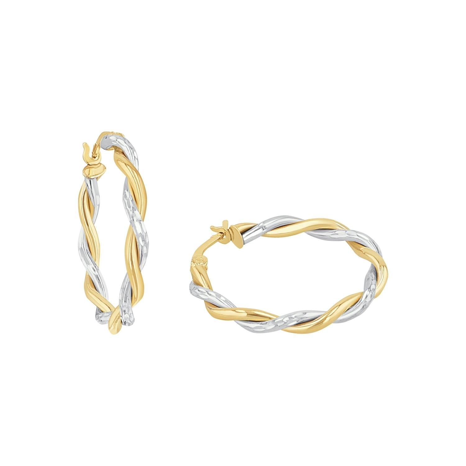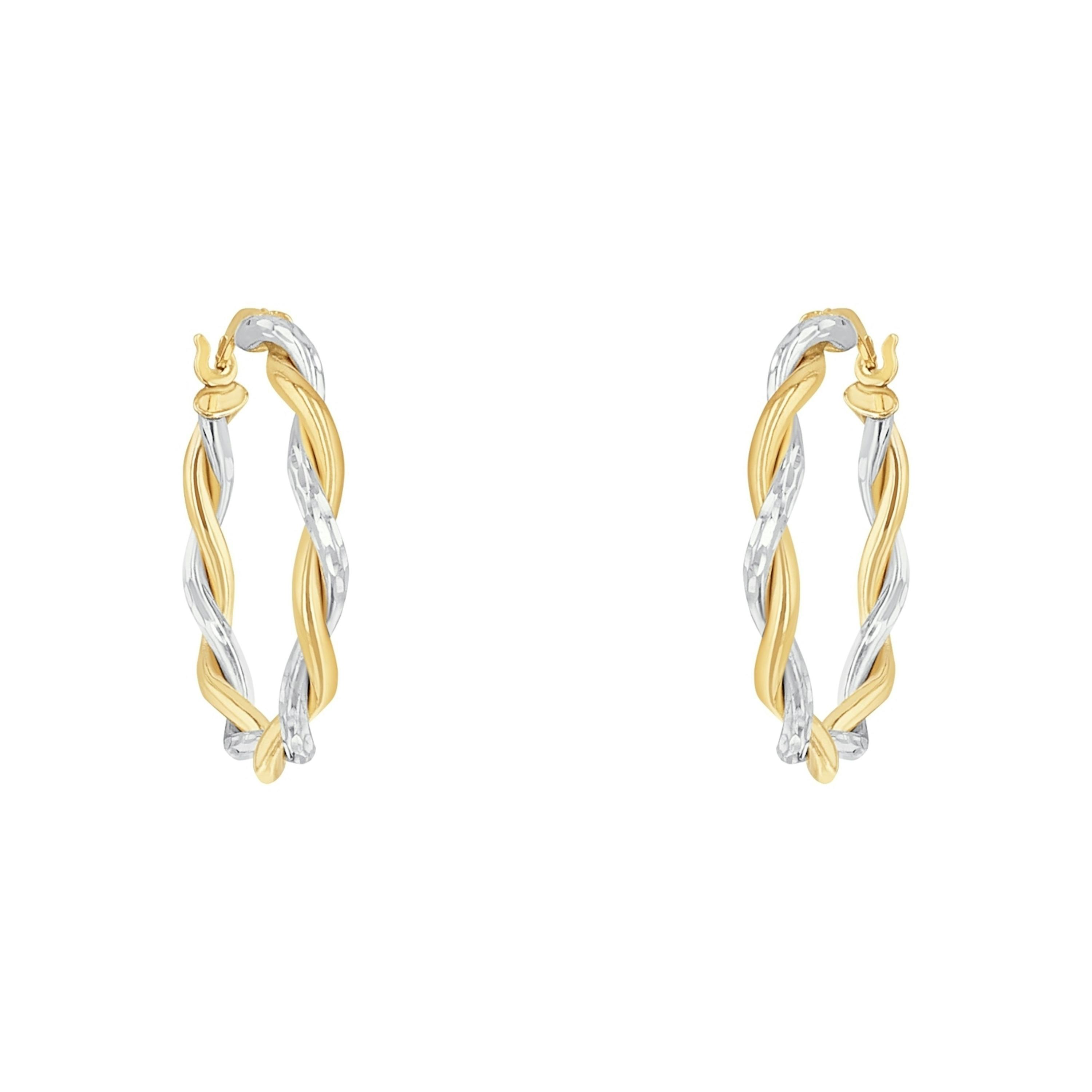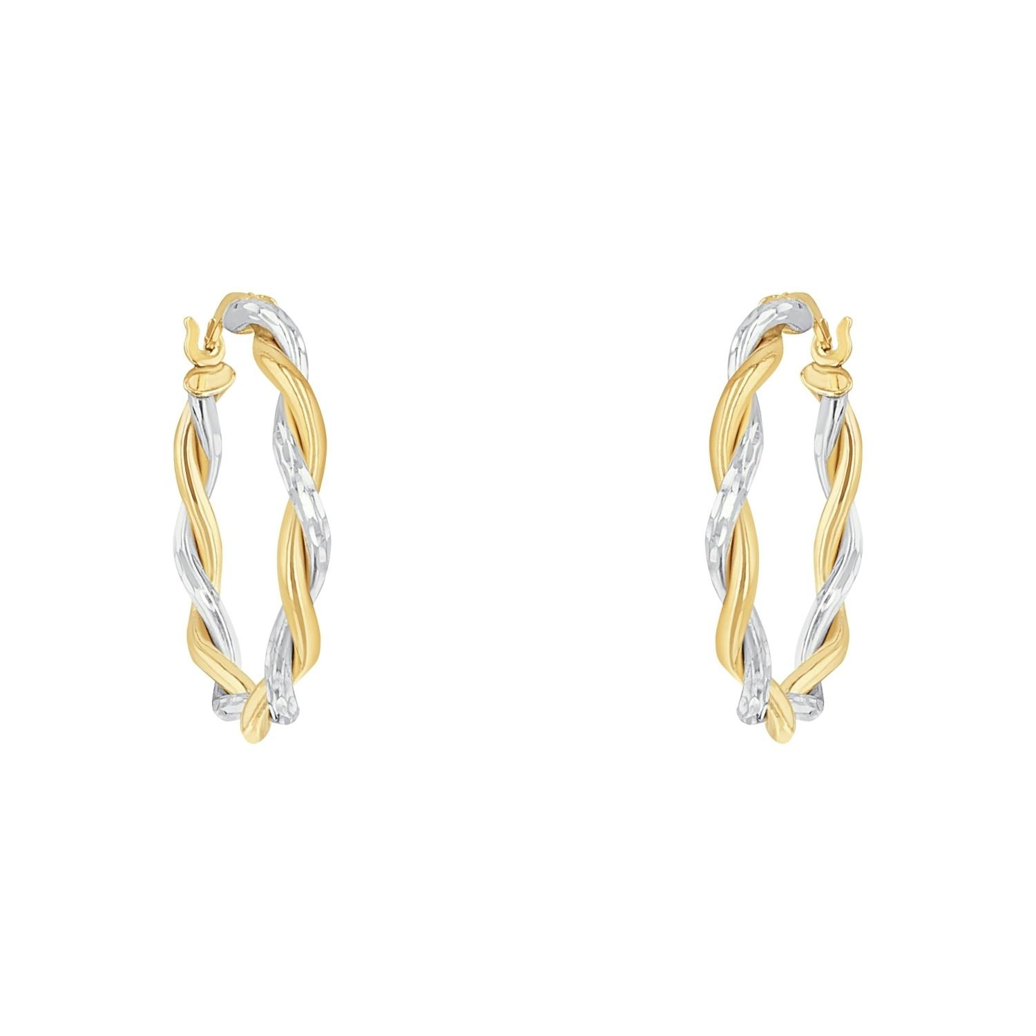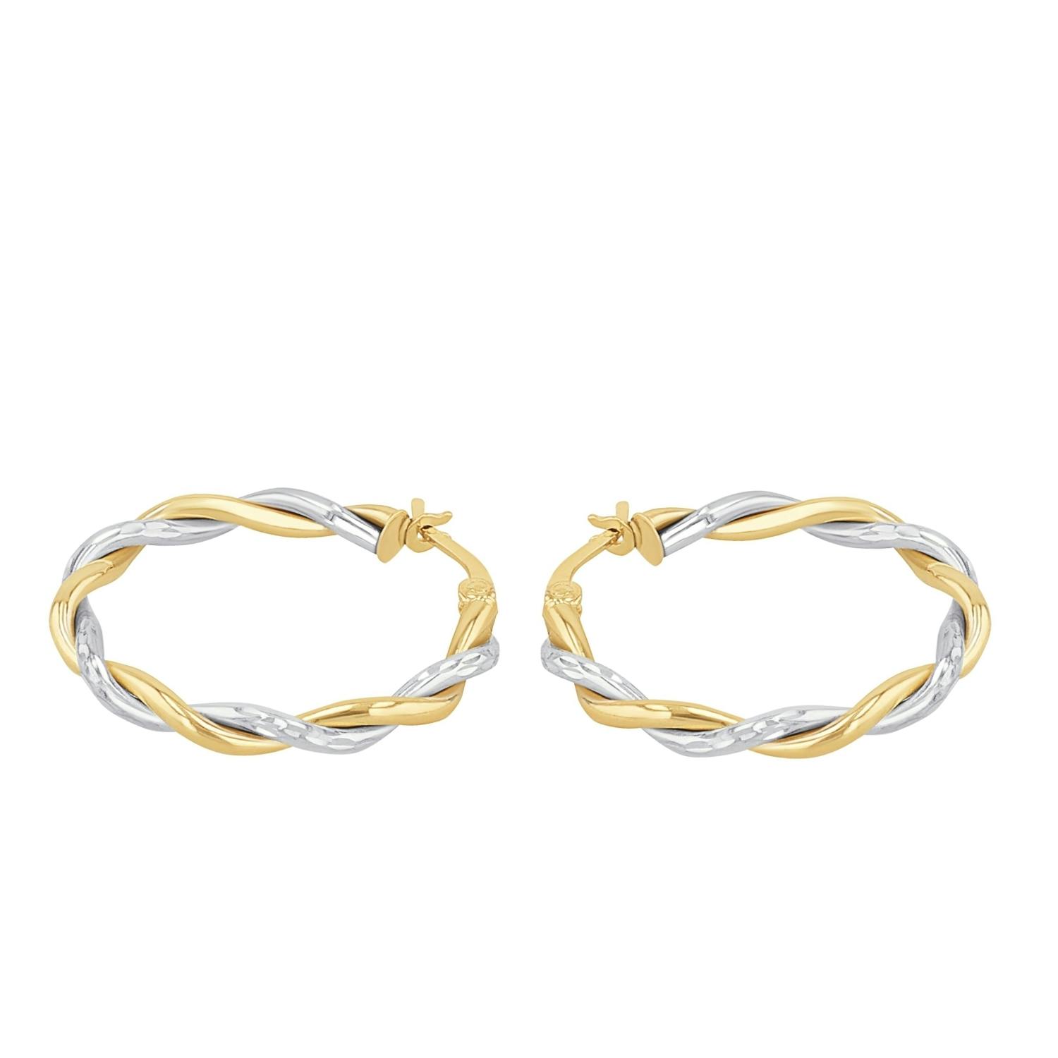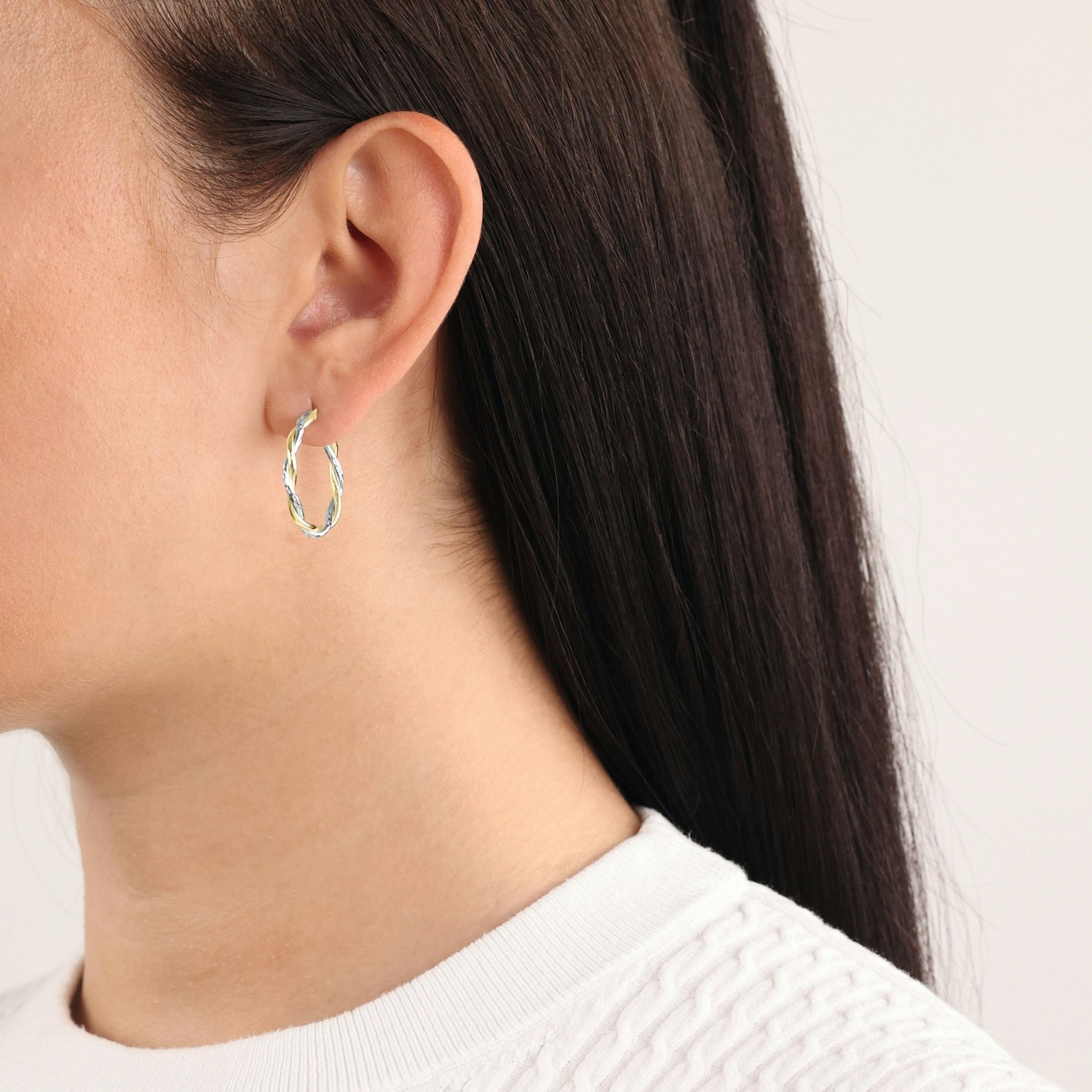 - Zweifarbige Creolen in warmem Gold und glänzendem Silber. Die Ohrringe überzeugen in lässigem Kordel-Look