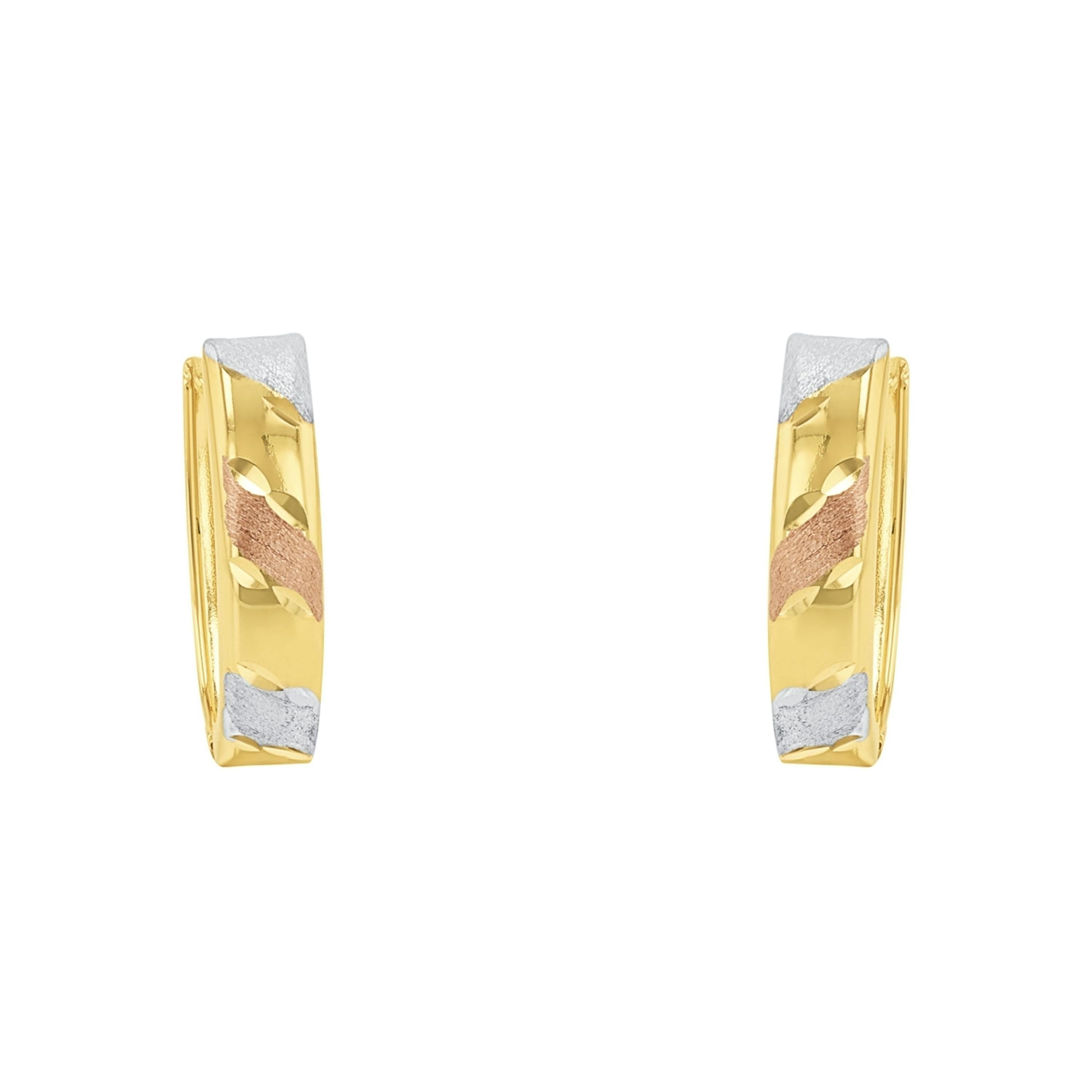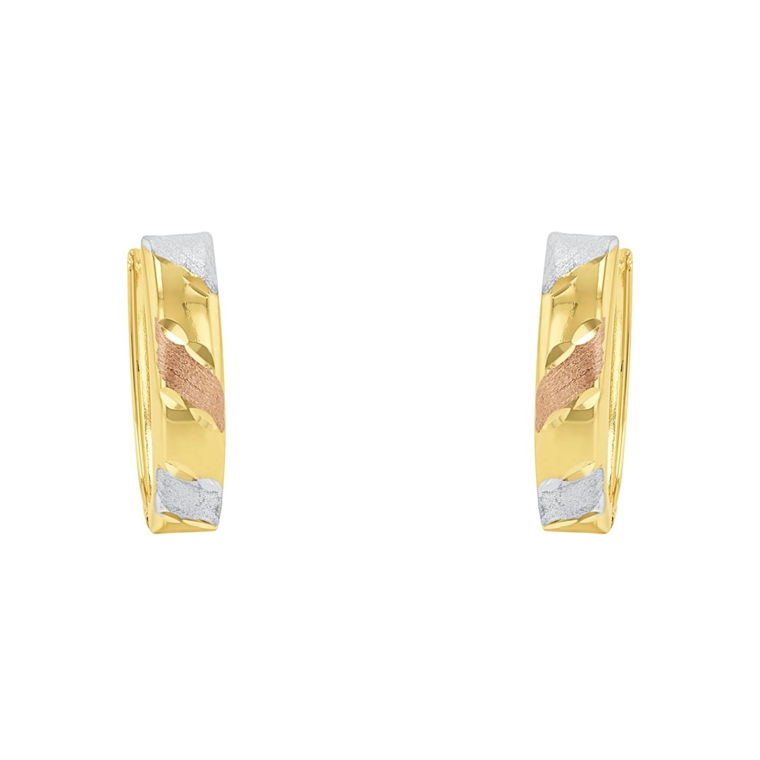 Ein perfektes Zusammenspiel ergibt sich bei diesen diamantierten Ohrringen im gekonnten tricolor Look. Gefertigt sind die Creolen aus hochwertigen 585er Gold und sind mit ihrer strukturierten Oberfläche ein wahrer Hingucker. Die Ohrringe aus Gold haben die Maße: ca. 12 mm x ca. 3 mm. Die Damen Ohrringe Gold sind immerzu das perfekte Accessoire, das Ihnen viele Komplimente sichert. Wenn Sie auf der Suche nach einen Geschenk sind, dann lassen Sie mit diesen wundervollen Creolen Frauenherzen höher schlagen! Verschenken Sie Freude mit Amor!