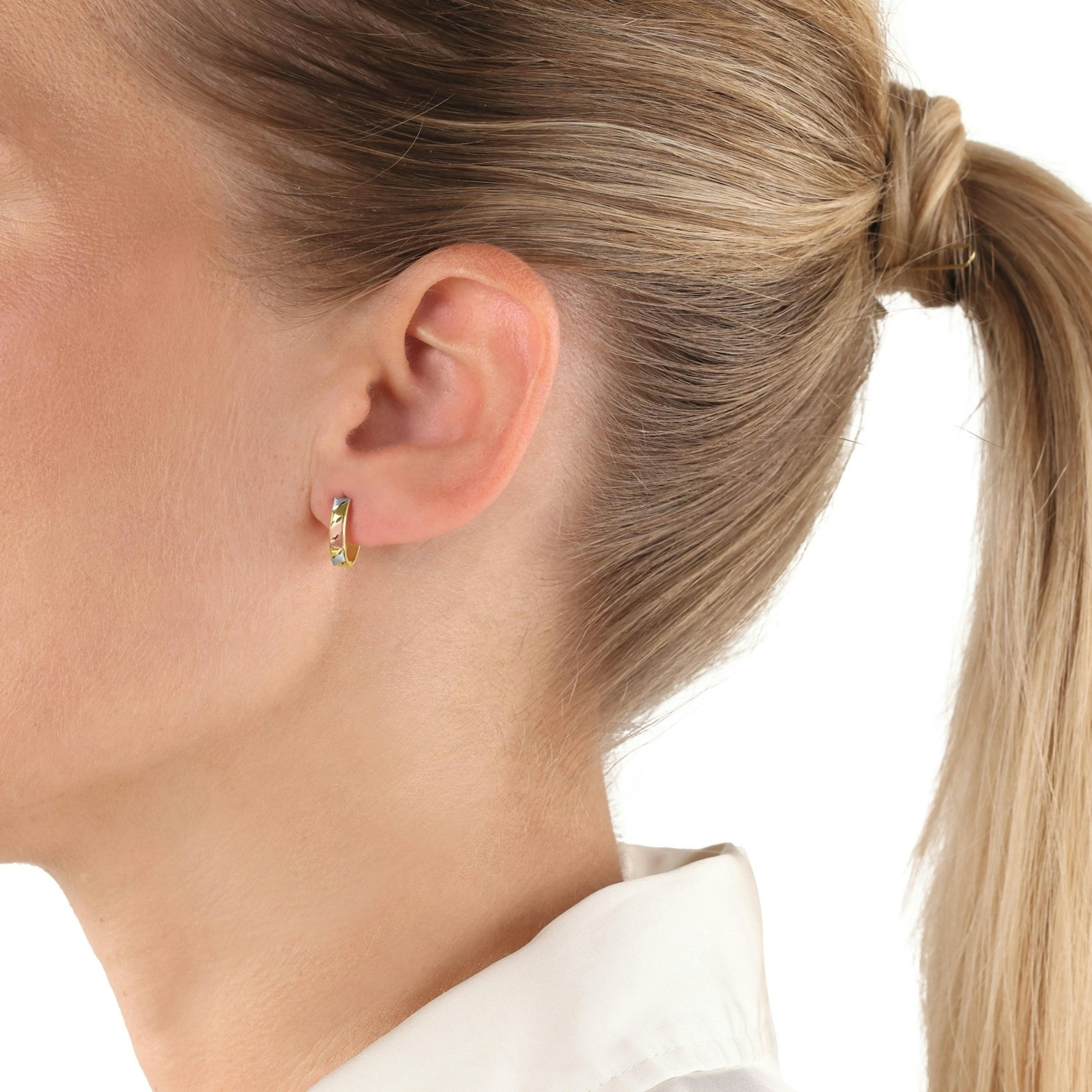 - Raffinierte Creolen im trendigen tricolor Look durch aufwendige Diamantierung.