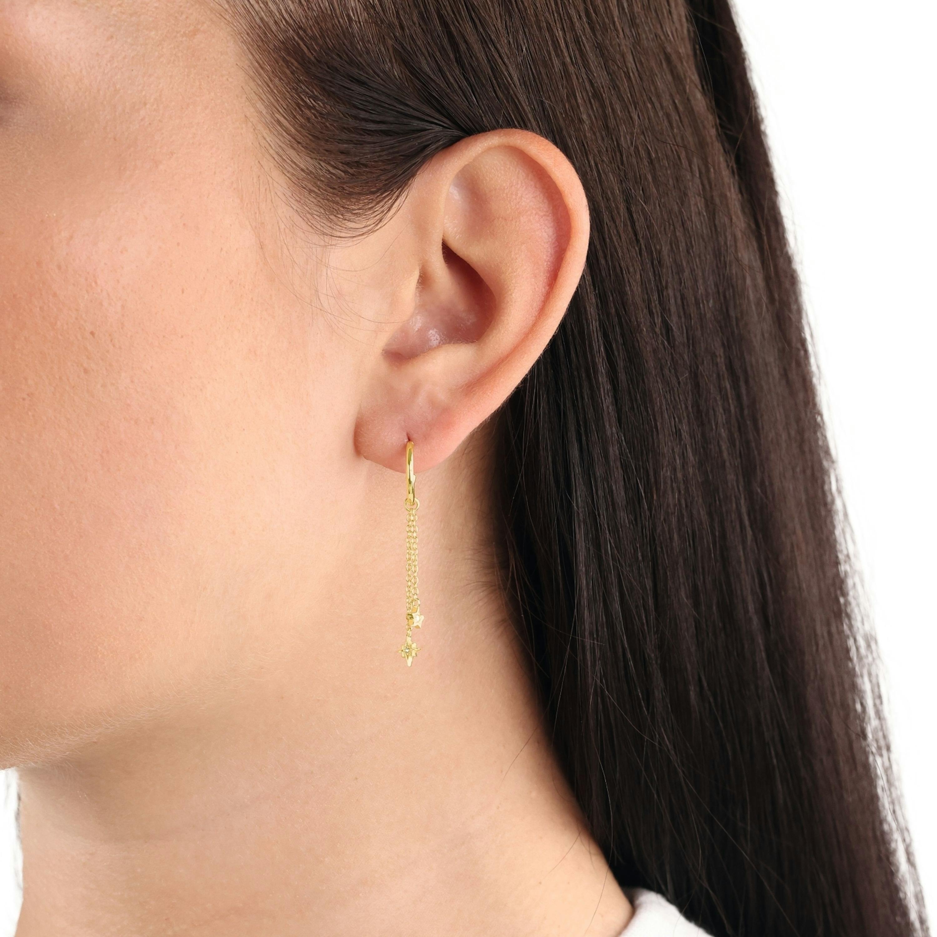 Diese auffälligen Halbcreolen von Amor sind etwas ganz Besonderes. Der praktische Steckverschluss dieser Ohrringe sorgt für Sicherheit beim Tragen, das moderne Design lässt sie zu einem perfekt platzierten Accessoire werden. Als besonderes Highlight haben diese Creolen Hänger Elemente, an deren Ende ein kleiner funkelnder Stern baumelt, der der mit einem hell strahlenden Zirkonia (synth.) Stein besetzt ist. Diese Must-have wurden aus hochwertig 925 Sterling Silber hergestellt. Kombiniere die Ohrringe mit der passenden Halskette oder nutze sie für den angesagten Ear Party Style.