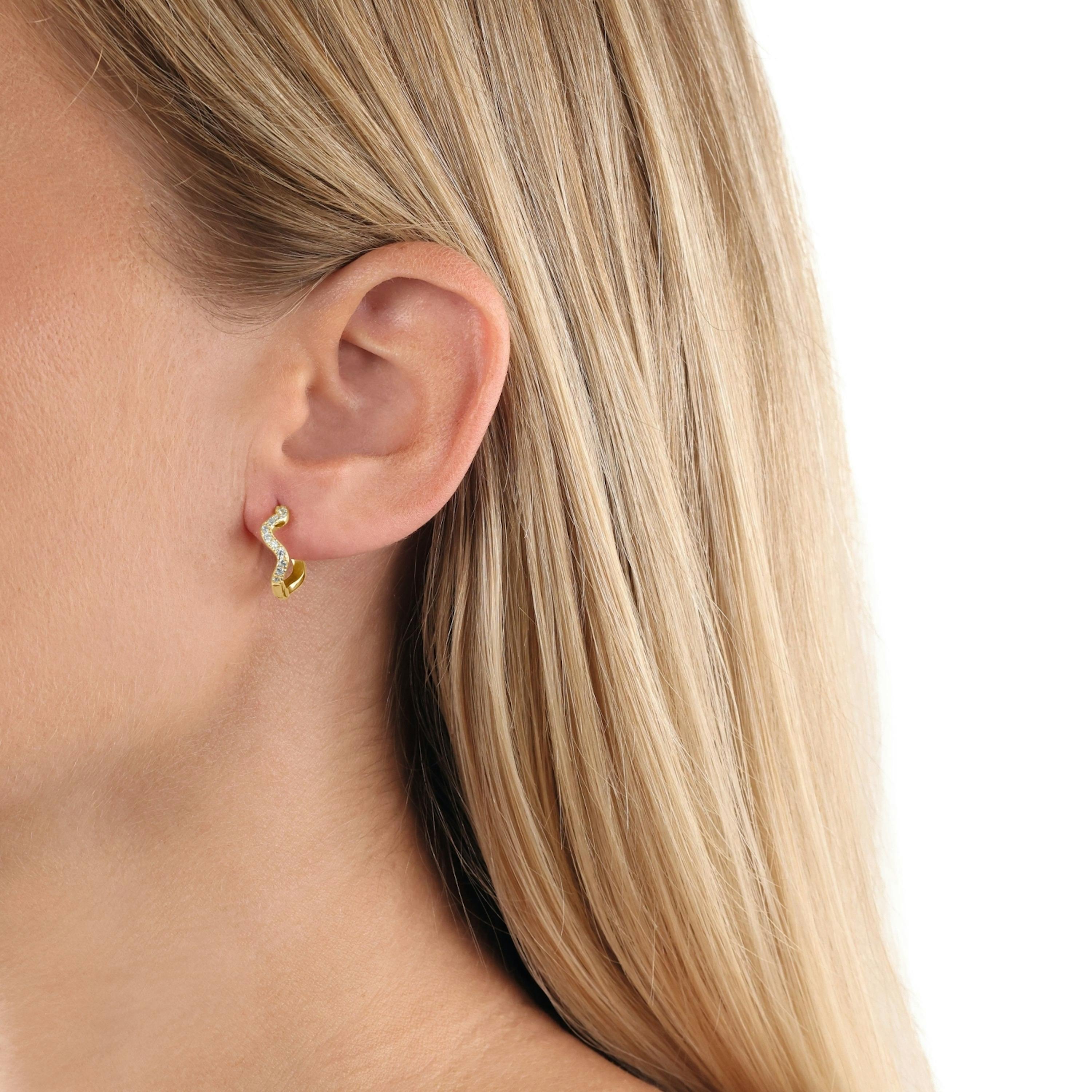 Funkelnde Creolen für Damen von NOELANI in innovativem Design. Die gewellte Form der Ohrringe macht aus ihnen ein modernes Schmuckstück, das alle Blicke auf sich zieht. Ganz besonders auffällig sind die zahlreichen strahlenden (synth.) Zirkonia Schmucksteine, mit denen der Ohrschmuck verziert ist. Die Hoops wurden aus hochwertigem Sterling Silber gefertigt und haben eine Größe von 15 mm. Ein praktischer Scharnierverschluss sorgt für ein einfaches An- und Ablegen. Der Ohrschmuck kommt in einer passenden Schmuckbox.
