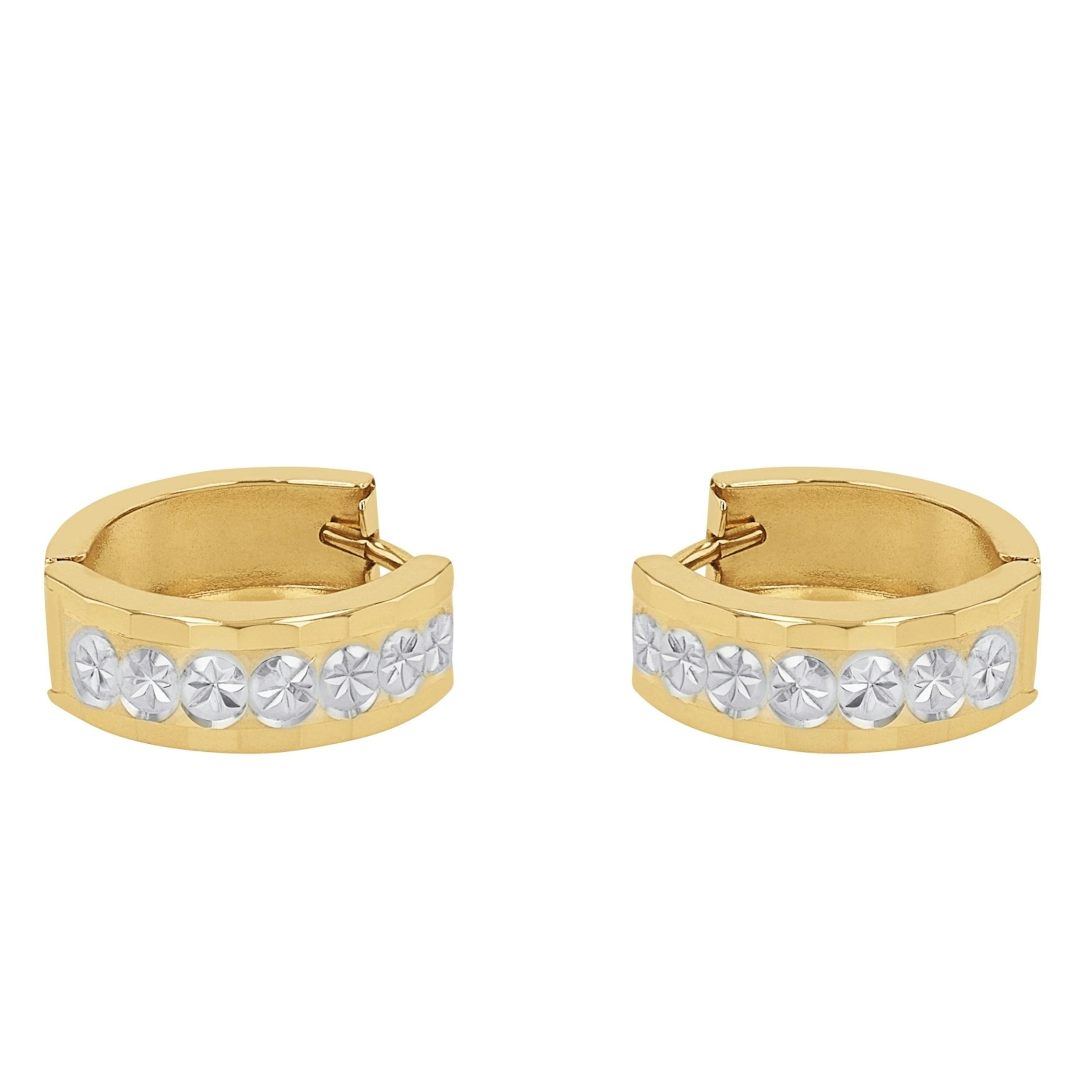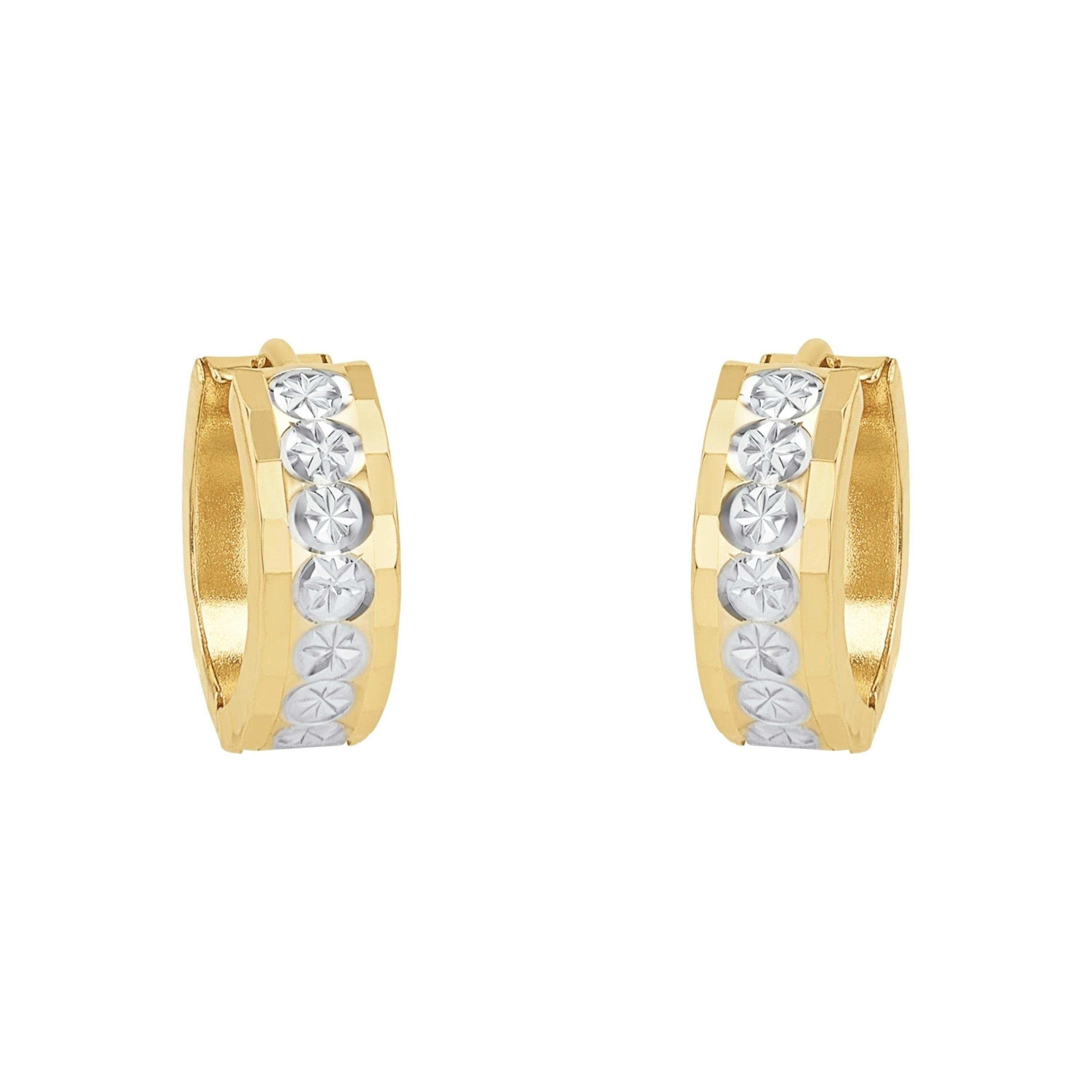 - Die bicoloren Kreolen für Damen aus Gold haben eine Größe von ca. 15 mm. Für den hohen Tragekomfort sowie eine einfache Handhabe des Ohrschmucks sorgt ein praktischer Scharnierverschluss