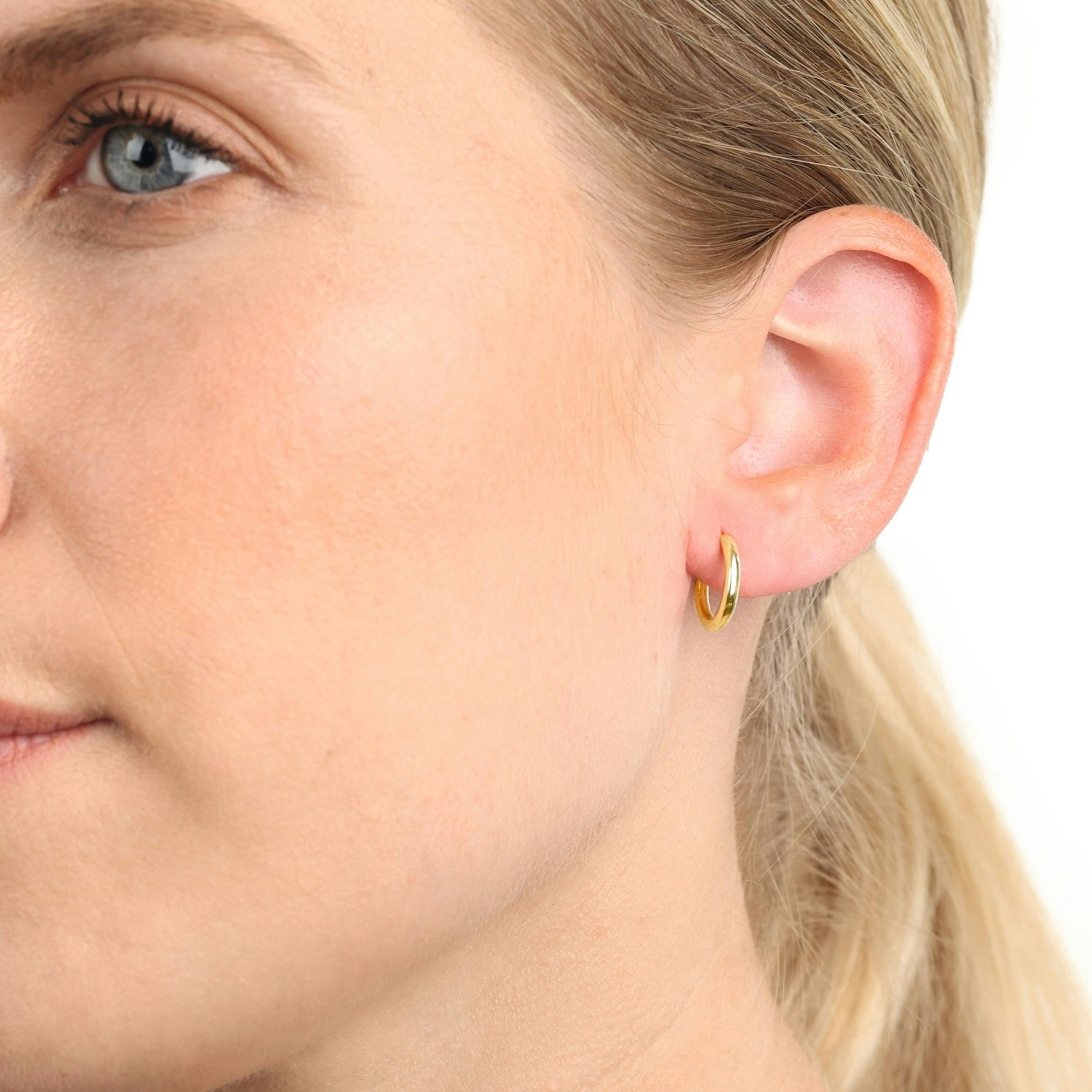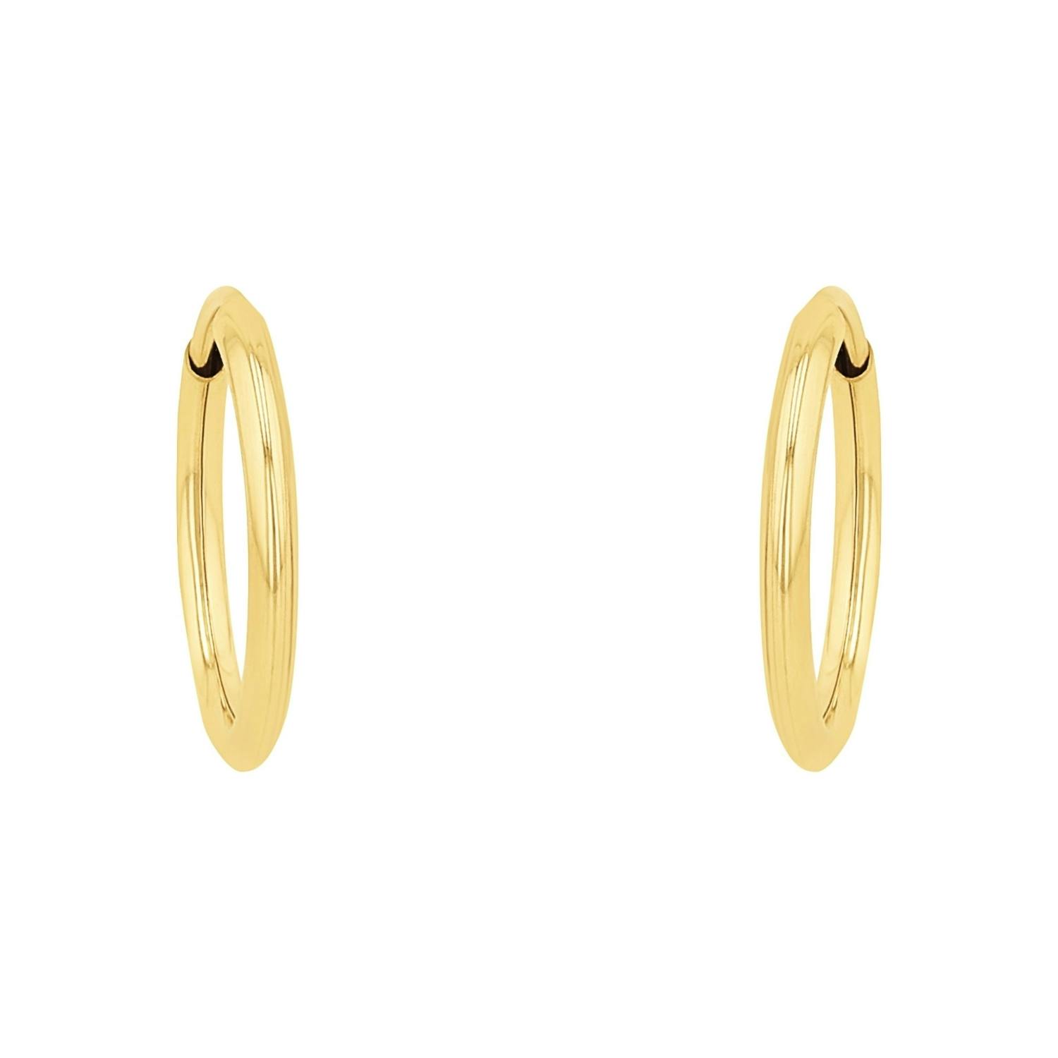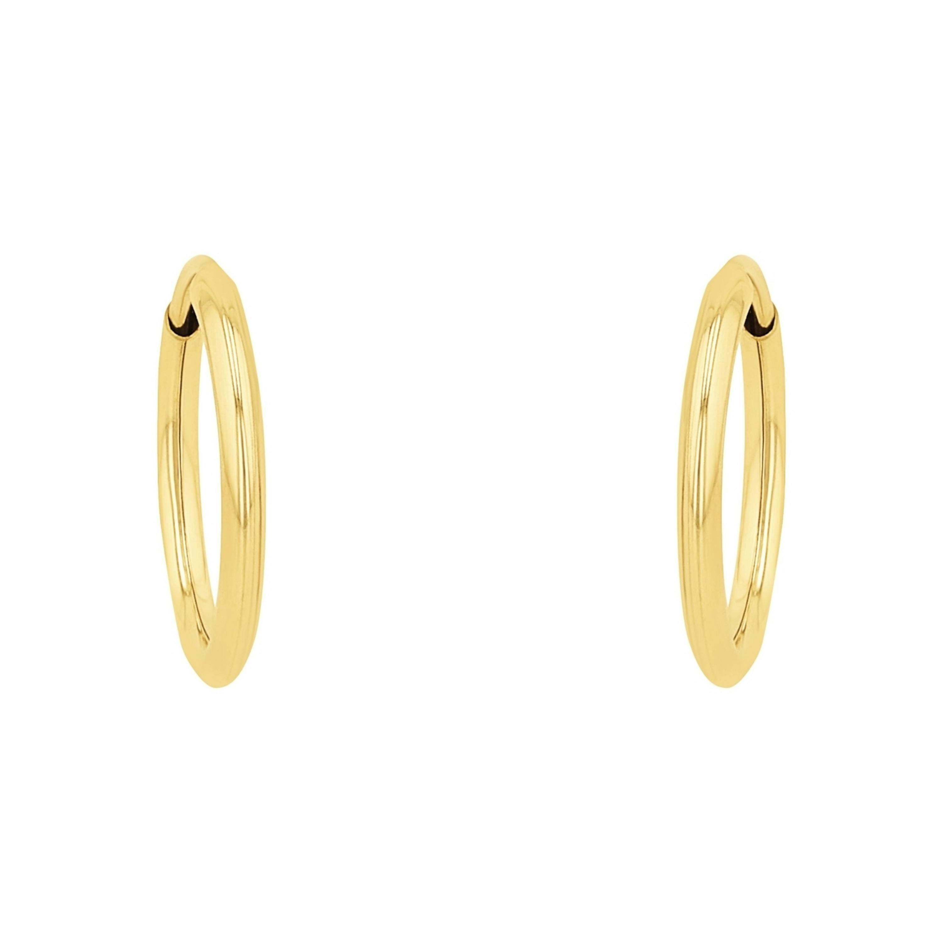 Die klassischen kleinen Creolen sind ein absolutes Must-have Basic. Passend zu jedem Anlass ist dieser Ohrschmuck immer das richtige Accessoire. Getragen werden können die Creolen von Frauen genau so wie von Männern. Die hochwertige Verarbeitung und das klassische Design mach das Kombinieren des Ohrschmucks besonders einfach. Ob mit einer schönen Halskette oder als Bestandteil des angesagten "Ear Party" Looks, diese Creolen sind echte Allrounder. Hergestellt wurden die Ohrringe aus hochwertigen glänzendem 375 Gelbgold.