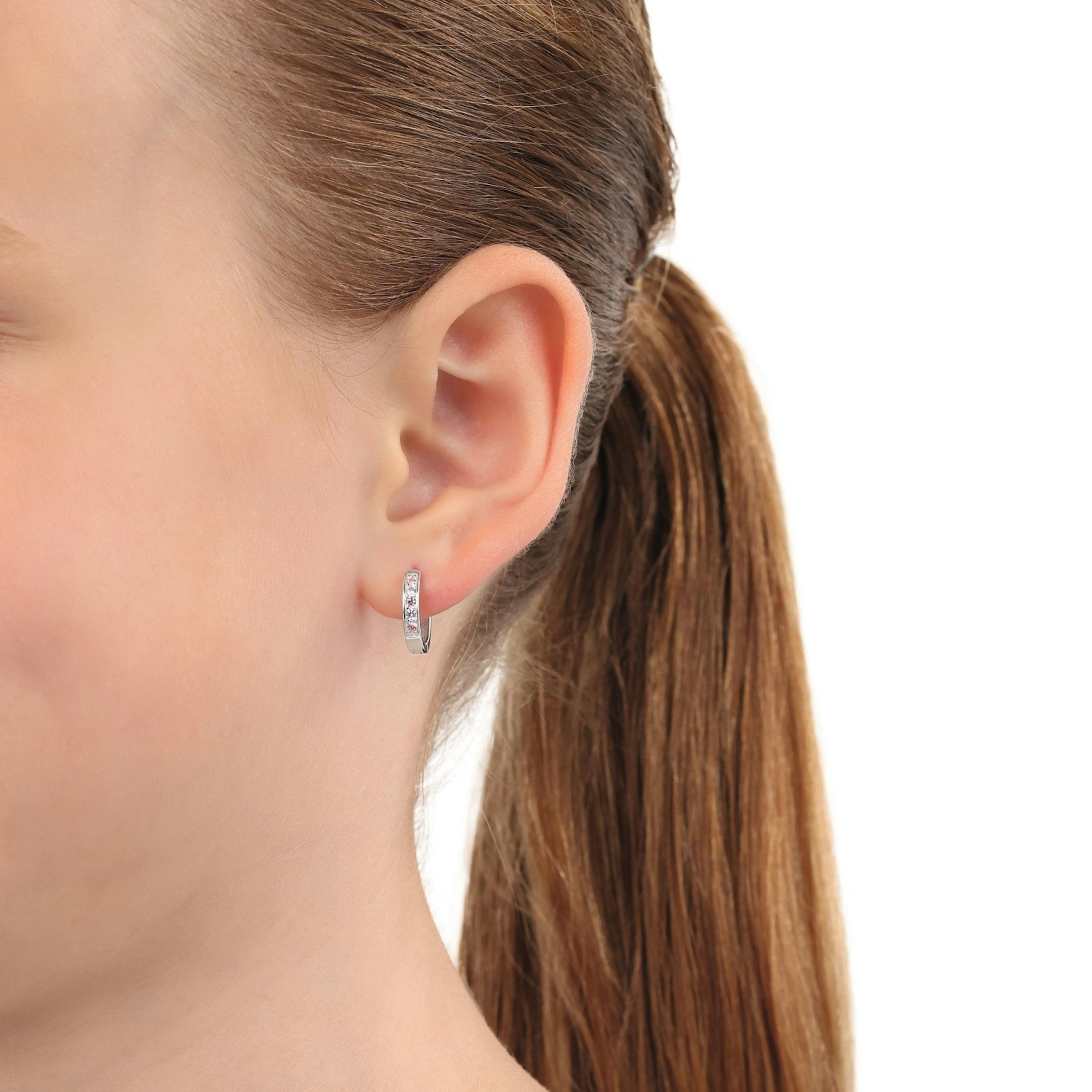 Mädchen-Creolen von Amor. Auch diese Basic-Creolen für Mädchen dürfen in keiner Schmucksammlung fehlen. Die Kinderohrringe mit Steinen wurden aus hochwertigem 925 Sterling Silber gefertigt. Highlight der Mädchencreolen Silber 925 sind die 10 strahlenden Zirkonia Steine. Die Schmucksteine präsentieren sich in knalligen Farben. Ohrringe, die Mädchenaugen zum Strahlen bringen. Die Creolen für Mädchen aus Silber haben eine Größe von ca. 12 mm. Für einen sicheren Halt beim Tragen sowie eine einfache Handhabe der kleinen Creolen sorgt ein praktischer Scharnierverschluss. Trotz allem sollten die Kinderohrringe vor dem Schlafen und Aktivitäten wie Schwimmen und Toben im Freien abgelegt werden. Die Mädchenohrringe Silber mit Stein lassen sich gerne mit weiteren Schmuckstücken wie Halsketten und Armbändern kombinieren. Der Kinderohrschmuck kommt außerdem in einer passenden Schmuckbox - eine tolle Geschenkidee!