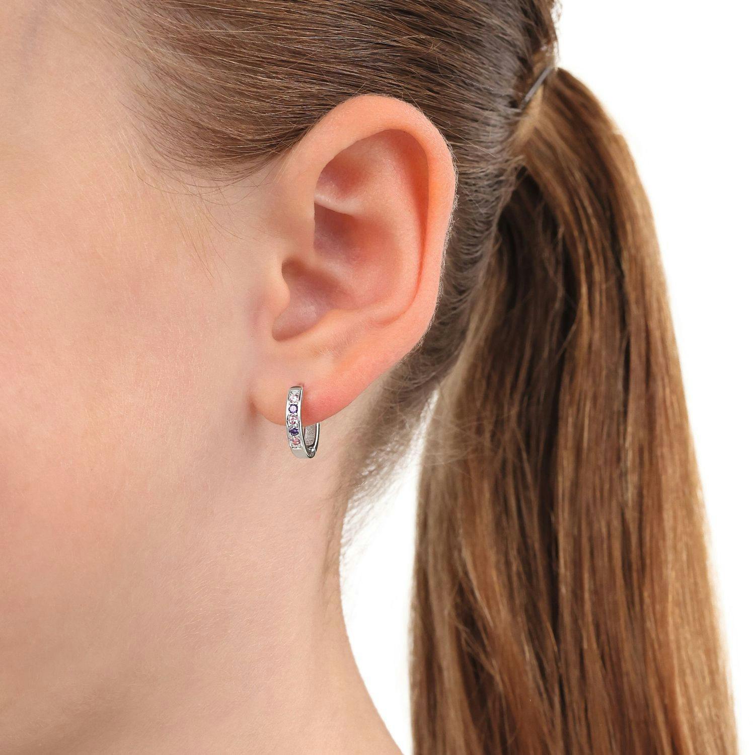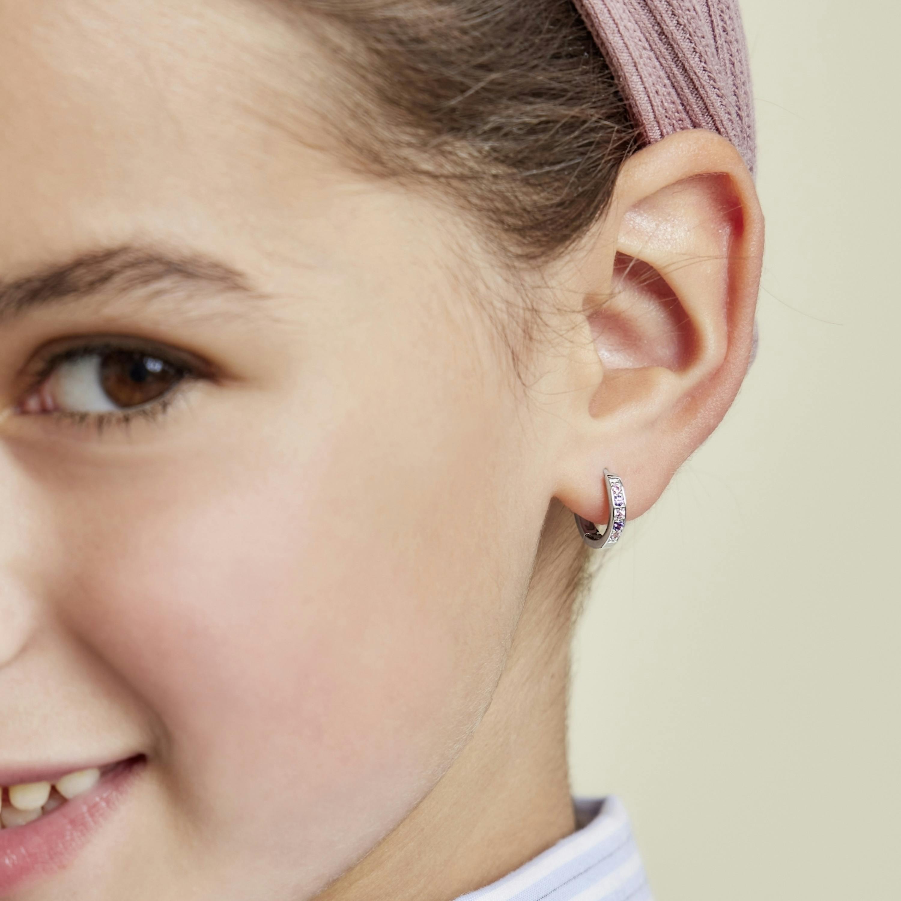 Diese wunderschönen Creolen für Mädchen sind aus hochwertigem 925 Sterling Silber gefertigt und mit funkelnden Zirkonia (synth.) Schmuck Steinen besetzt. Sie sind der perfekte Schmuck für kleine Prinzessinnen, die gerne auffallen möchten. Das Design ist stilvoll und lässt sich leicht zu verschiedenen Outfits kombinieren. Der Scharnierverschluss sorgt für einen sicheren Halt und einfaches An- und Ausziehen. Deine Tochter wird diesen Ohrschmuck mit Stolz tragen. Mach deiner Tochter oder deiner Enkeltochter eine große Freude, die sie nie vergessen wird. Die Ohrstecker werden in einer geeigneten Schmuckbox zu dir nach Hause geliefert.