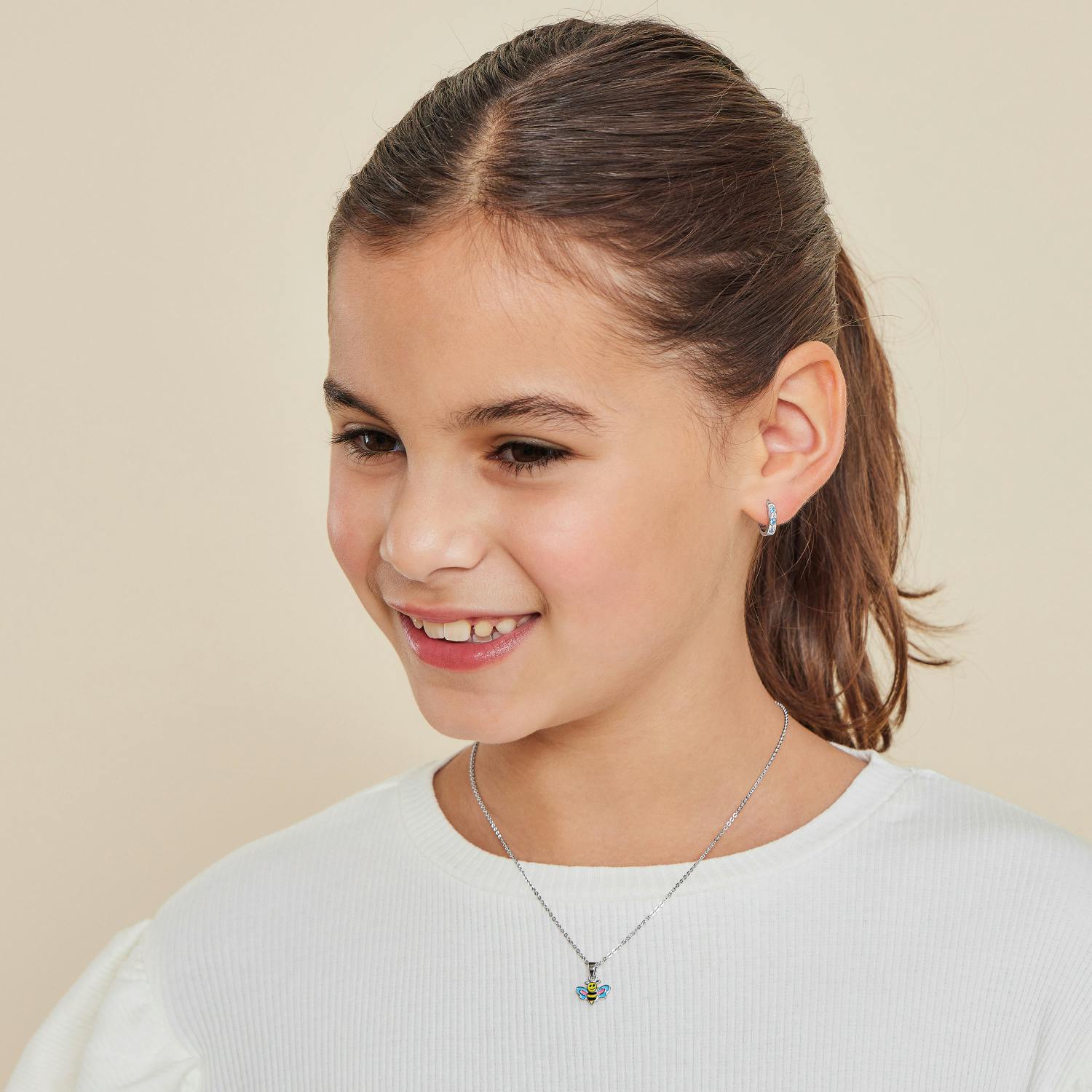 Diese wunderschönen Creolen für Mädchen sind aus hochwertigem 925 Sterling Silber gefertigt und mit funkelnden Zirkonia (synth.) Schmuck Steinen besetzt. Sie sind der perfekte Schmuck für kleine Prinzessinnen, die gerne auffallen möchten. Das Design ist stilvoll und lässt sich leicht zu verschiedenen Outfits kombinieren. Der Scharnierverschluss sorgt für einen sicheren Halt und einfaches An- und Ausziehen. Deine Tochter wird diesen Ohrschmuck mit Stolz tragen. Mach deiner Tochter oder deiner Enkeltochter eine große Freude, die sie nie vergessen wird. Die Ohrstecker werden in einer geeigneten Schmuckbox zu dir nach Hause geliefert.