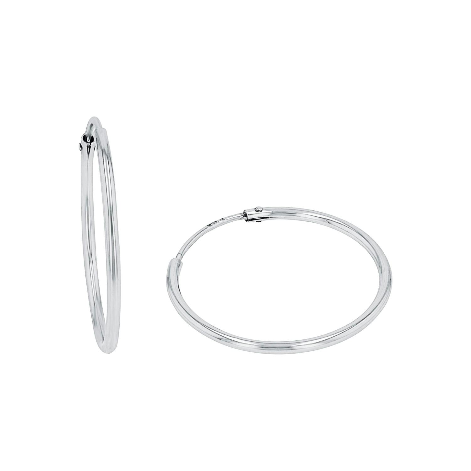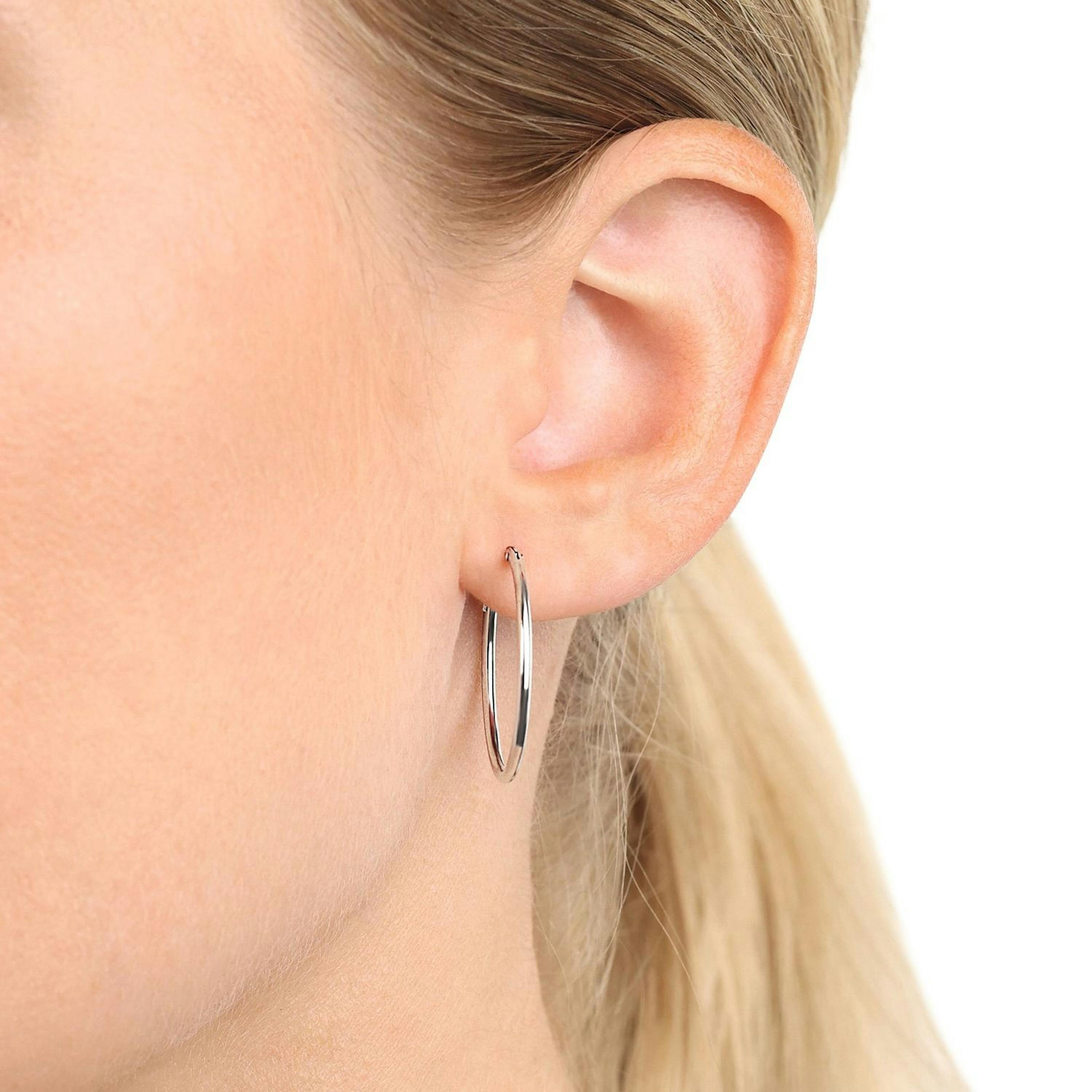 Schlicht und schick: So lautet das Motto für diese Creolen aus glänzendem 925 Sterling Silber Dieser Ohrschmuck ist perfekt für den Alltag oder auch für ein besonderes Event. Das hochglänzende Edelmetall unterstreicht die Schönheit einer Frau auf ganz besondere Art und Weise. Bitte beachten Sie: Bei diesen Ohrringen handelt es sich um Rundrohrcreolen, die in der Verarbeitung hohl hergestellt wurden und somit sehr leicht sind. Dies sorgt für einen besonders hohen Tragekomfort.