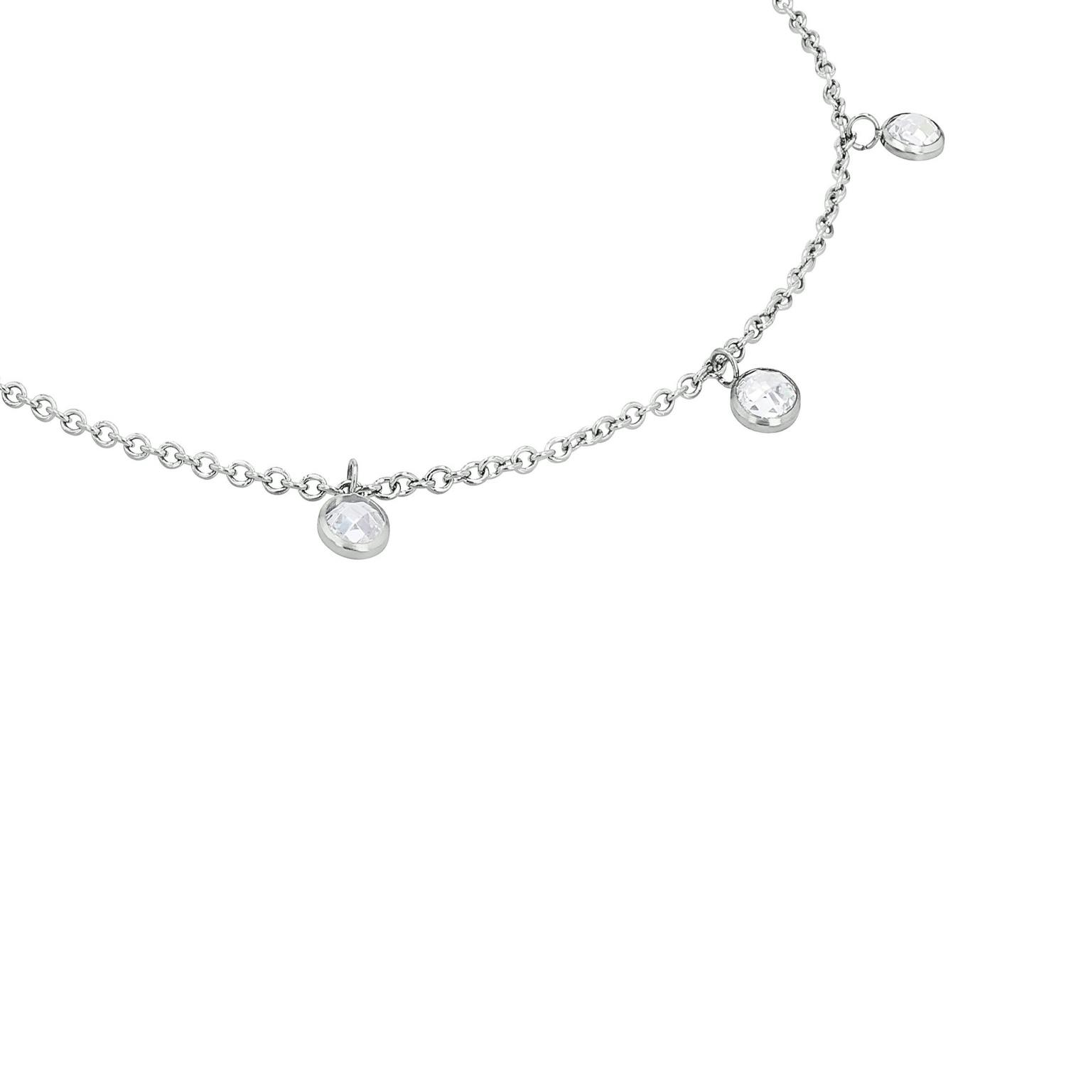 Sommerliches Fußkettchen für Damen von Amor. Die filigrane Ankerkette aus robustem Edelstahl 316L ist das perfekte Accessoire für laue Sommernächste. Die mit Zirkonia Steinen besetzten Anhänger sind das i-Tüpfelchen dieses Fußschmucks. Jeder der sieben Anhänger, die an ein Bettelarmband erinnern, trägt einen Zirkonia Stein. Die Fußkette ist längenverstellbar (23+2 cm) und passt sich somit bequem seiner Trägerin an. Das Sommeraccessoire lässt sich gut mit weiteren Schmuckstücken kombinieren. Mit dem passenden Outfit und der richtigen Sandale erschaffst du den perfekten Look für warme Tage. Entdecke darüber hinaus das passende Armband und komplettiere deinen Look.