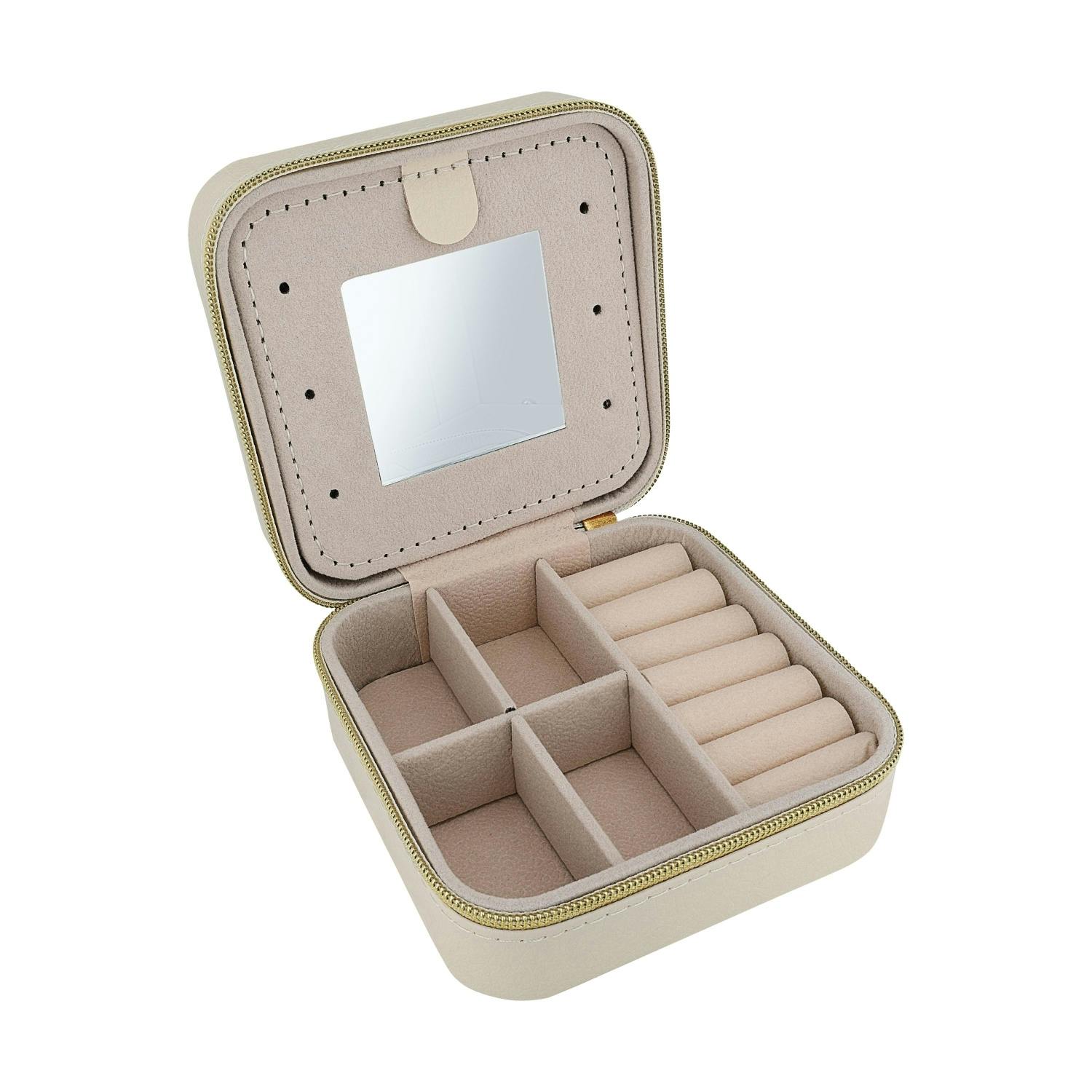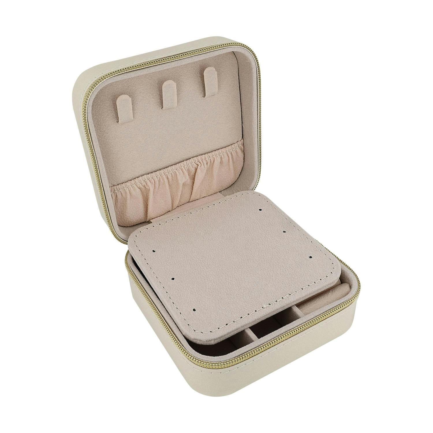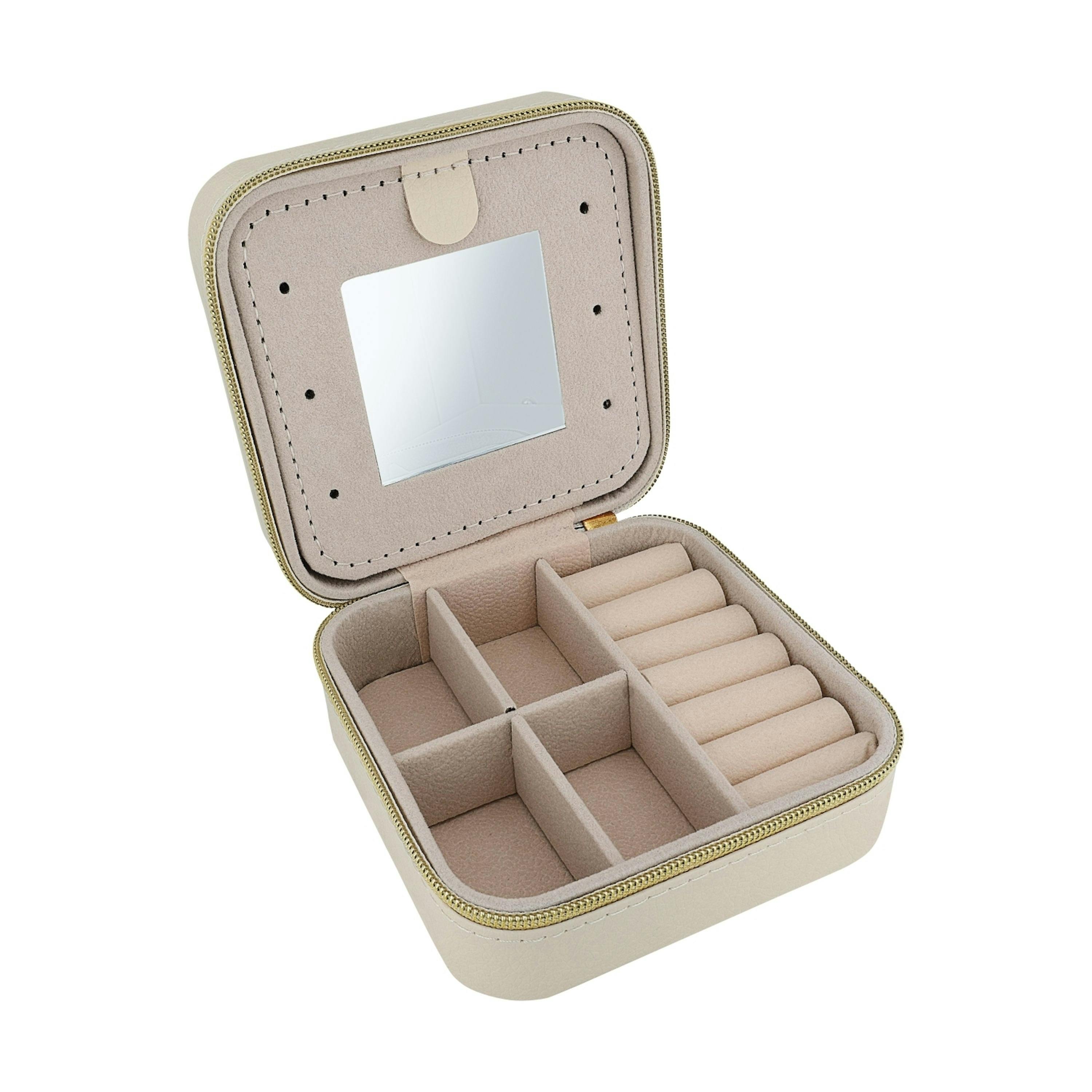 Wer kennt es nicht? Packen für den Kurzurlaub, das lange Wochenende oder den Businesstrip und keine Ahnung, wohin mit dem Schmuck! Ein Set in Gold, eins in Silber und vielleicht noch eins in Rosé – damit bist du bestens gewappnet: Für jedes Outfit und jeden Anlass die ideale Kombi, und dass diese unbeschadet ankommt, dafür sorgt unsere Travelbox. Der eingebaute Spiegel sorgt für eine optimale Aufteilung der Box und hilft dir gleichzeitig beim Auswählen der passenden Schmuckstücke für deinen Look. Eine kleine, hochwertige Schatulle, die bestens organisiert ist und mit Leichtigkeit im Handgepäck Platz findet.