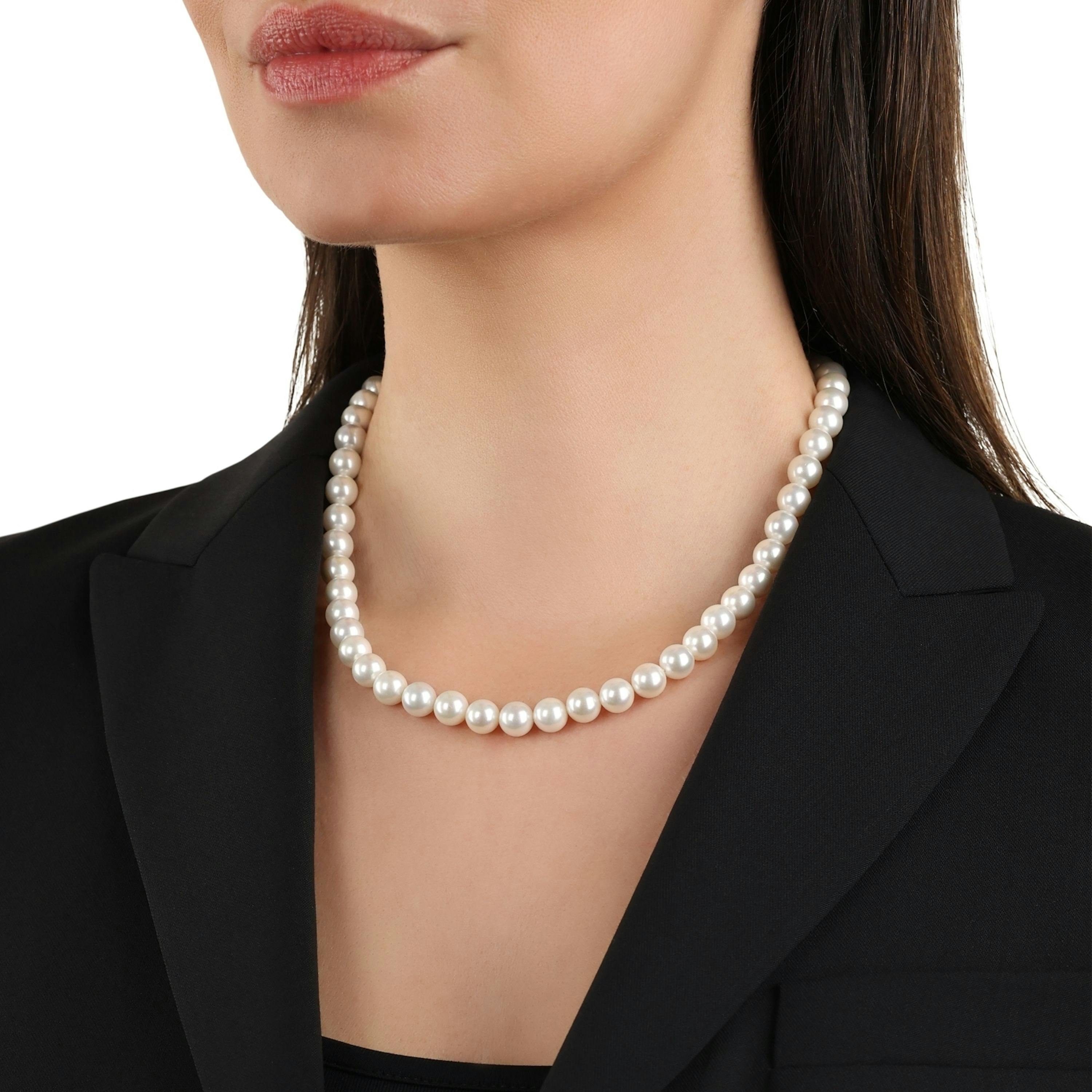 Not only Diamonds are a girl´s best friend, auch Perlen lieben den großen Auftritt! Dabei sind sie stets klassisch und zeitlos. Diese wunderbare Damen Halskette aus hochwertigen Perlen gehört in die Schmuckschatulle einer jeden Frau. Das Perlencollier ist zwischen 42 und 47 cm längenverstellbar und somit individuell passend einstellbar. Ein Karabiner verschließt die Kette sicher und bietet hohen Tragekomfort. Perlenschmuck kann man zu jedem Anlass tragen und auch verschenken. Eine schöne Schmuckbox ist in der Lieferung enthalten.