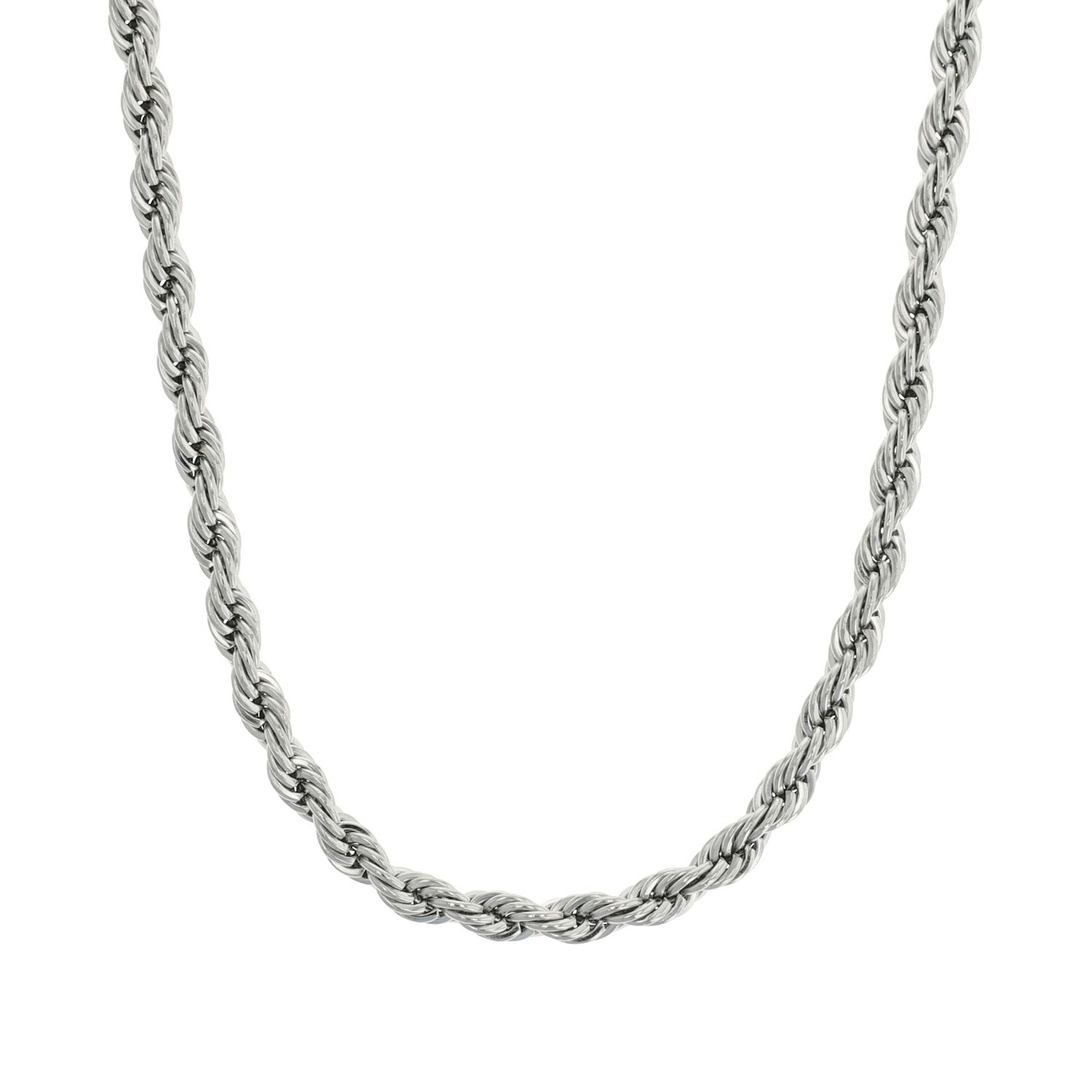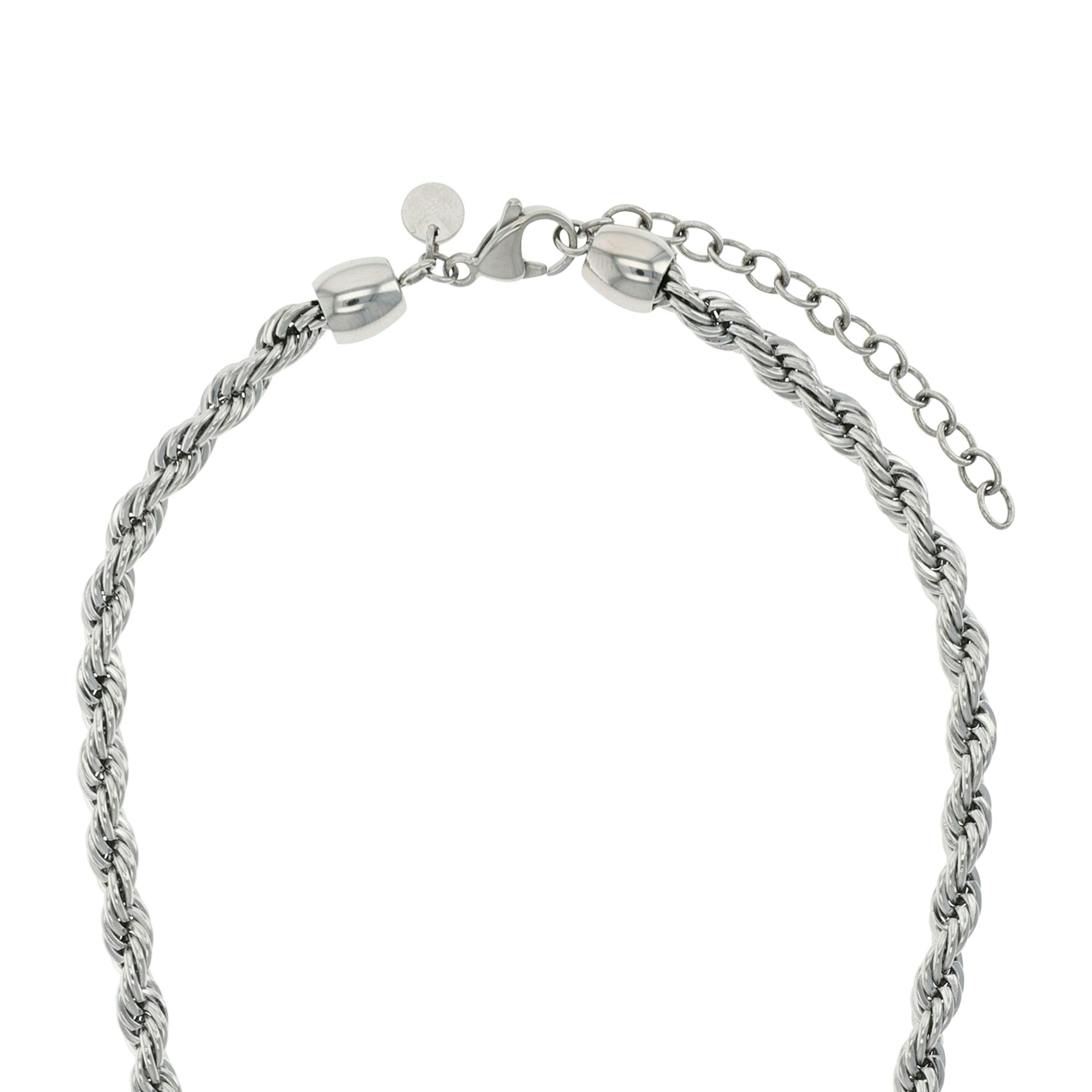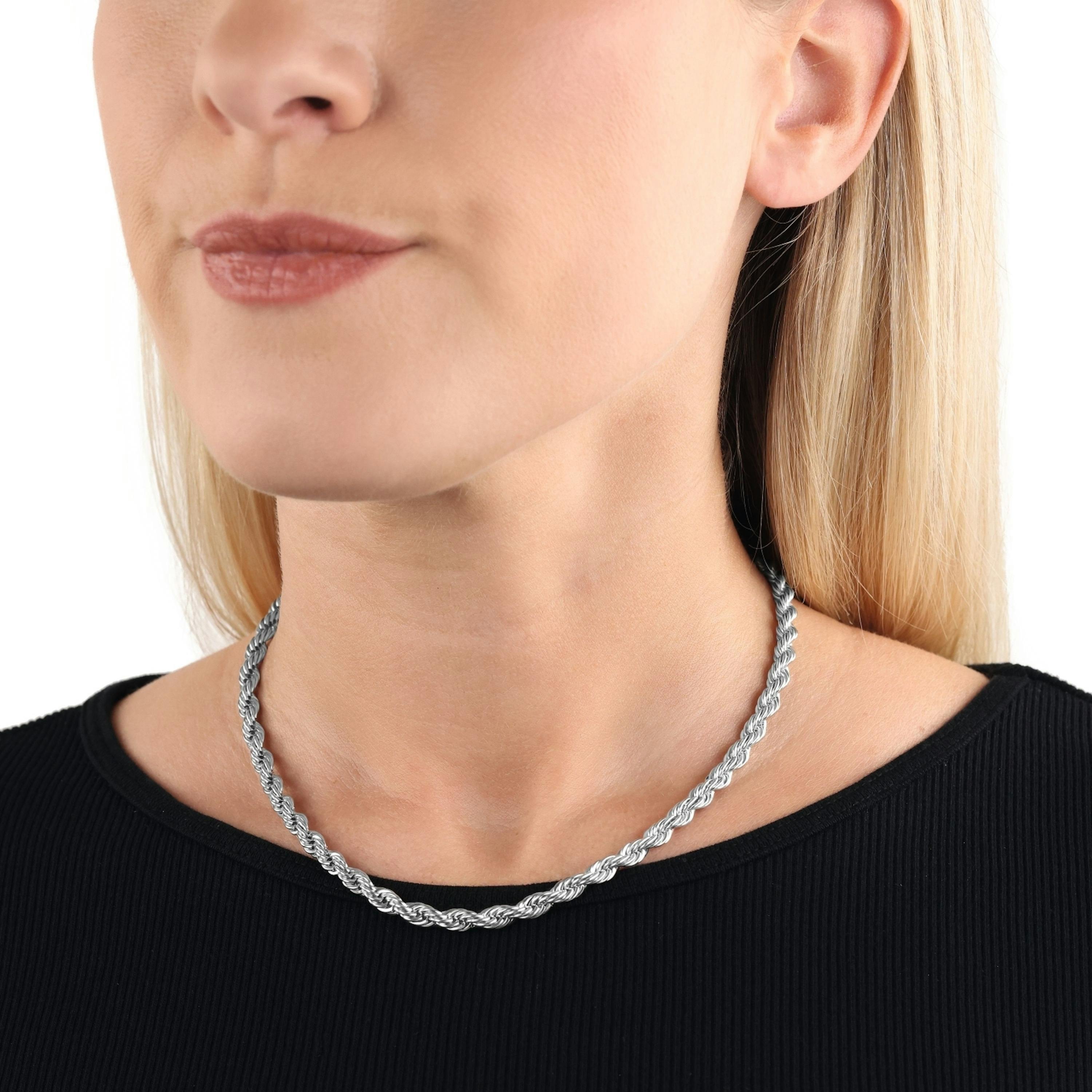 Basic Collier-Kette für Damen von NOELANI. Diese wunderschöne Halskette ist ein echter Allrounder und ein Must-Have in jeder Schmuckschatulle. Der Halsschmuck überzeugt durch die classy Kordelgliederung und eine angenehme Stärke von 5 mm. Das Schmuckstück eignet sich für den angesagten Stacking Style und ist so kombinierbar mit anderen Materialien oder auch einzeln getragen ein echter Hingucker. Die Collierkette besteht aus hochwertigem Edelstahl und kann zwischen 40 und 45 cm Länge individuell verstellt werden. Kombiniere den Frauenschmuck mit weiteren NOELANI Schmuck-Pieces aus dem passenden Set.