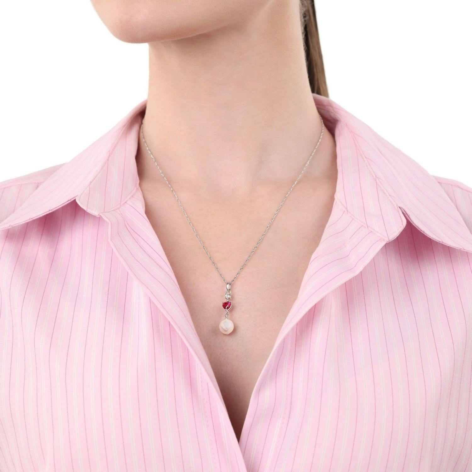 - Die Kette besteht aus Sterling Silber 925 und ist mit Zirkonia sowie Muschelkernperlen geschmückt