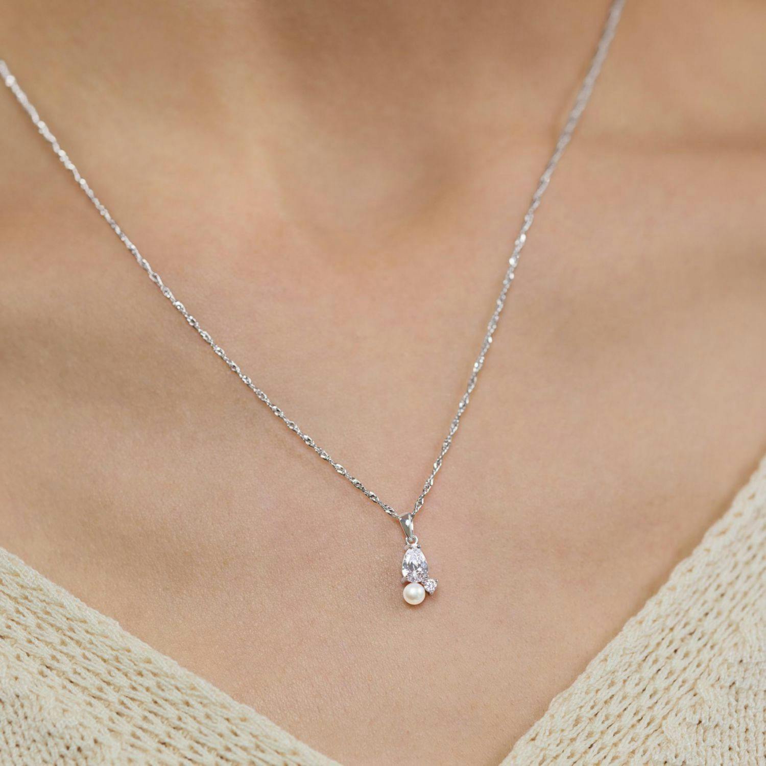 - Die Kette besteht aus Sterling Silber 925 und ist mit Zirkonia sowie Süßwasserzuchtperlen geschmückt