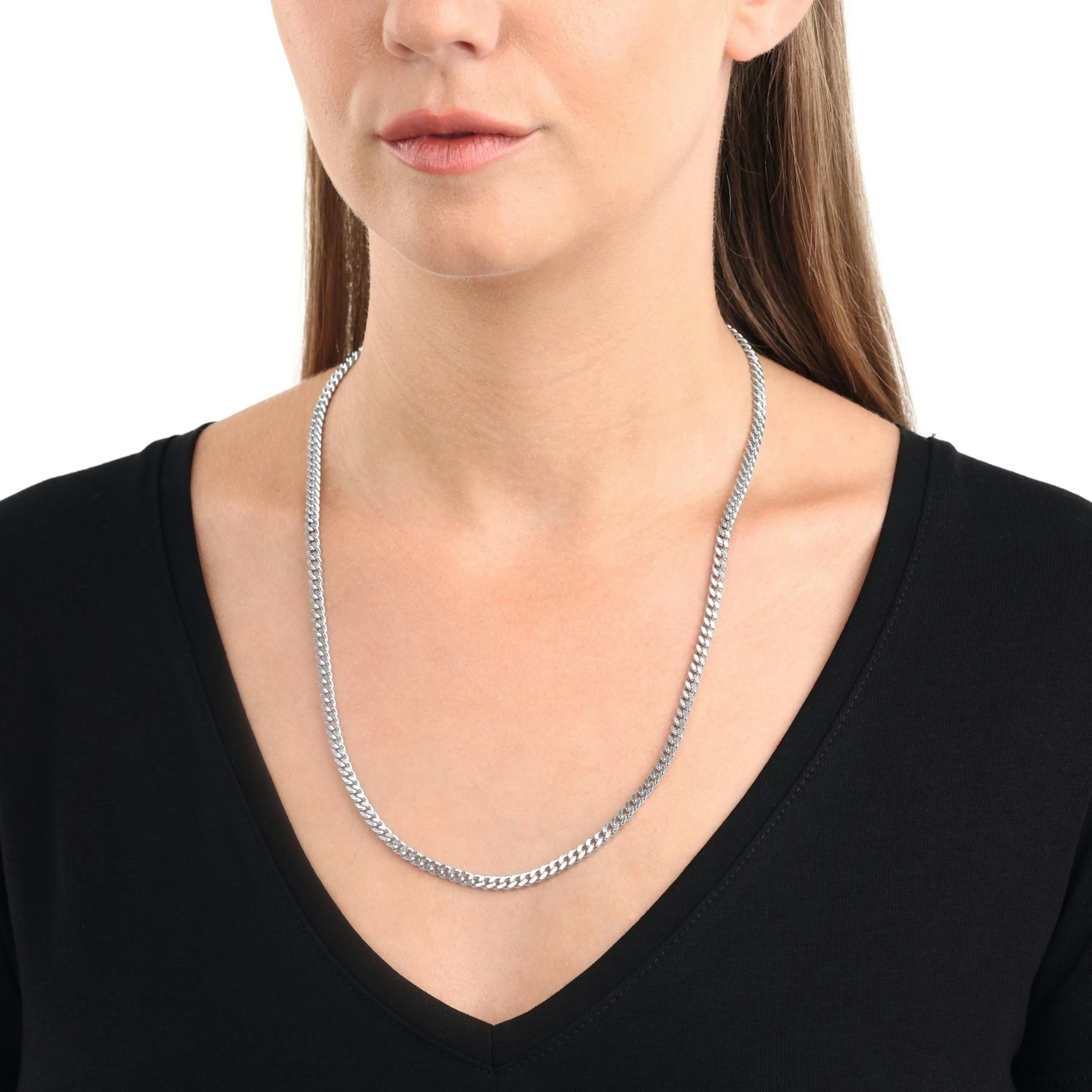 Zartes Design und hochwertige Verarbeitung vereinen sich in diesem 55 cm langen Collier Kettchen mit Ankergliederung. Ideal für Anhänger schmiegt sich das hochwertige 316L Stainless Steel an die Haut. Die Kettenstärke beträgt ca. 4 mm. Das Halskettchen ist für Damen und Herren geeignet. Als Verschluss dient ein praktischer Karabiner.