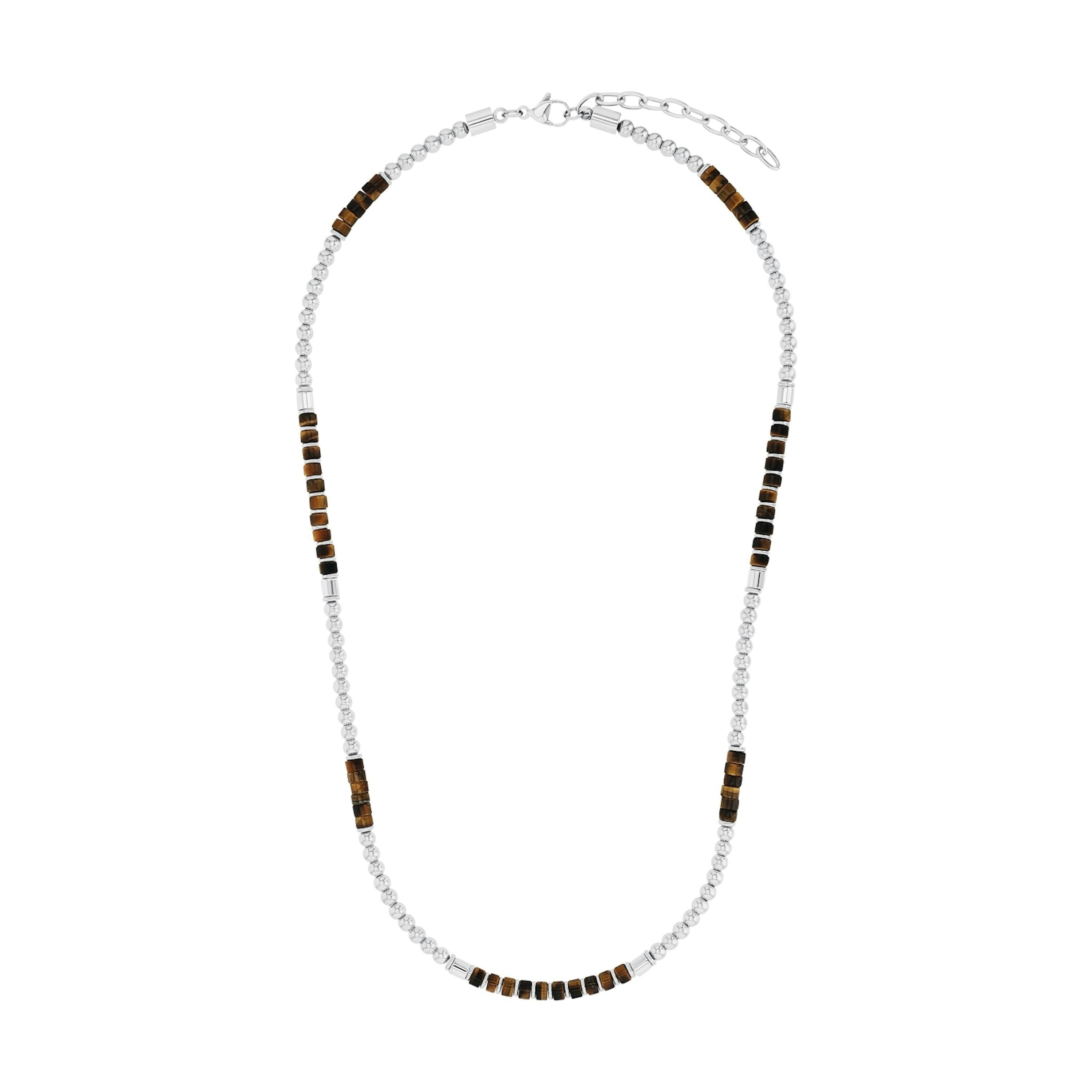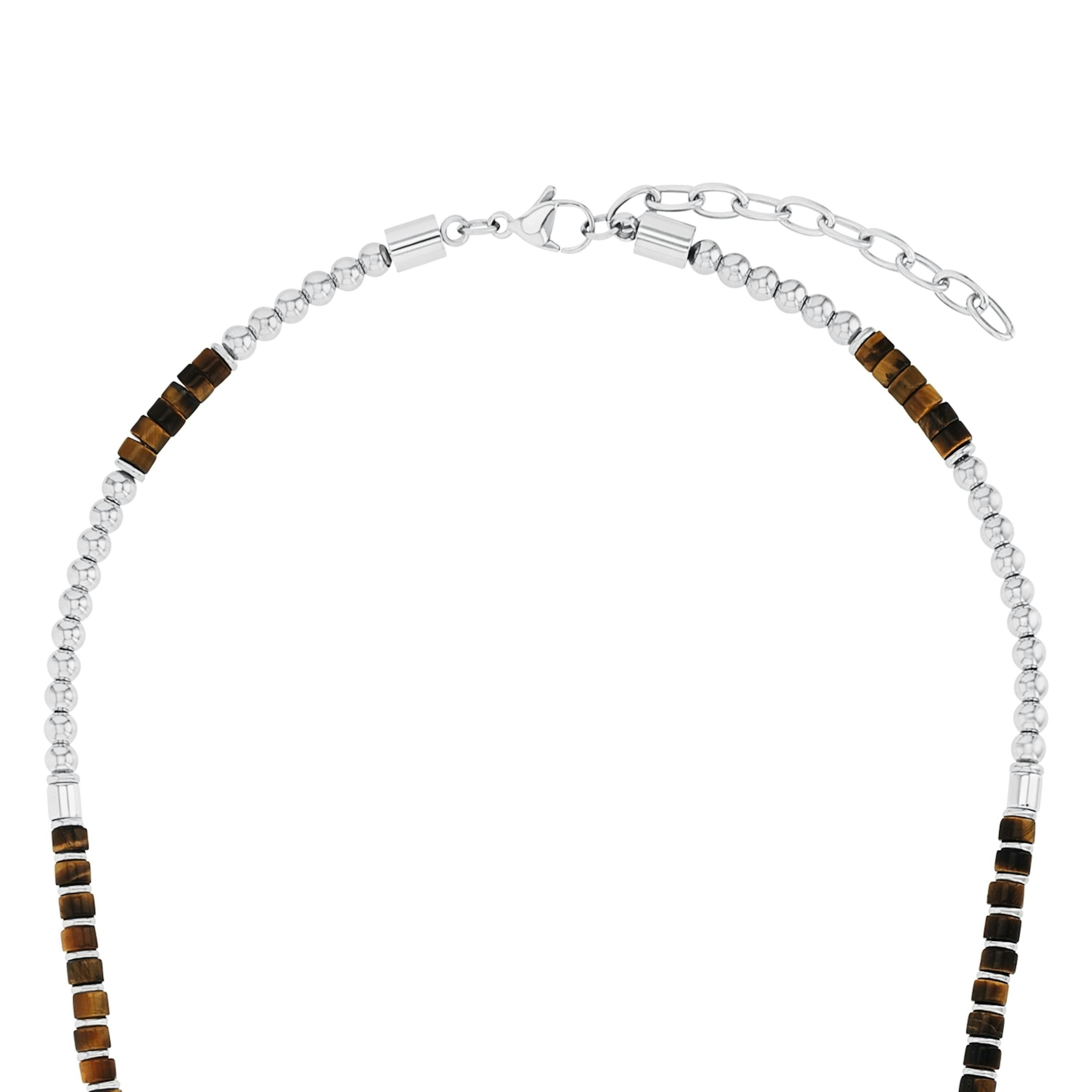 Diese attraktive Halskette für Herren ist eine perfekte Ergänzung für jeden Look. Die Echtschmuckmarke Amor steht für Schmuck, der auf höchstem Niveau verarbeitet ist. Fein ausgesuchte Materialien sowie elegante Designs machen das Sortiment einzigartig. Die Halskette mit Anhänger ist aus Edelstahl gefertigt und eignet sich perfekt für den Alltag oder auch besondere Anlässe. Die Kette ist 50+5 cm lang und besteht aus einer klassischen Kugelkettengliederung. Zusätzlich sorgen funkelnde Tigerauge-Steine für ein besonderes Highlight. Ein praktischer Karabinerverschluss sorgt für eine problemlose Handhabung. Für die passende Aufbewahrung oder auch zum Verschenken: Die Halskette von Amor wird in einer passenden Verpackung geliefert, die sich optimal nutzen lässt.