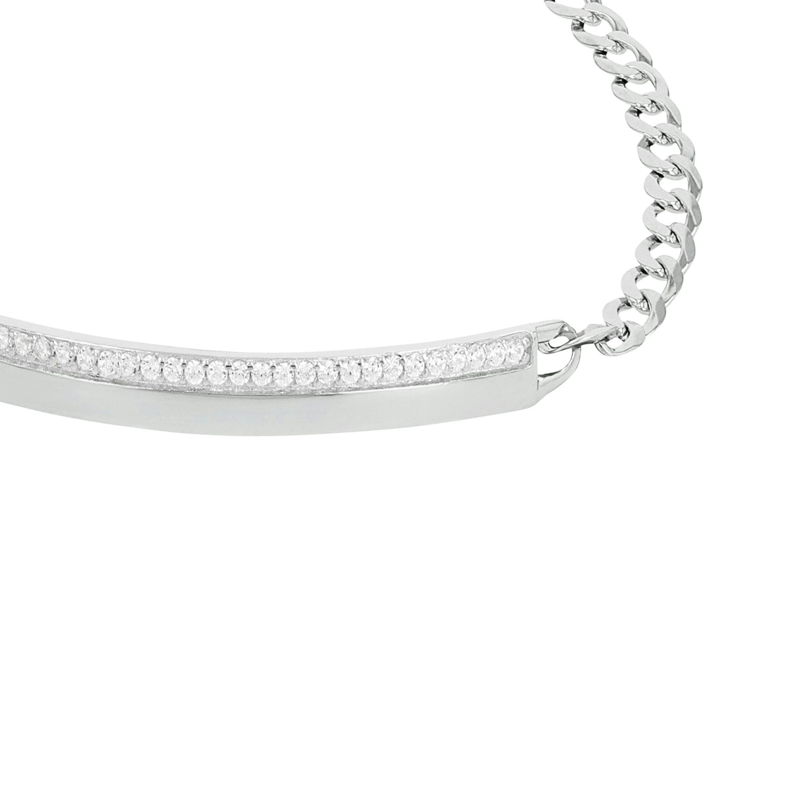 Ein persönliches Geschenk der ganz besonderen Art. Blickfang dieses Damen Armbands ist die schmale Gravur Platte samt funkelnder Zirkonia (synth.). Egal ob Name, Datum oder individuelle Beschriftung –- dieses Schmuckstück zeigt Persönlichkeit! Das 925 Sterling Silber ist widerstandsfähig und langlebig.
