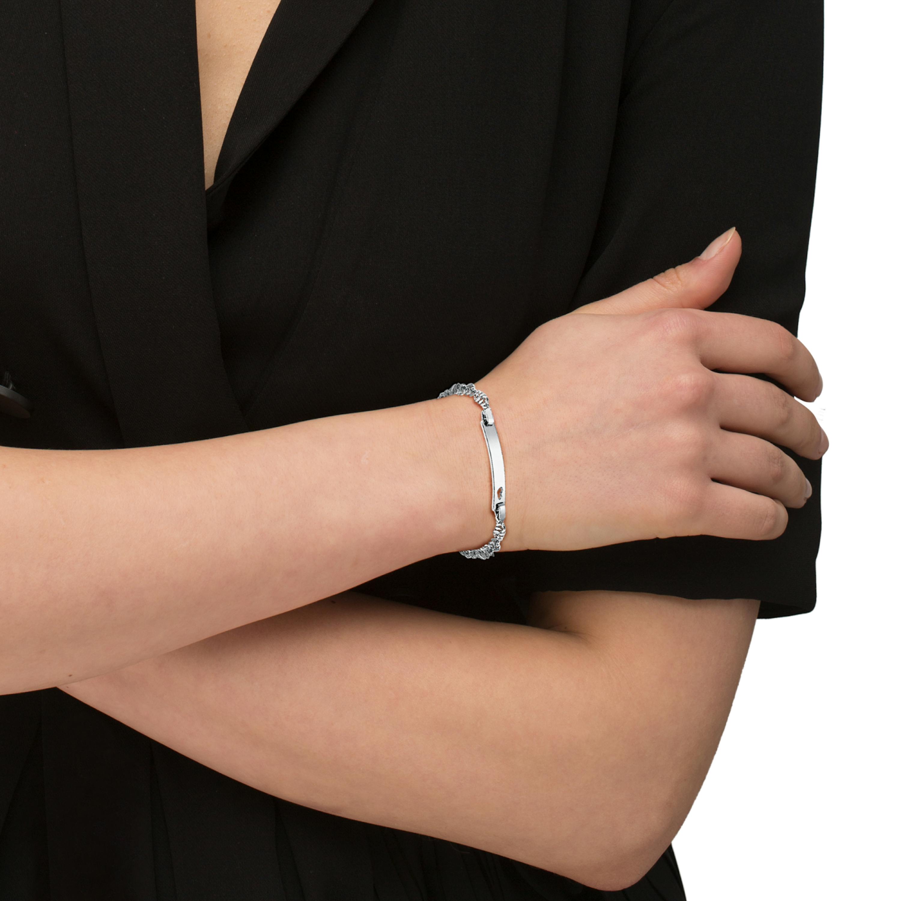- Armband aus 925 Sterling Silber mit einer gravierbaren Identplatte und eingestanztem Herz für junge Frauen und Damen