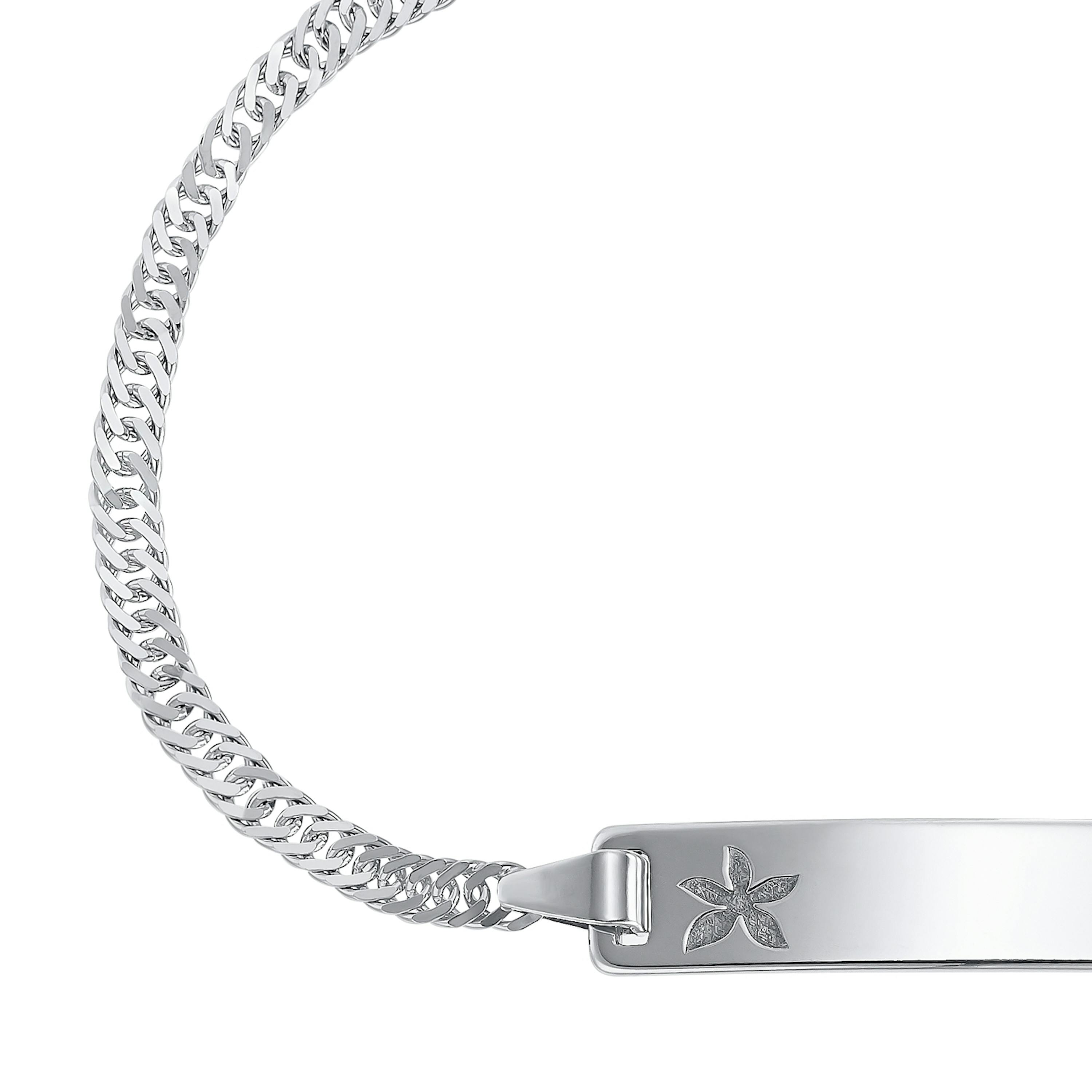 Ident-Armband für Mädchen von Amor. Dieses wunderschöne Mädchen-Armband der Echtschmuck Marke Amor wurde aus hochwertigem 925 Sterling Silber gefertigt. Die filigrane Singapurkette ist längenverstellbar (16+2 cm), passt sich somit bequem dem Handgelenk an und wächst etwas mit. Die Besonderheit des Armbands ist die glänzende Ident-Platte im Zentrum. Verziert mit einer kleinen Blume bietet dir diese Platte außerdem die Möglichkeit einer Gravur. Ein Geburtsdatum, ein liebevoller Spruch, Kosename oder die Initialen - dank der individuellen Gravierbarkeit entpuppt sich das Mädchen-Armband zum perfekten Geschenk. Das richtige Schmuck-Geschenk zur Einschulung, Kommunion, Geburtstag oder zwischendurch. Der klassische Federring ermöglicht darüber hinaus ein einfaches an- und ablegen und bietet Tragesicherheit. Dieses individuell gravierbare Armband wird Mädchenaugen strahlen lassen.