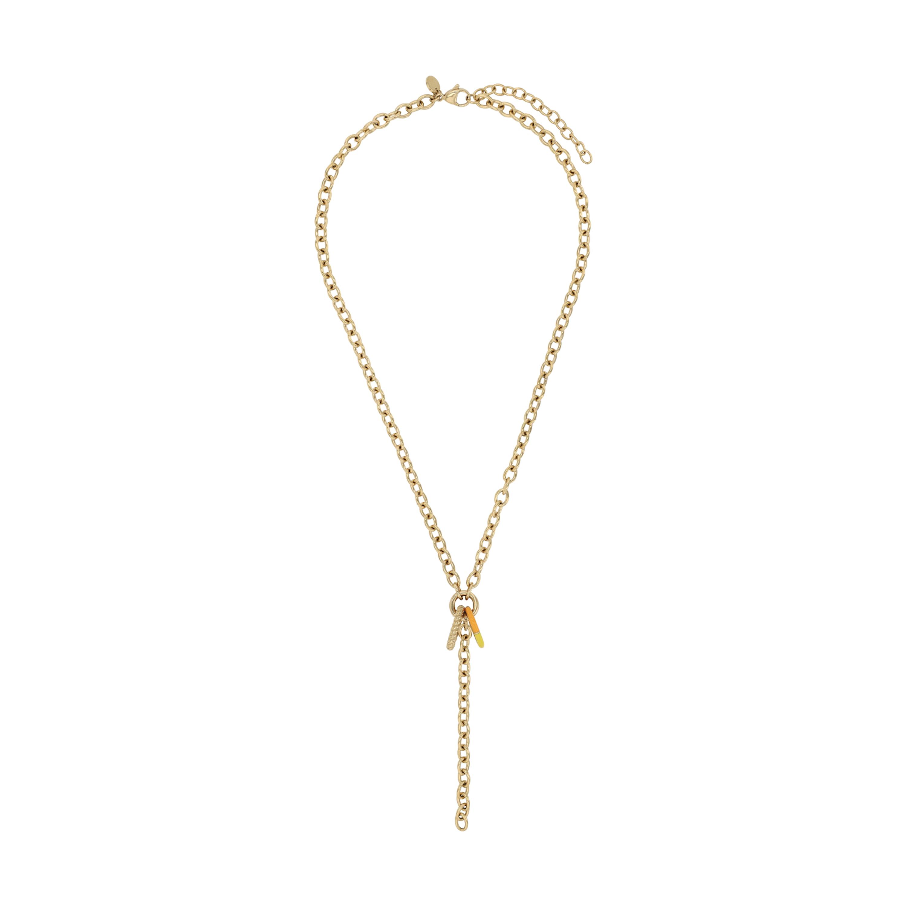 Ausgefallene Y-Halskette für Damen von NOELANI. Diese extravagante Damenkette besticht durch den eleganten Y-Style sowie die aufwändig verarbeiteten Details, die das Zentrum des Halsschmucks bilden. Die mit Emaille versehenen Elemente setzen so besondere Akzente. Die Kette wurde aus hochwertigem Edelstahl gefertigt und besteht aus einer gröberen Ankergliederung. Sie ist zudem zwischen 40 und 45 cm Länge individuell verstellbar und lässt sich durch einen praktischen Karabinerverschluss einfach und sicher schließen. Kombiniere den Frauenschmuck mit weiteren NOELANI Schmuck-Pieces aus dem passenden Set oder entscheide dich für einen Stilbruch und mach was eigenes daraus!