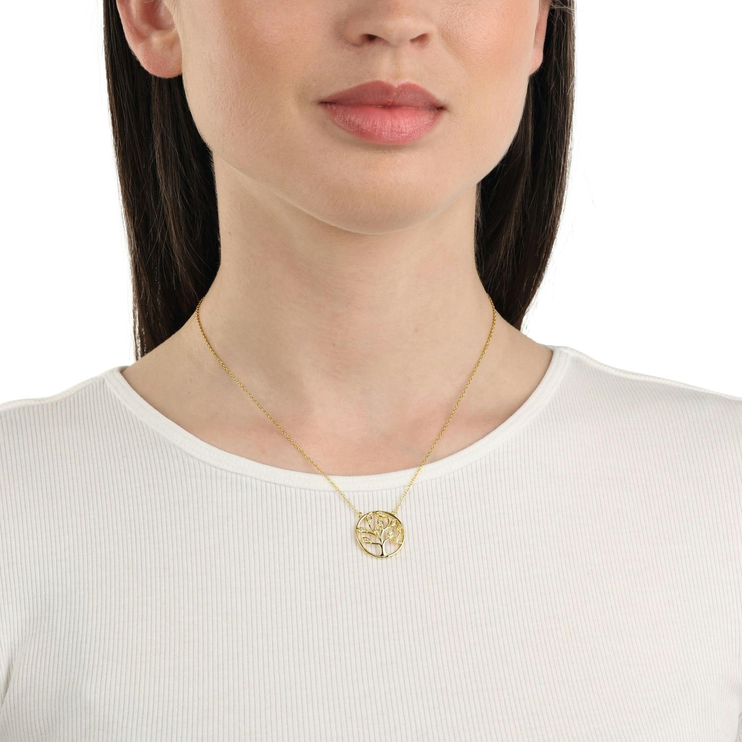 Schmuck mit Symbolcharakter! Lassen Sie sich von der natürlichen Ausstrahlung verzaubern. Wie ein Baum, der tief verwurzelt Sicherheit bietet, soll dieser filigrane ca. 2 cm lange Anhänger an der längenverstellbaren Halskette (42+3 cm) Kraft und Zuversicht verleihen. Das Schmuckstück besteht aus 925 Sterling Silber und ist mit funkelnden Zirkonia (synth.) besetzt.