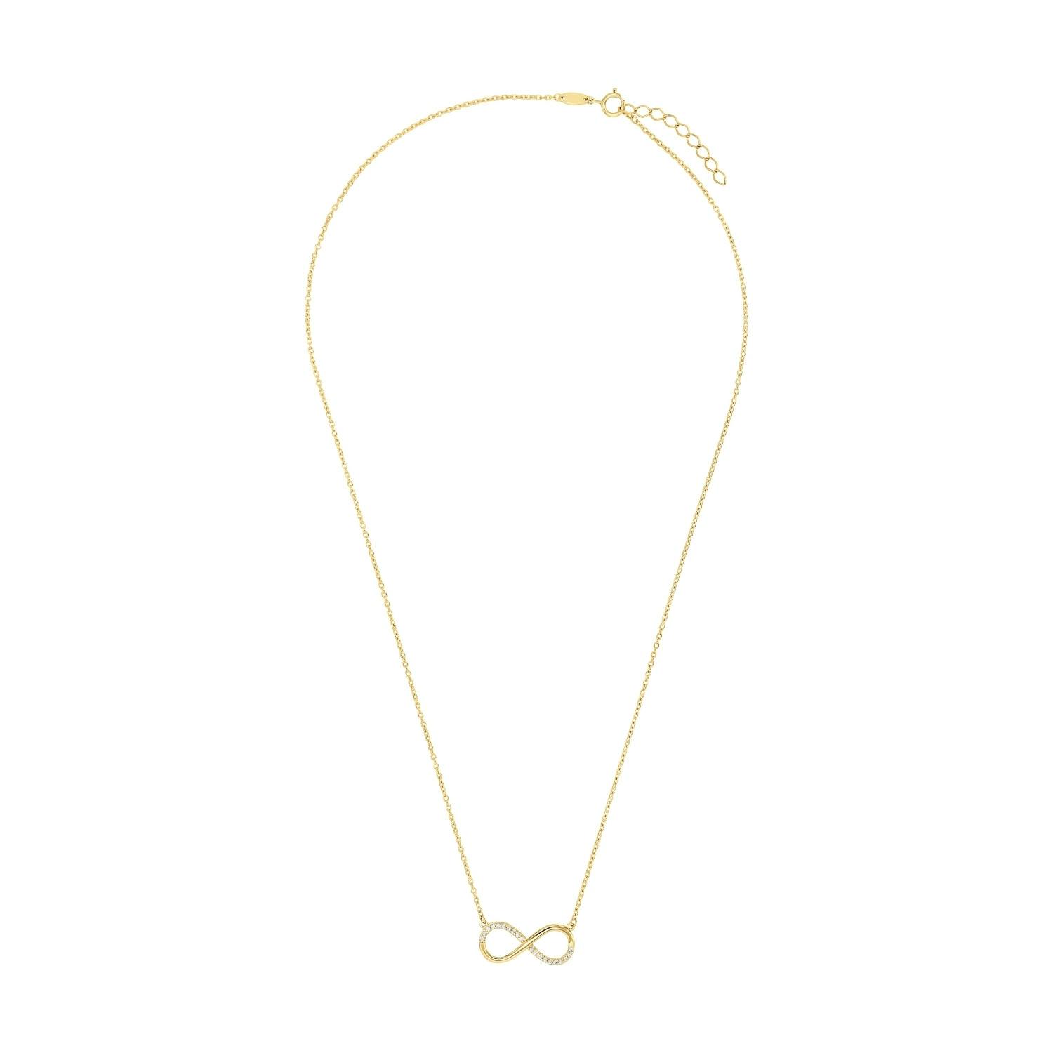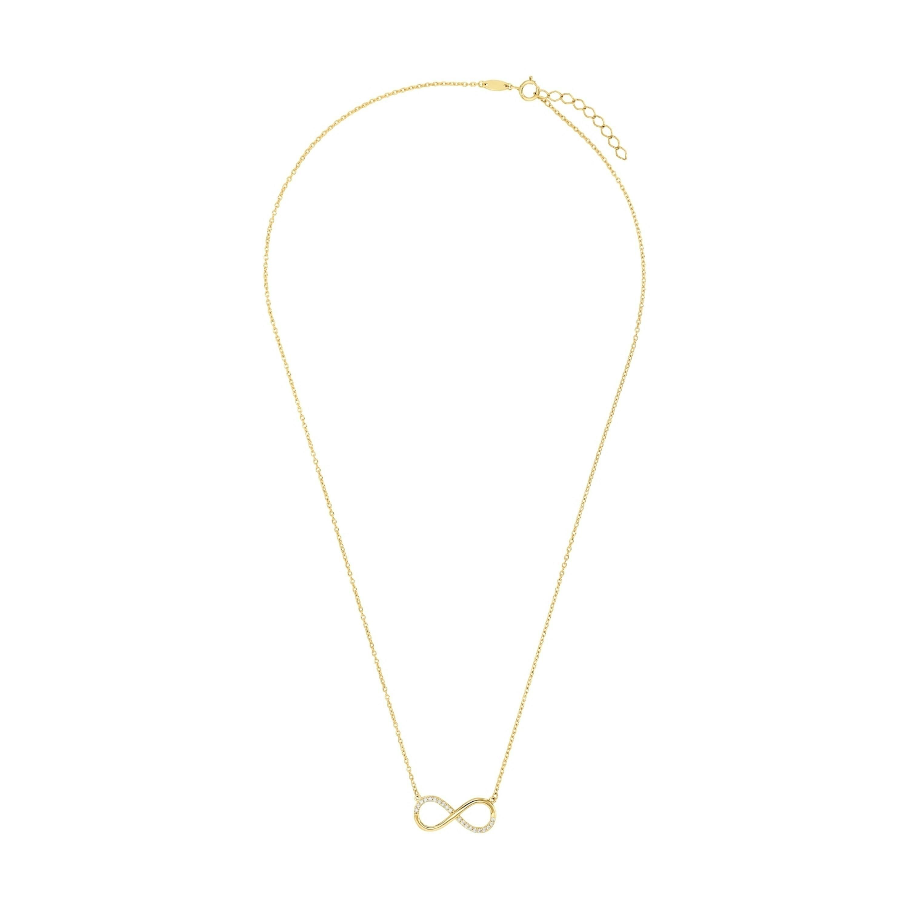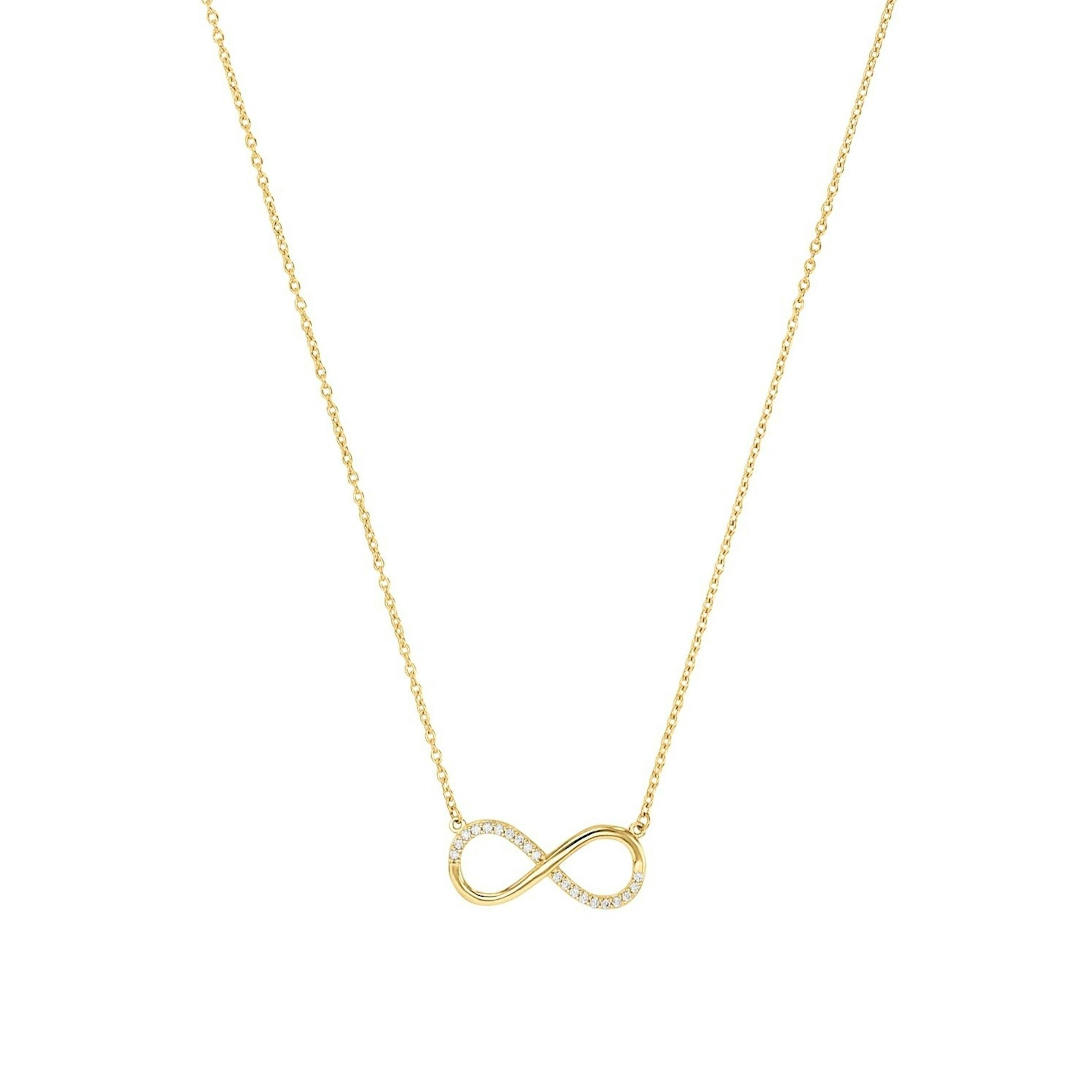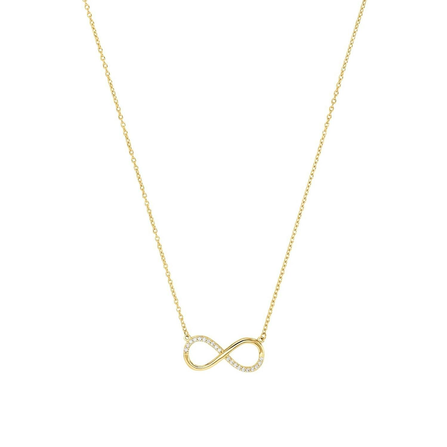 Ganz viel Liebe überbringt dieses wundervolle Schmuckstück. Der Anhänger besteht aus einem glänzenden Unendlichkeitssymbol, das aus hochwertigem 375er Gelbgold (9 ct) hergestellt wurde. Sowohl das Infinity Zeichen als auch die Kette versprechen eine hochwertige Qualität und ein zeitloses Design. Zahlreiche Zirkonia (synth.) setzen strahlende Akzente.