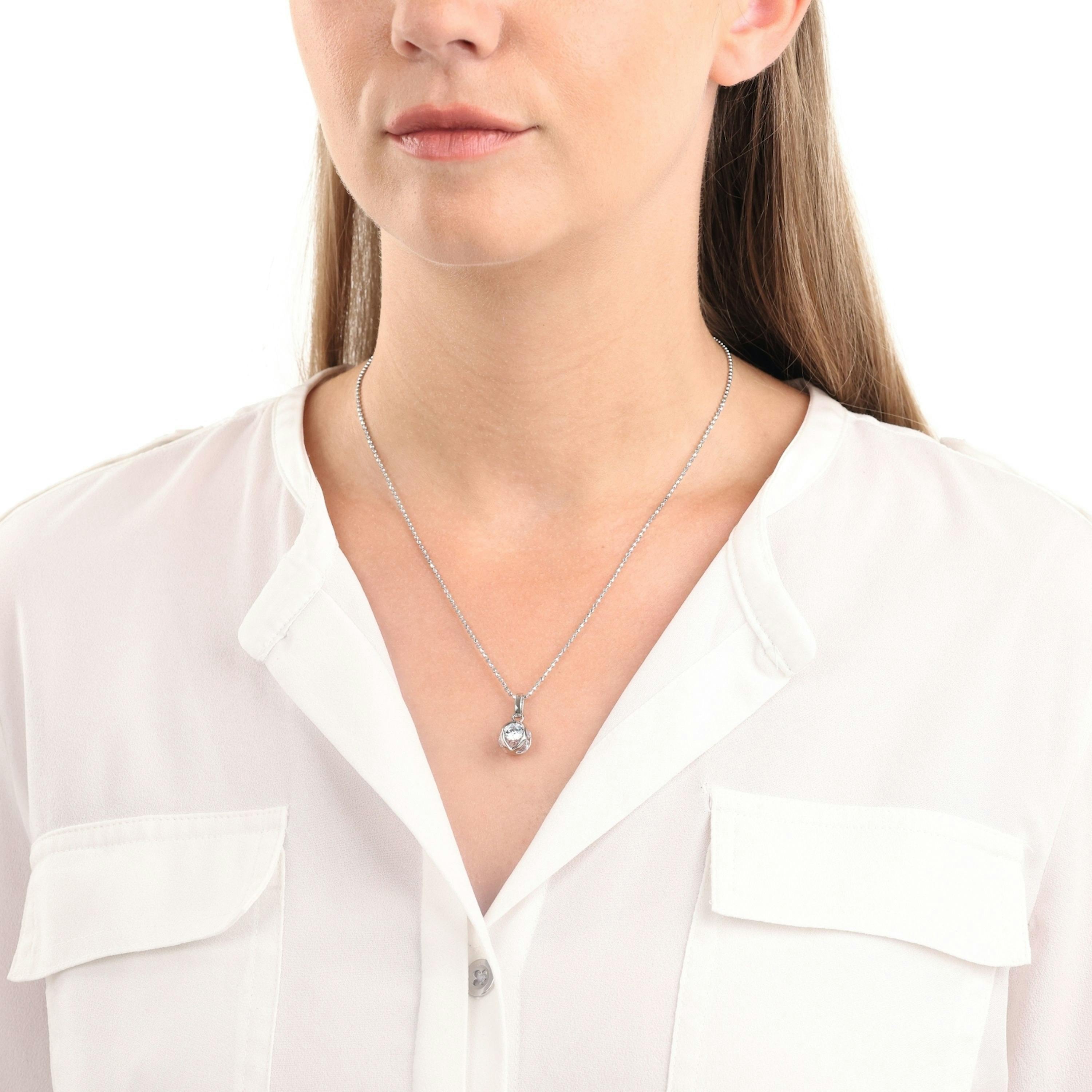 Damen-Halskette von Amor. Diese Halskette für Damen von der bekannten Echtschmuck-Marke Amor zeigt sich in funkelndem Design. Der Halsschmuck wurde aus hochwertigem 925 Sterling Silber gefertigt. Diese schützt das Accessoire vor dem Anlaufen. Die Halskette Silber 925 Damen hat eine Länge von 45 cm. Somit passt sich die Silberkette nicht nur bequem dem Hals, sondern auch dem Outfit an. Die ca. 2 mm strake Kugelkette trägt einen funkelnden Anhänger im Zentrum. Verziert mit zahlreichen strahlenden Zirkonia Steinen macht dieser Anhänger die Kette zu einem wahren Eyecatcher. Für die einfache Handhabe der Halskette sorgt ein praktischer Karabiner-Verschluss. Trage die Kette Silber Damen als Einzelstück oder kombiniere sie mit passenden Ohrringen und Armband. Zusätzlich kommt die Halskette in einer geeigneten Schmuckbox - auch immer eine tolle Geschenkidee.