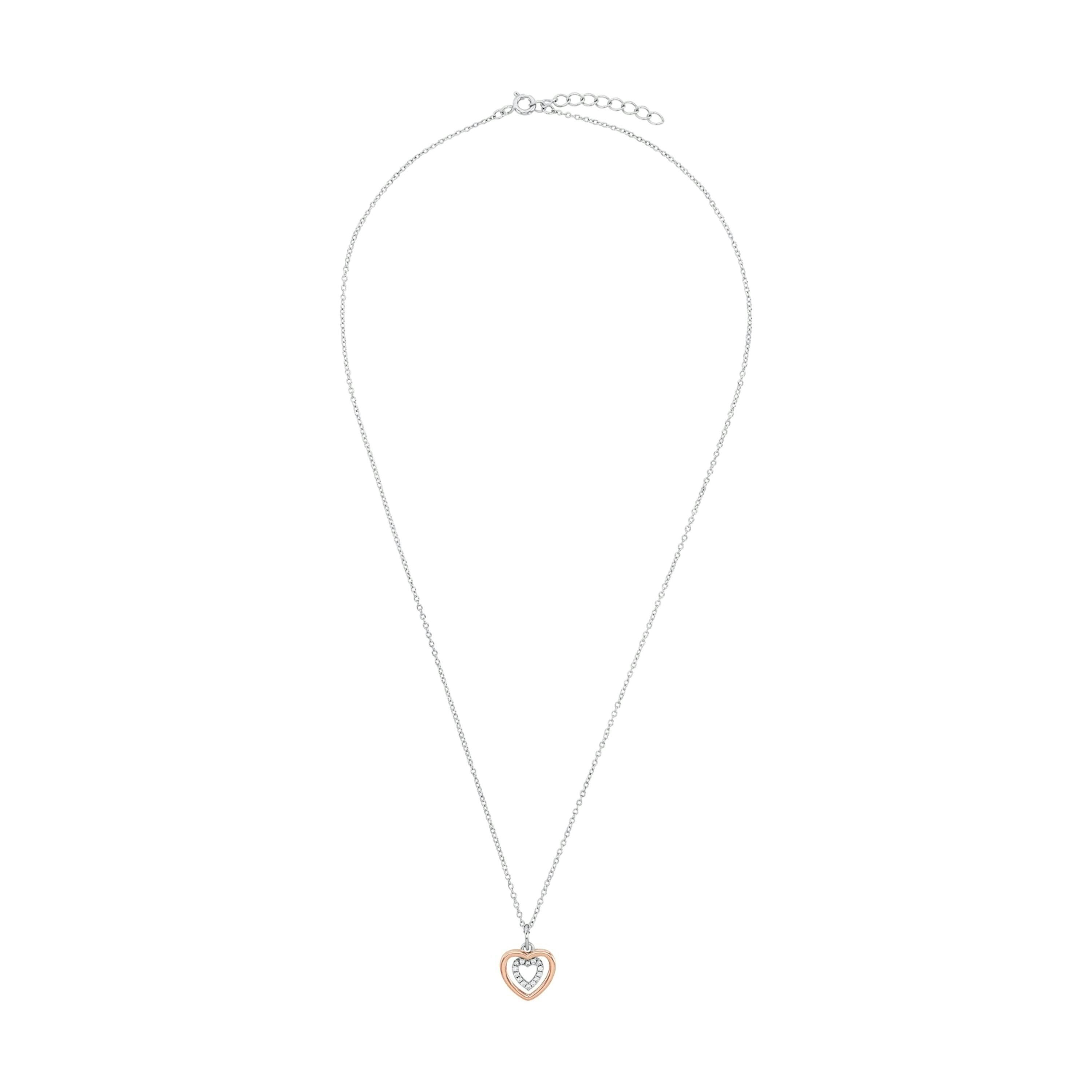Damen-Halskette von Amor. Diese Halskette für Damen von der beliebten Echtschmuck-Marke Amor präsentiert sich im Herz-Design. Die Echtschmuck-Halskette wurde aus hochwertigem 925 Sterling Silber gefertigt. Diese Schützt das Accessoire vor dem Anlaufen. Die ca. 1 mm starke Ankerkette hat eine Länge von 42 cm, kann jedoch bei Bedarf auf bis zu 45 cm verlängert werden. Dies ermöglicht es dir, die Damenhalskette Silber 925 an unterschiedlichen Outfits zu tragen. Für den sicheren Halt beim Tragen sowie eine einfache Handhabe sorgt der praktische Federringverschluss. Absolutes Highlight und Herzstück der Halskette ist der herzförmige Anhänger. Im zeitlosen Cut-Out Design präsentieren sich gleich zwei unterschiedlich große Herzen im bicoloren Look. Zusätzlich ist das innere Herz mit zahlreichen strahlenden Zirkonia Steinen verziert. Ein echter Eyecatcher! All dies ermöglicht es dir, die Halskette mit Herz-Motiv als Einzelstück zu tragen oder mit weiteren Schmuckstücken wie Ohrringen und Armbändern zu kombinieren. Erschaffe deinen ganz persönlichen Stil. Die Echtschmuck-Halskette aus Silber 925 kommt in einer passenden Schmuckbox - eine tolle Geschenkidee.