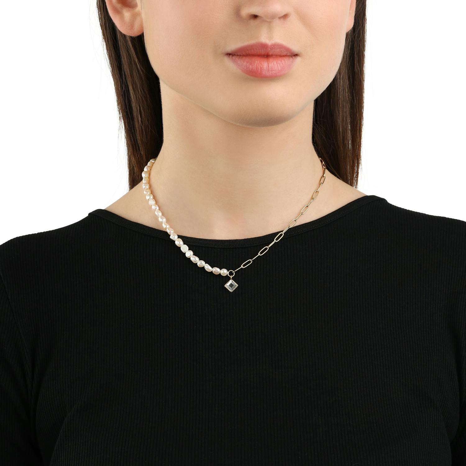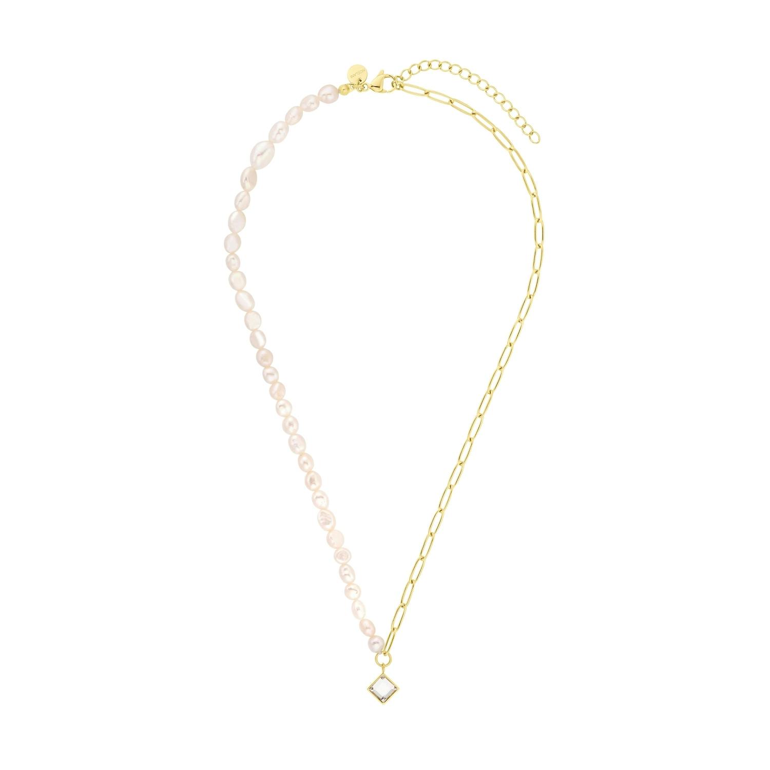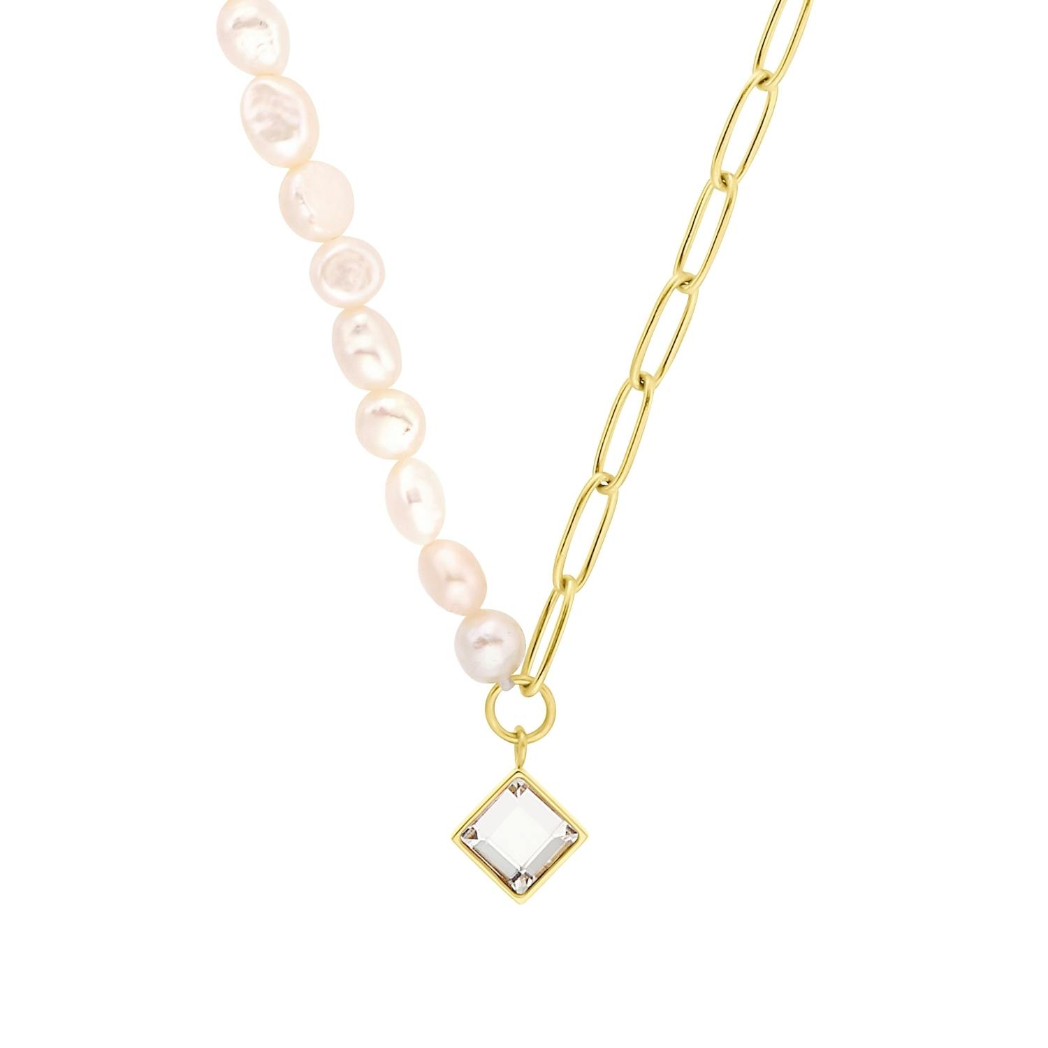 - NOELANI Stylishe Damen Collierkette mit ausgefallenen Kettenmixmuster und Perlen