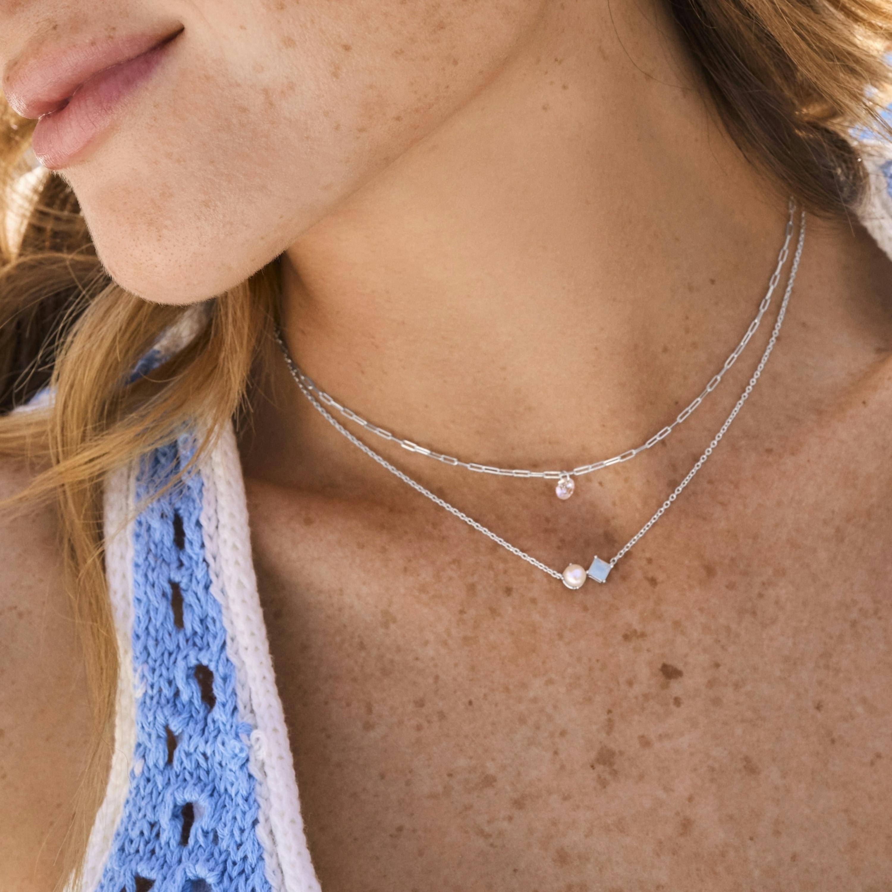 - Die Kette wurde aus 925 Sterling Silber gefertigt und ist mit synth. Schmuckstein sowie Süßwasserzuchtperle besetzt