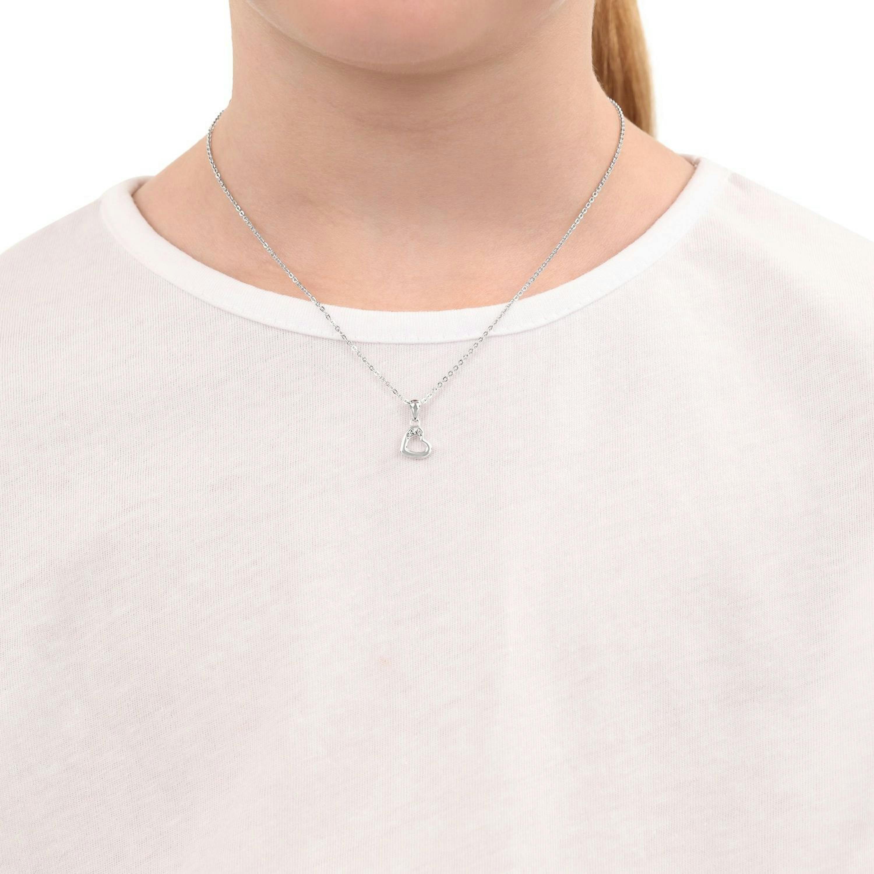 Auch für Mädchen eignet sich Herzschmuck hervorragend als Geschenk. Diese Halskette mit Anhänger aus 925 Sterling Silber ist praktischerweise verstellbar (35+3 cm Verlängerungskettchen), sodass die junge Trägerin lange Freude an ihrem Schmuckstück hat. Zirkonia (synth.) funkeln auf dem Herzanhänger und runden das Design ab.