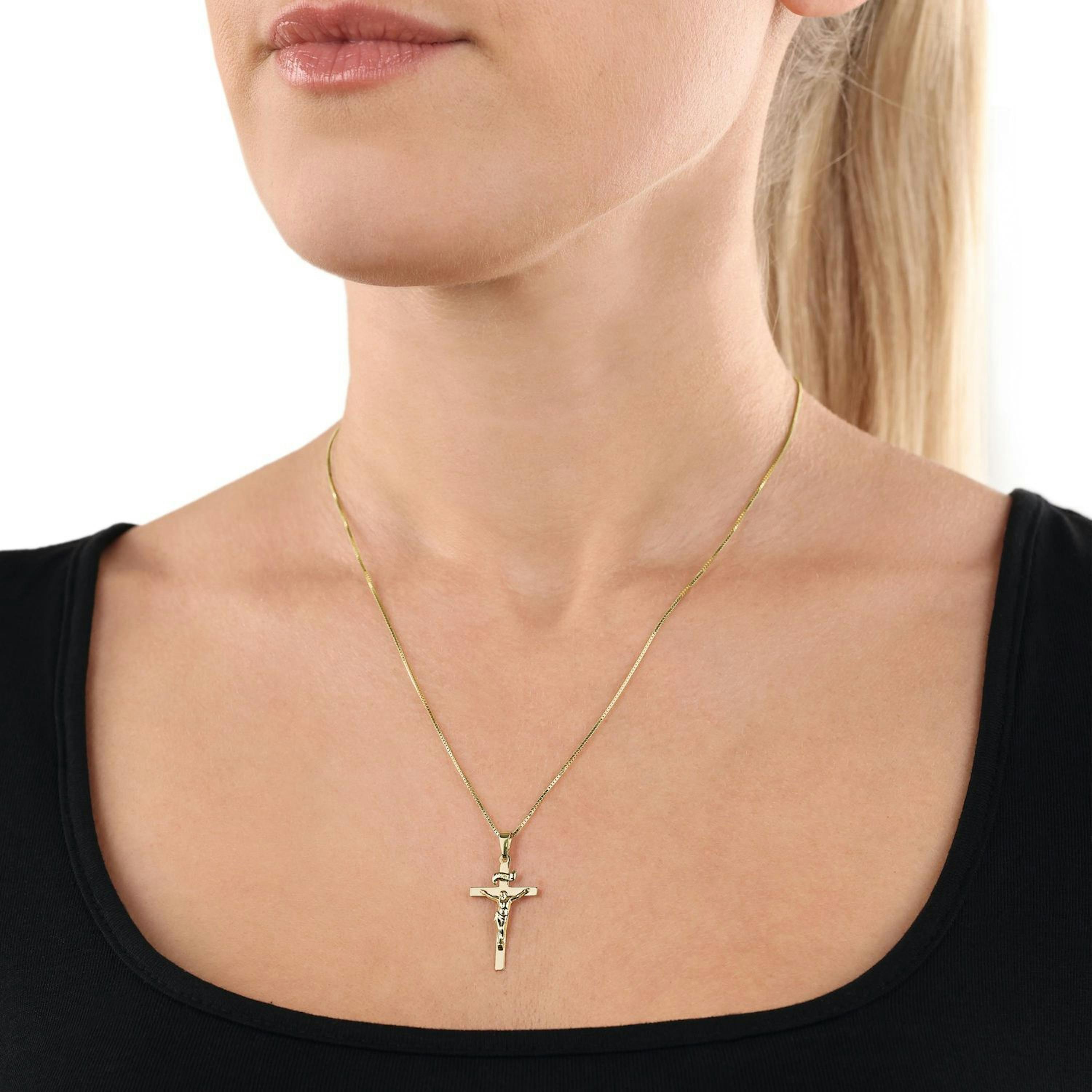 Mit viel Liebe zum Detail und aus hochwertigem 585er Gelbgold, ist dieser Kreuz-Anhänger ein absoluter Hingucker. Der Anhänger kann von Frauen als auch von Herren getragen werden und trägt die Schrift "INRI".