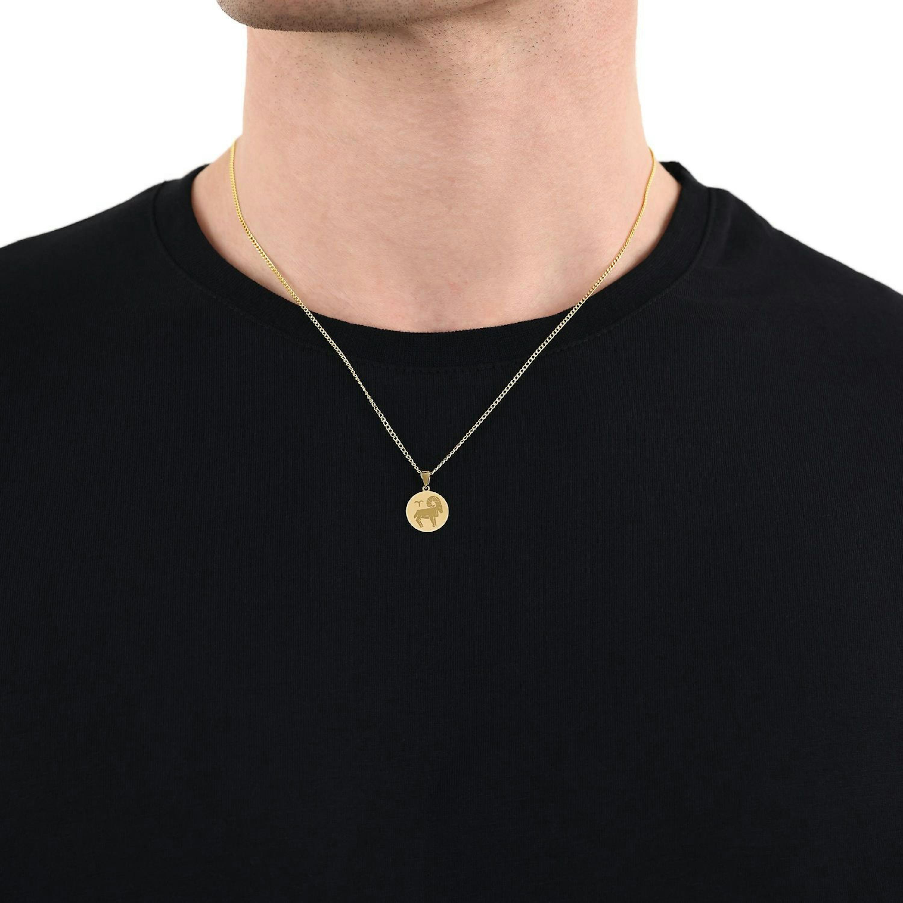 - Runder Sternzeichen-Anhänger aus teilmattiertem 375er Gelbgold gefertigt - Motiv: Widder (21. März - 20. April)