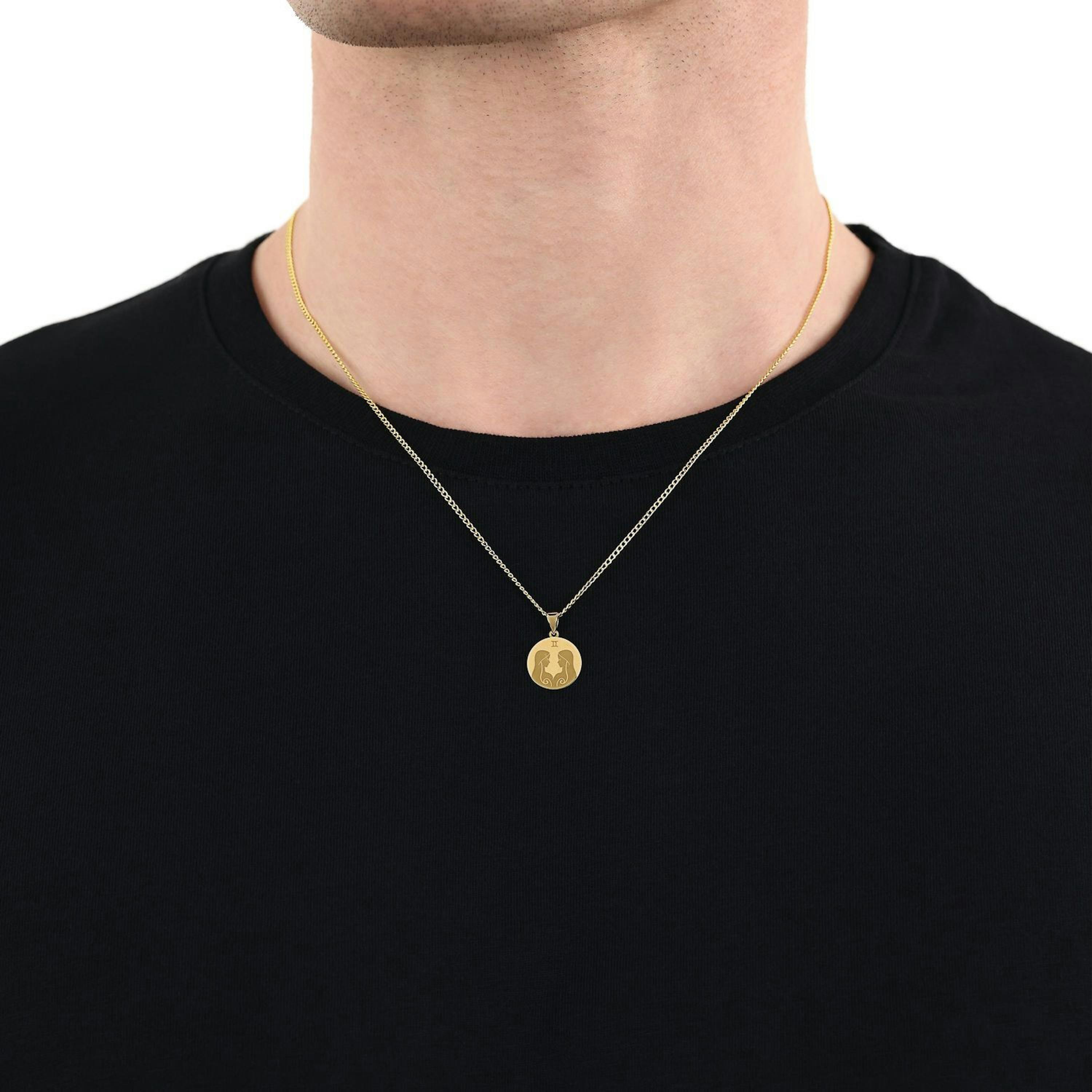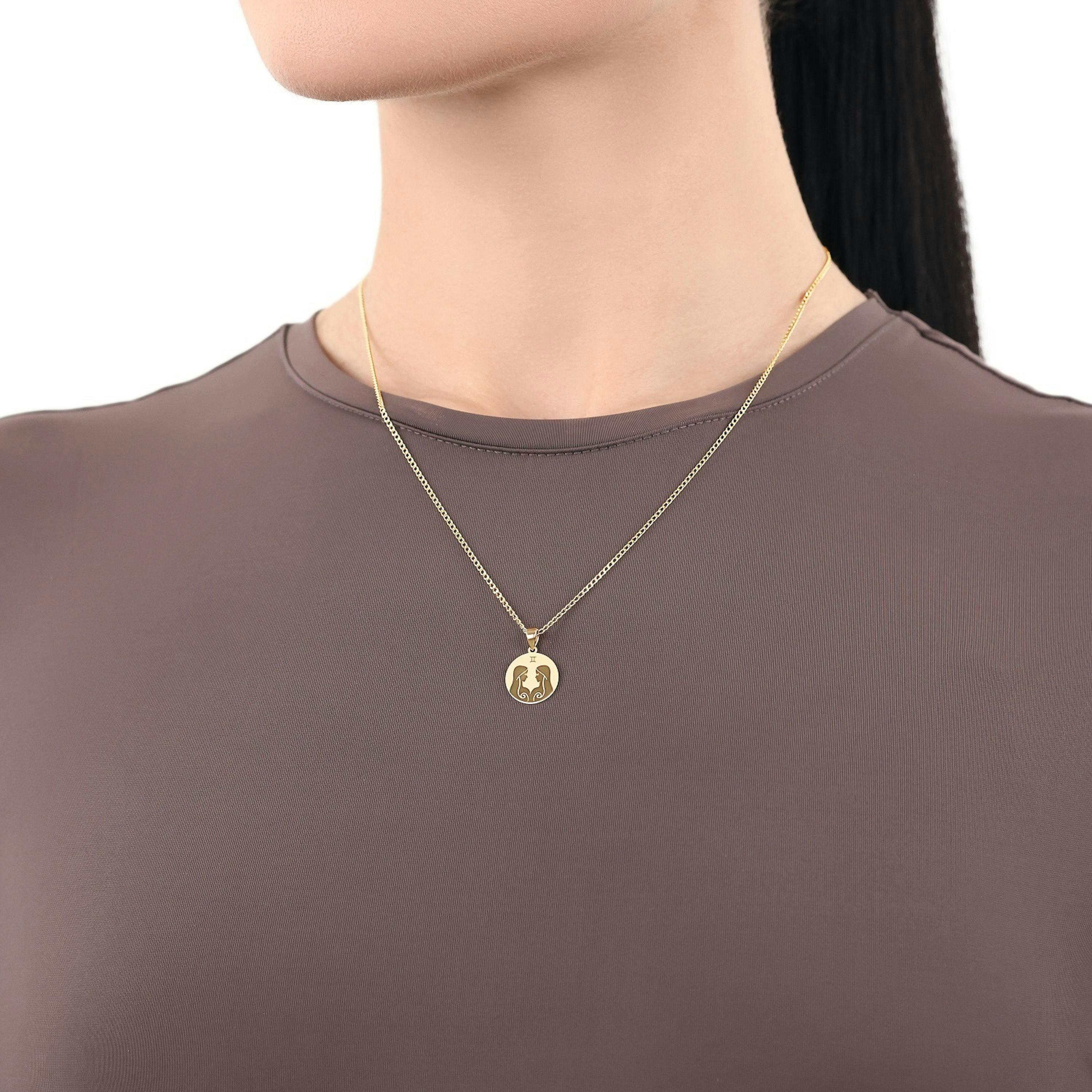 - Runder Sternzeichen-Anhänger aus teilmattiertem 375er Gelbgold gefertigt - Motiv: Zwillinge (21. Mai - 21. Juni)