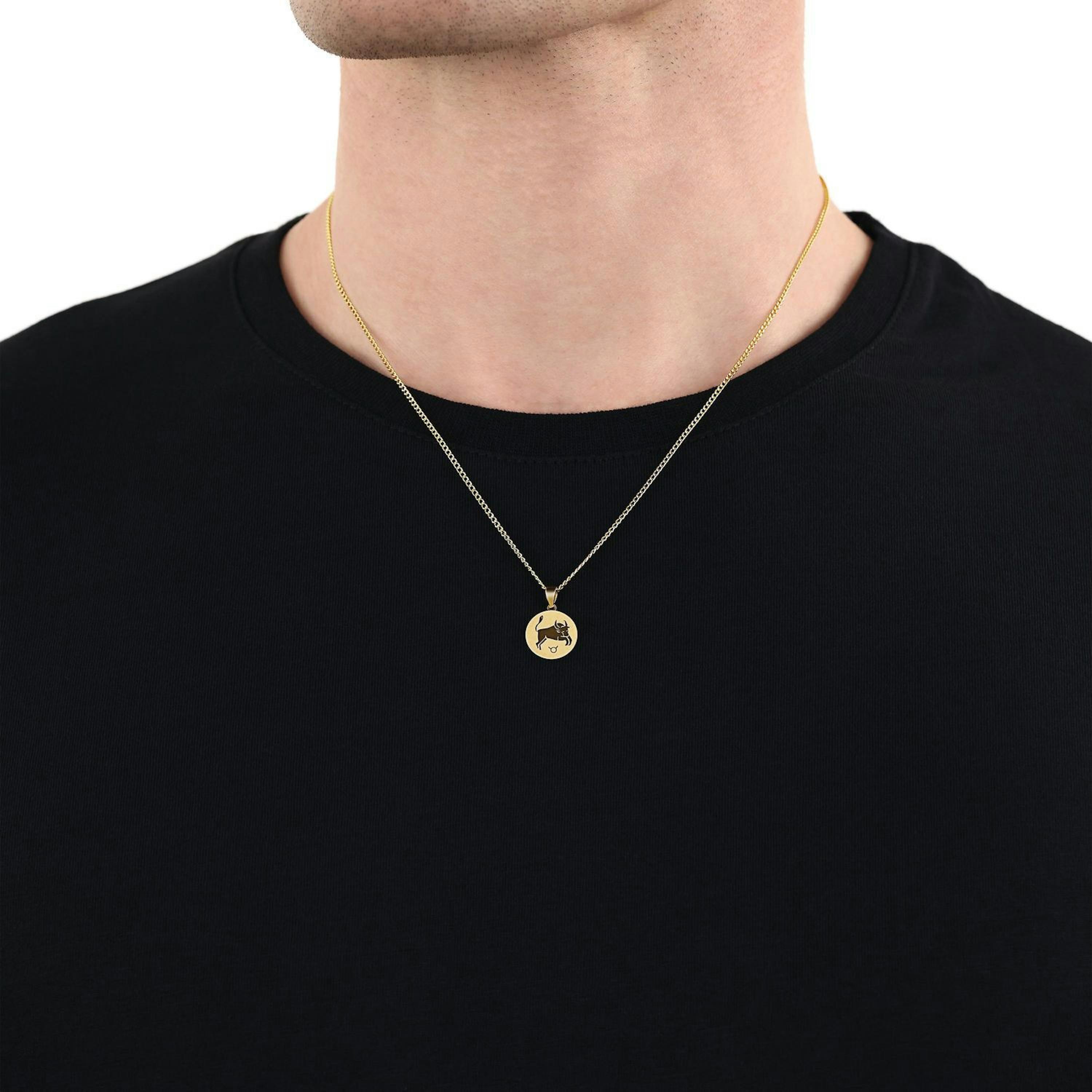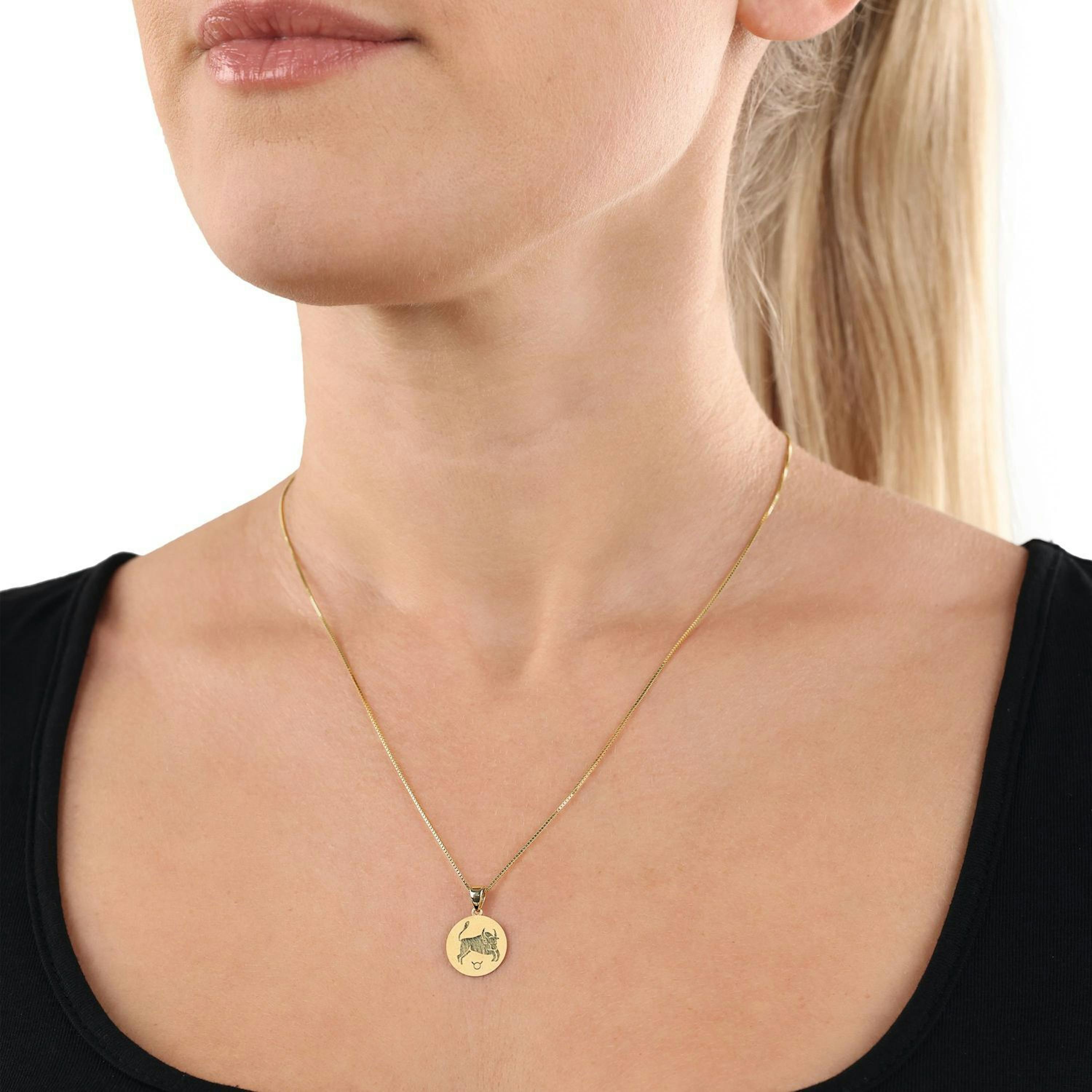 - Runder Sternzeichen-Anhänger aus teilmattiertem 375er Gelbgold gefertigt - Motiv: Stier (21. April - 20. Mai)