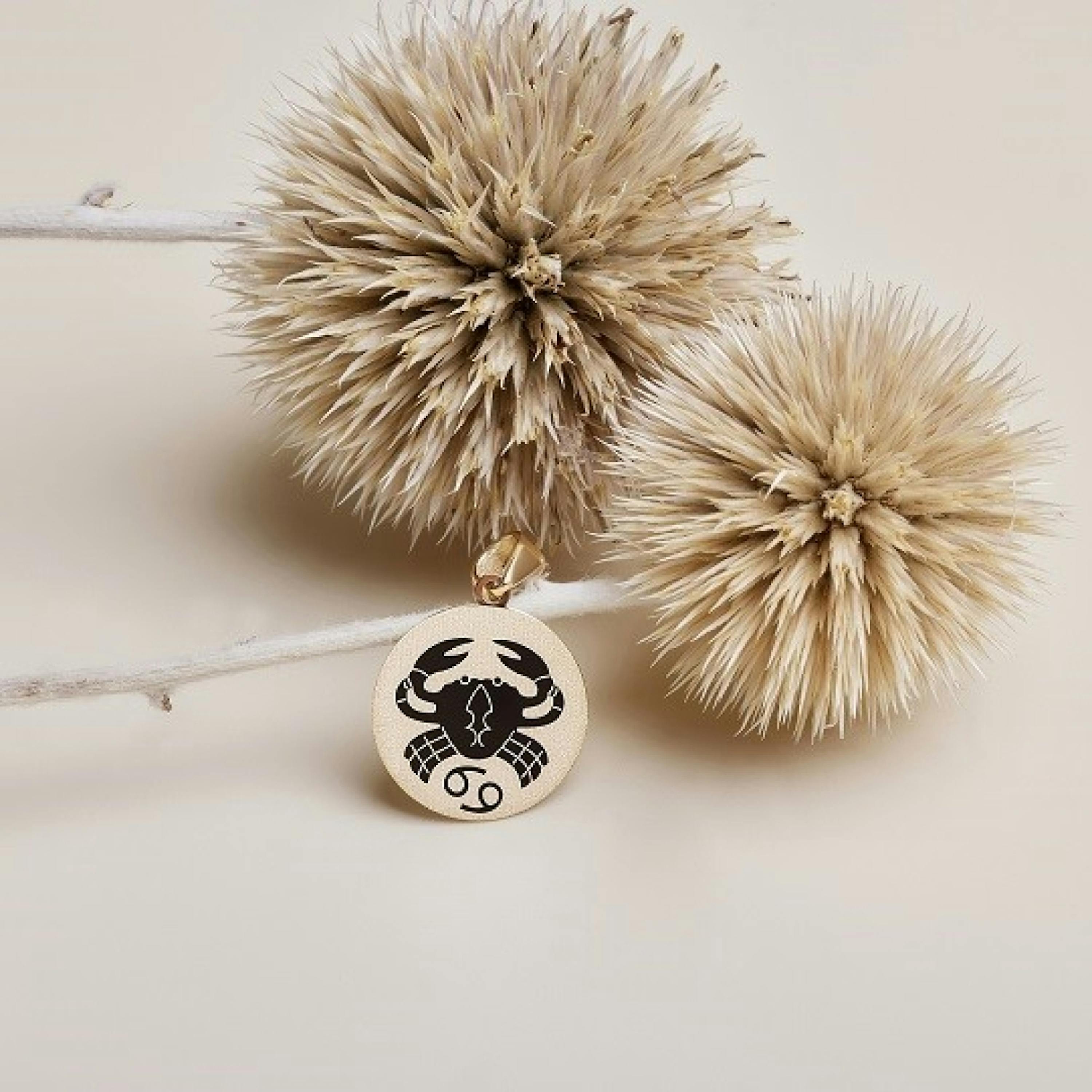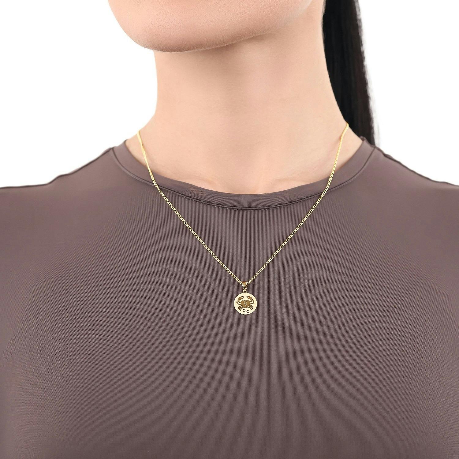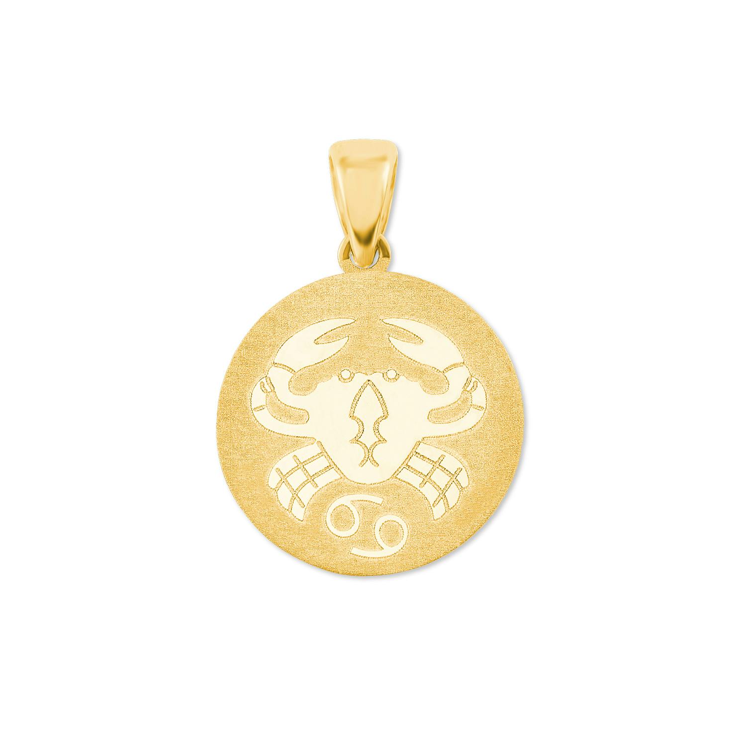 - Runder Sternzeichen-Anhänger aus teilmattiertem 375er Gelbgold gefertigt - Motiv: Krebs (22. Juni - 22. Juli)