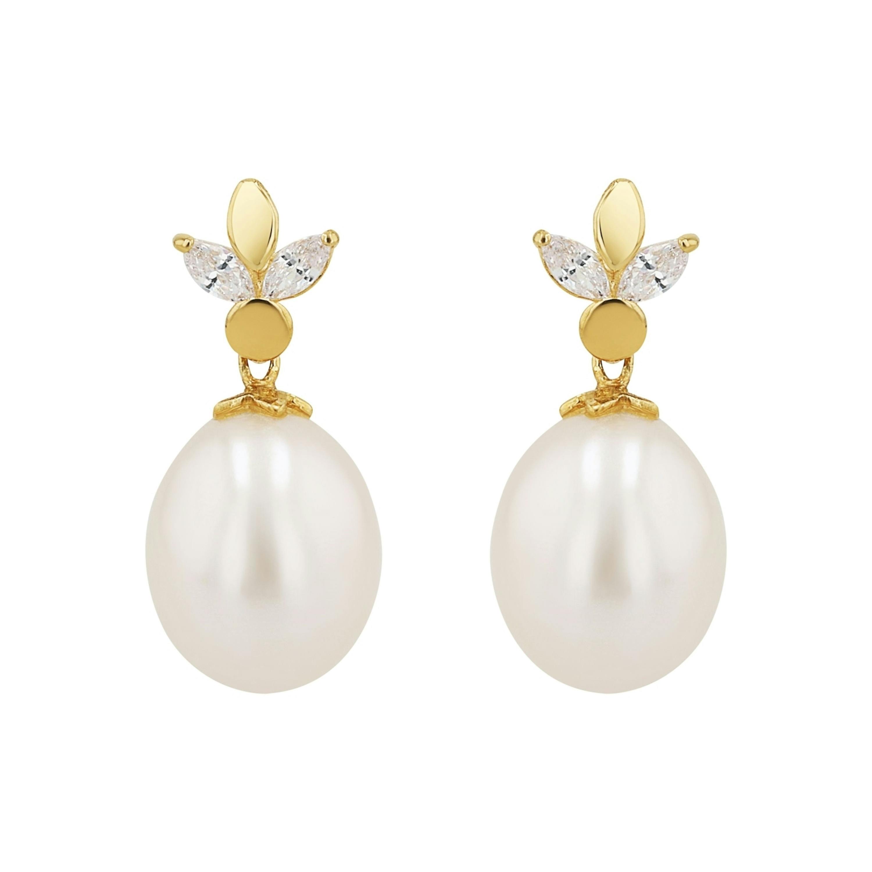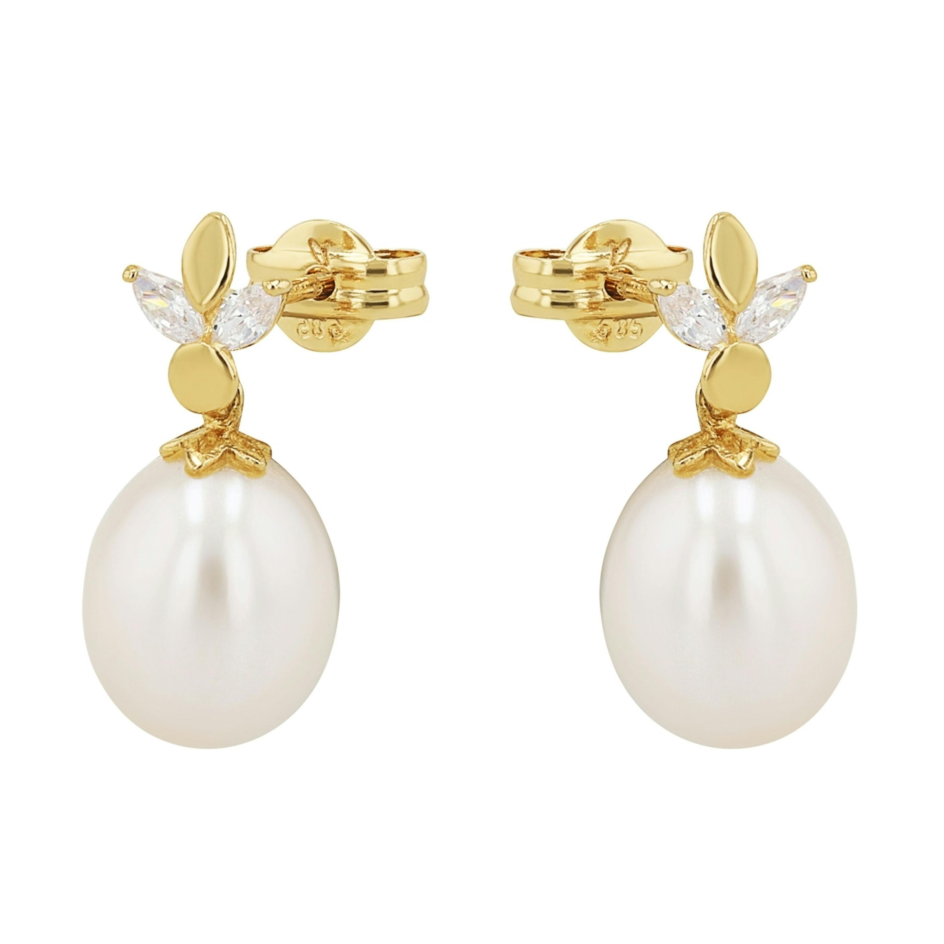 - Schöne Perlen-Ohrringe mit floralem Design der Marke Amor Echtschmuck aus hochwertigem 585er Gelbgold