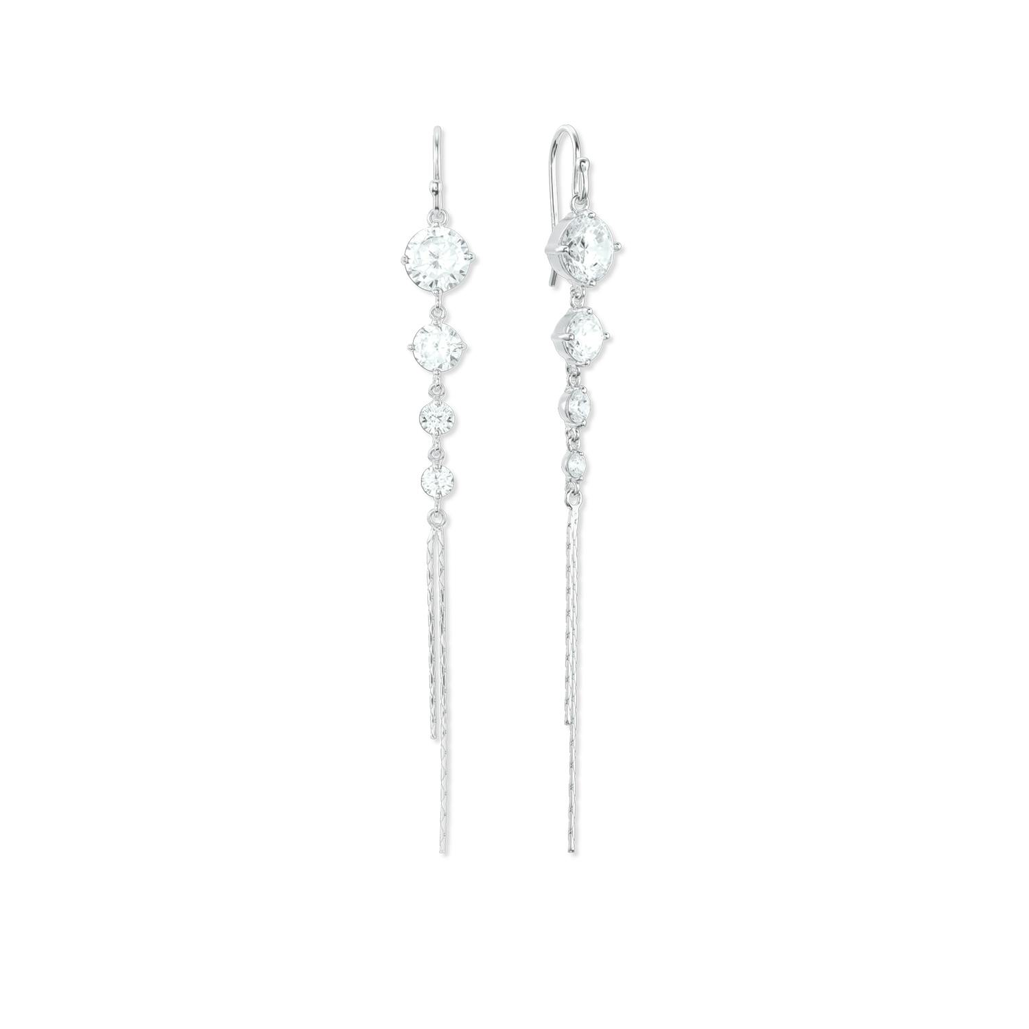 Diese tollen Ohrhänger aus 925 Sterling Silber sind schlicht und auffällig zugleich. Wie das geht? Mit ihrer filigranen Ausarbeitung hängen sie deutlich sichtbar unaufdringlich am Ohr. Mit den jeweils vier verschieden großen Zirkonia (synth.)Steinen funkelt es zu genüge an den 7 cm langen Ohrringen, die sich mit einem einfachen Haken anbringen lassen. Tolles Accessoire, das alleine oder auch mit anderen Schmuckstücken Aufsehen erregt!