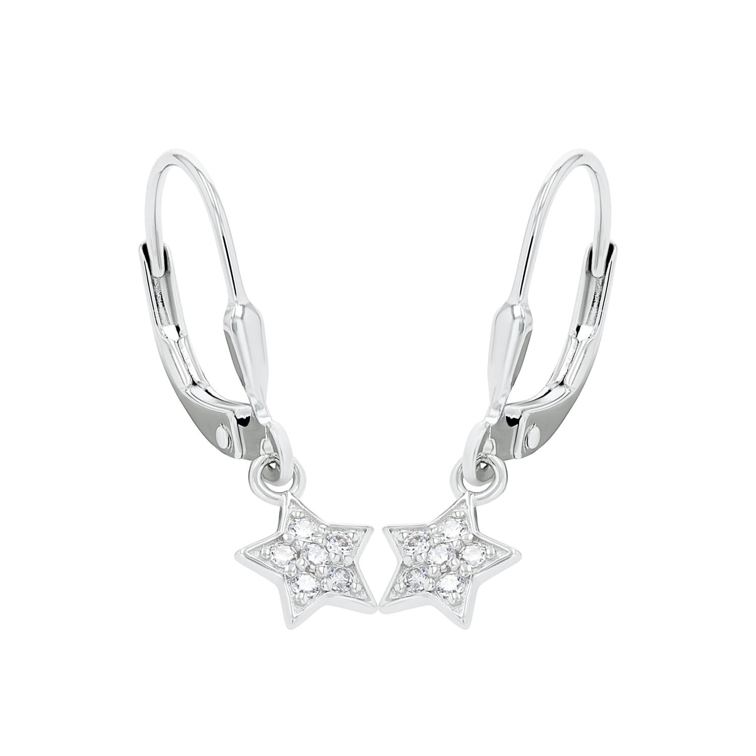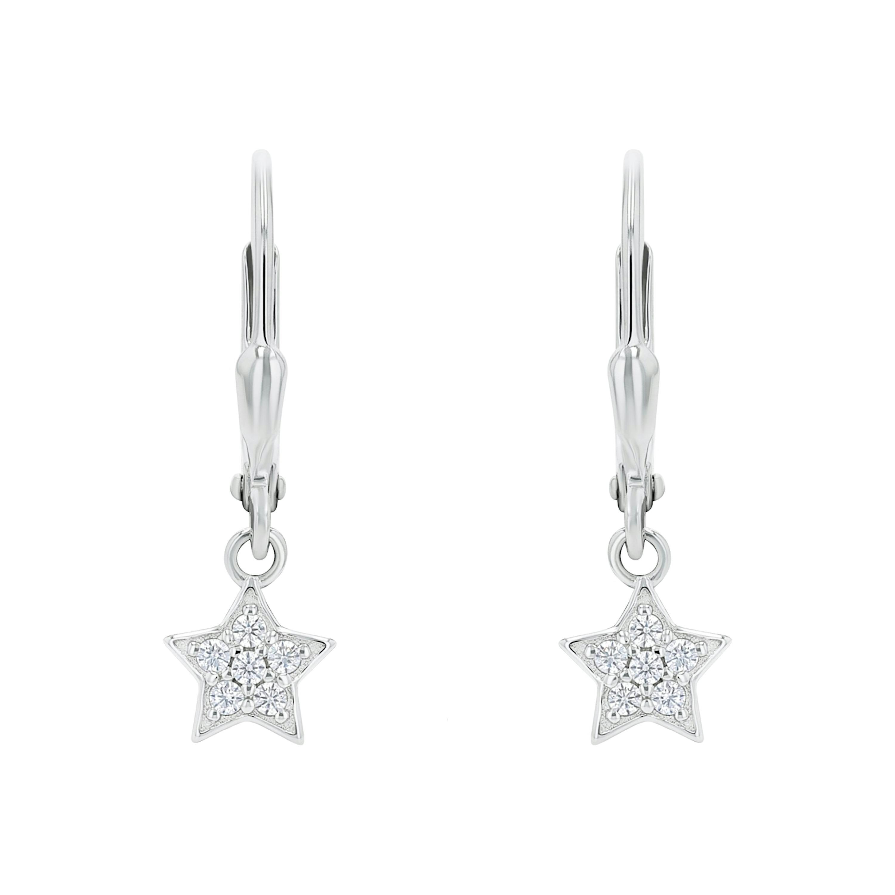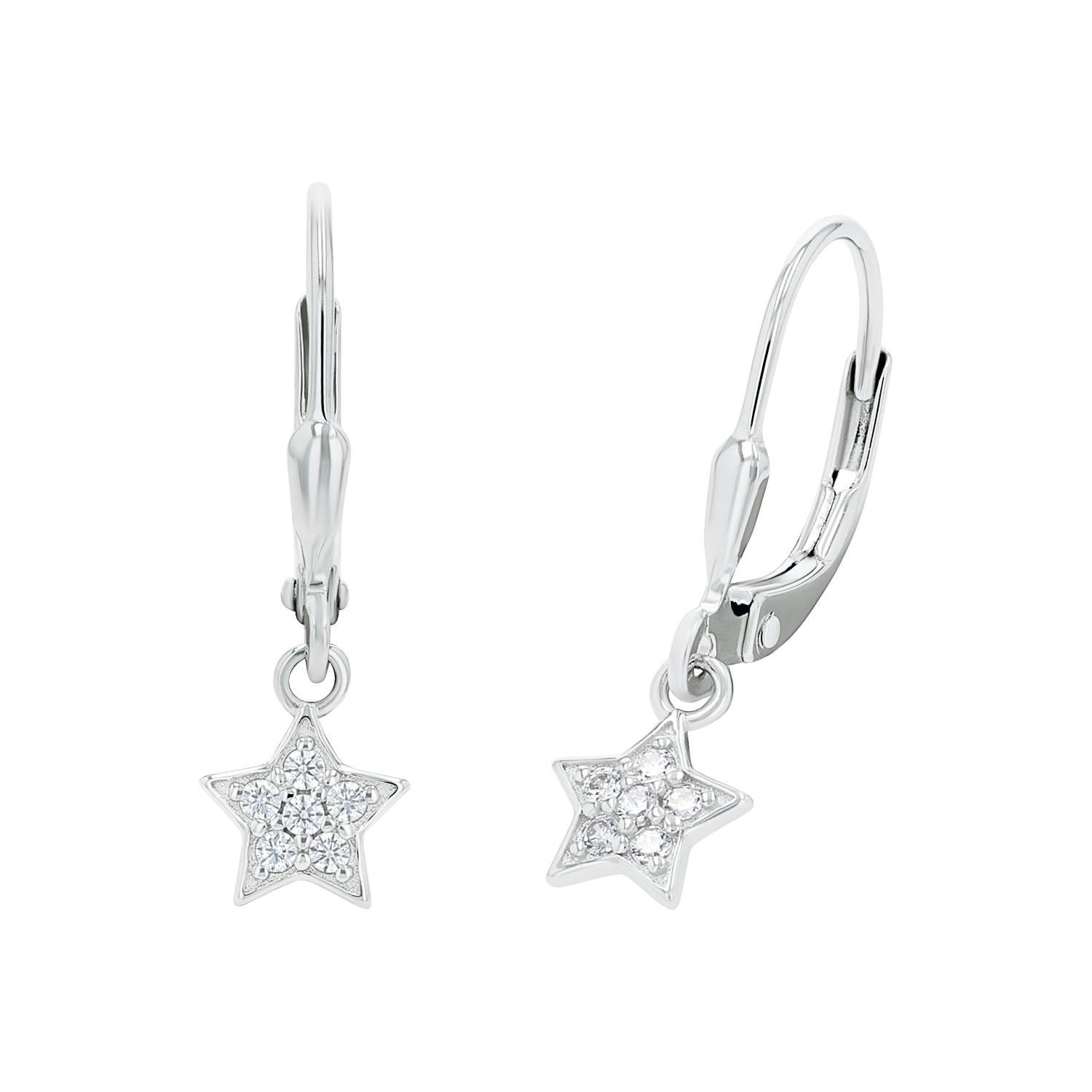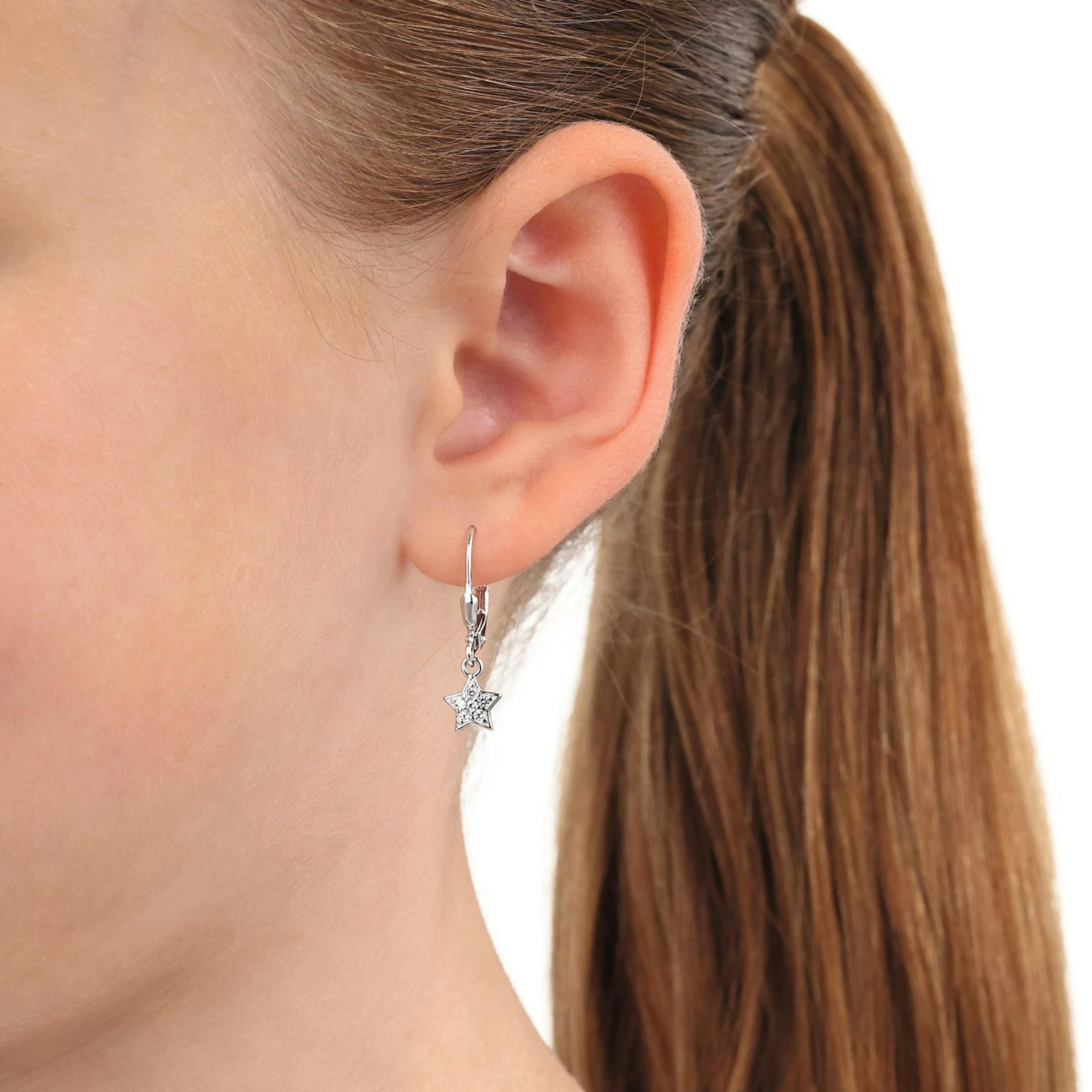 Diese Ohrhänger für Mädchen aus glänzendem 925 Sterling Silber begeistern nicht nur mit hoher Qualität des Materials und kleinen Sternen sondern ebenso mit einem Brisurverschluss, der besonders sicher hält und angenehm zu tragen ist. Natürlich dürfen auf den Sternanhängern der Ohrringen die strahlenden Zirkonia (synth.) nicht fehlen.