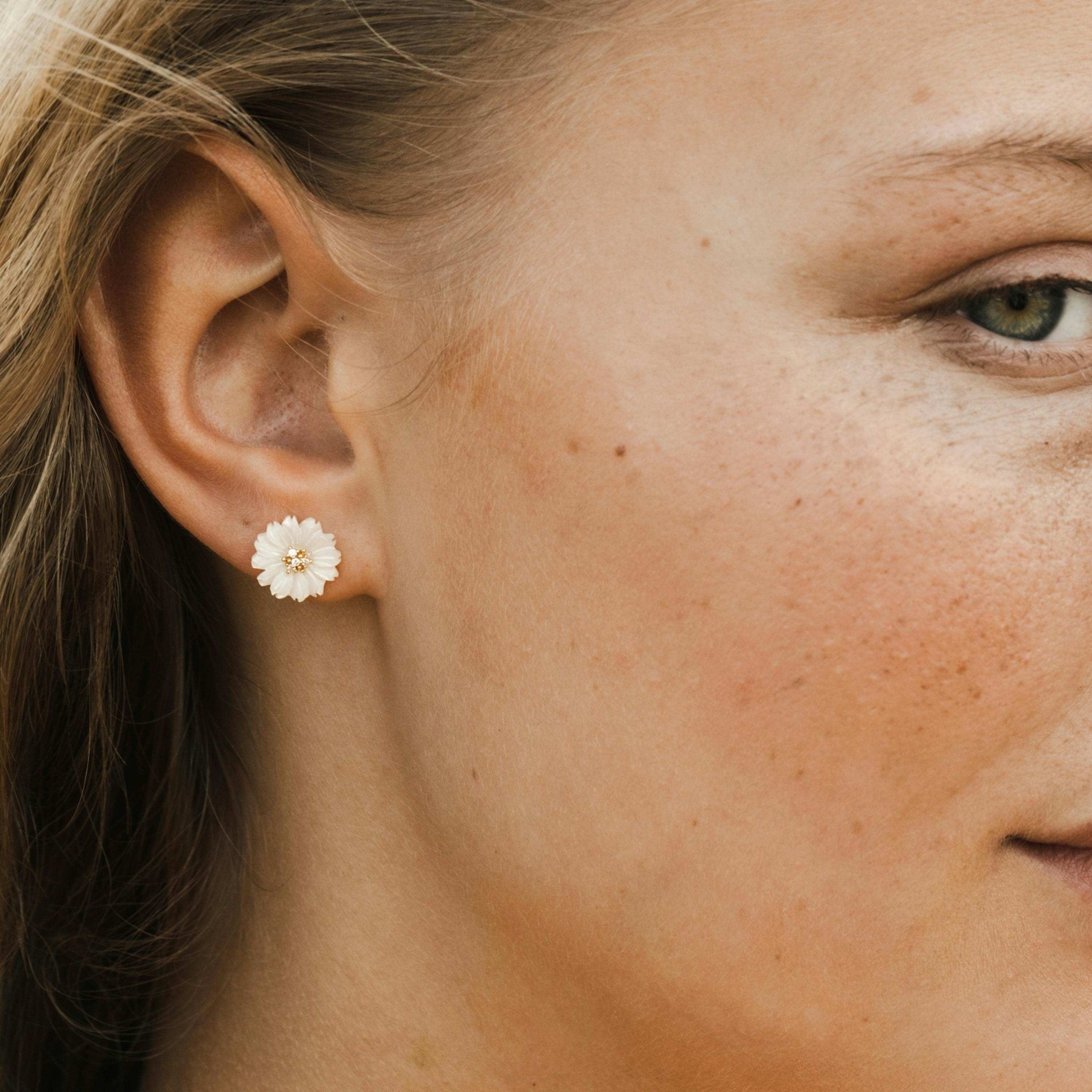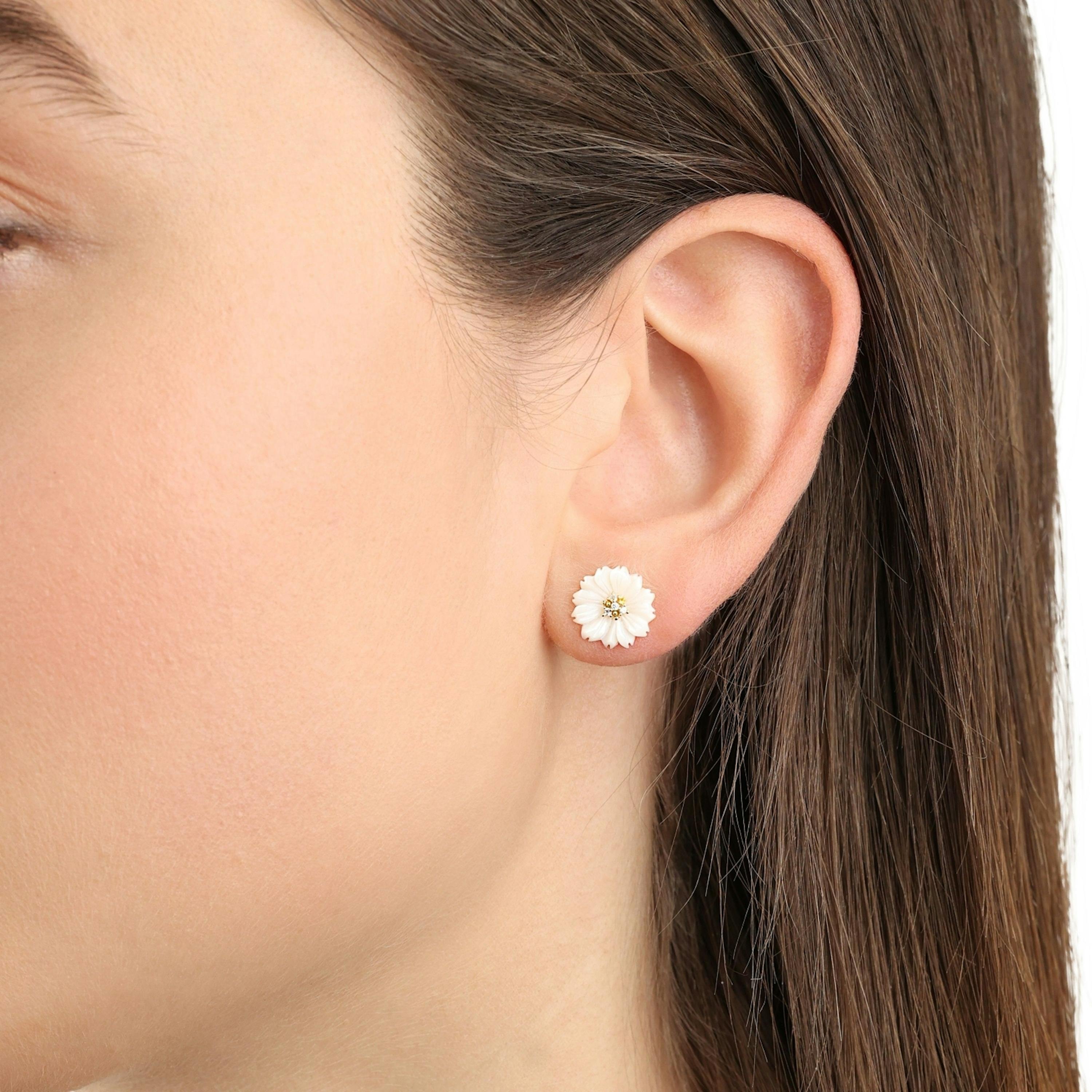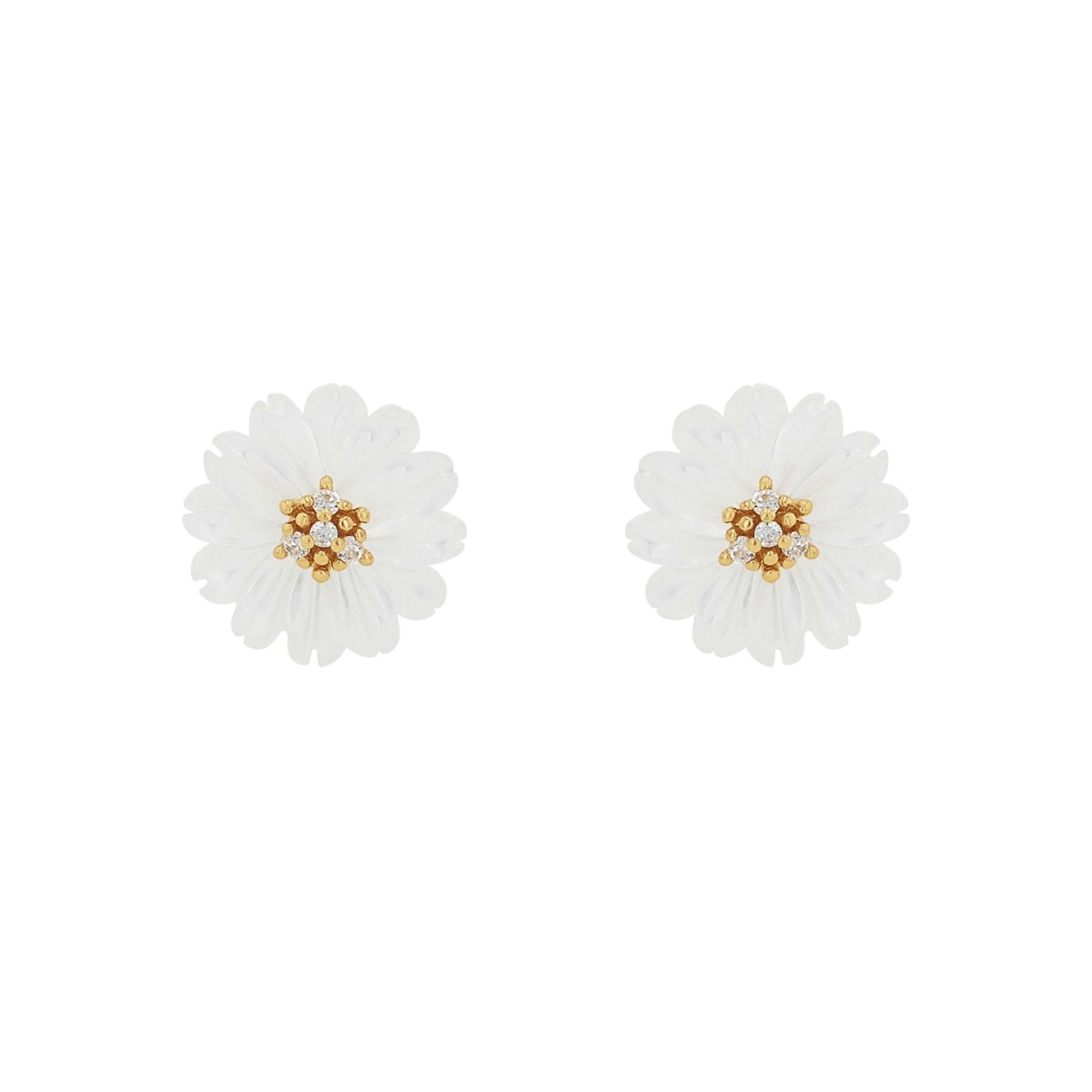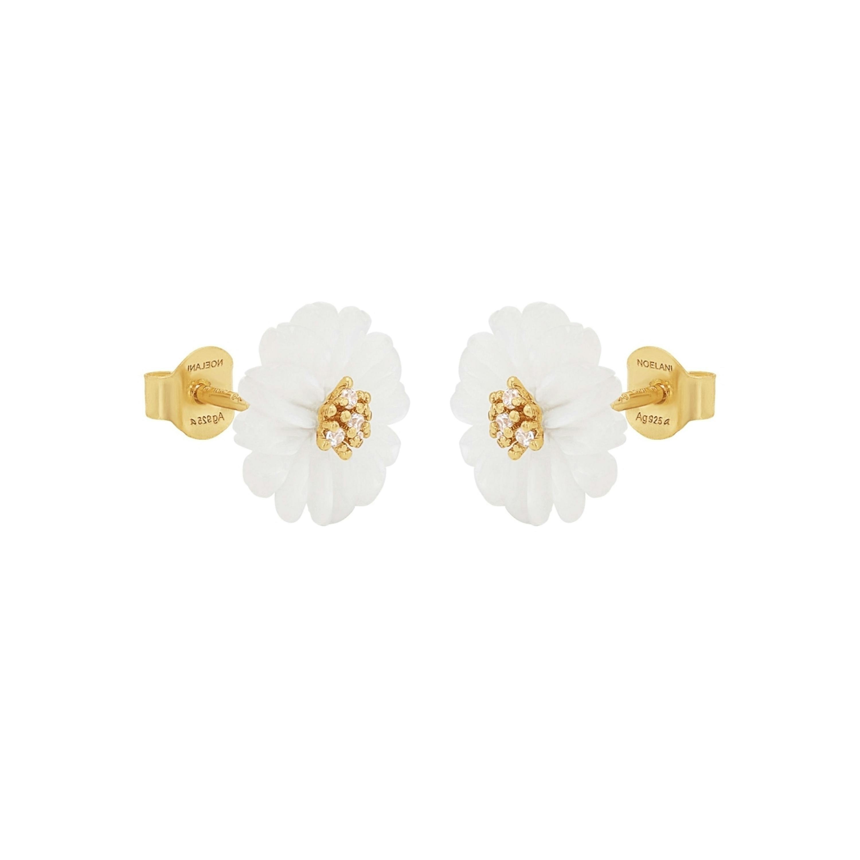 - NOELANI Classy chic Daisy Ohrstecker für Frauen mit acht Zirkoniasteinen (synth.) besetzt und Perlmutt an den Blüten