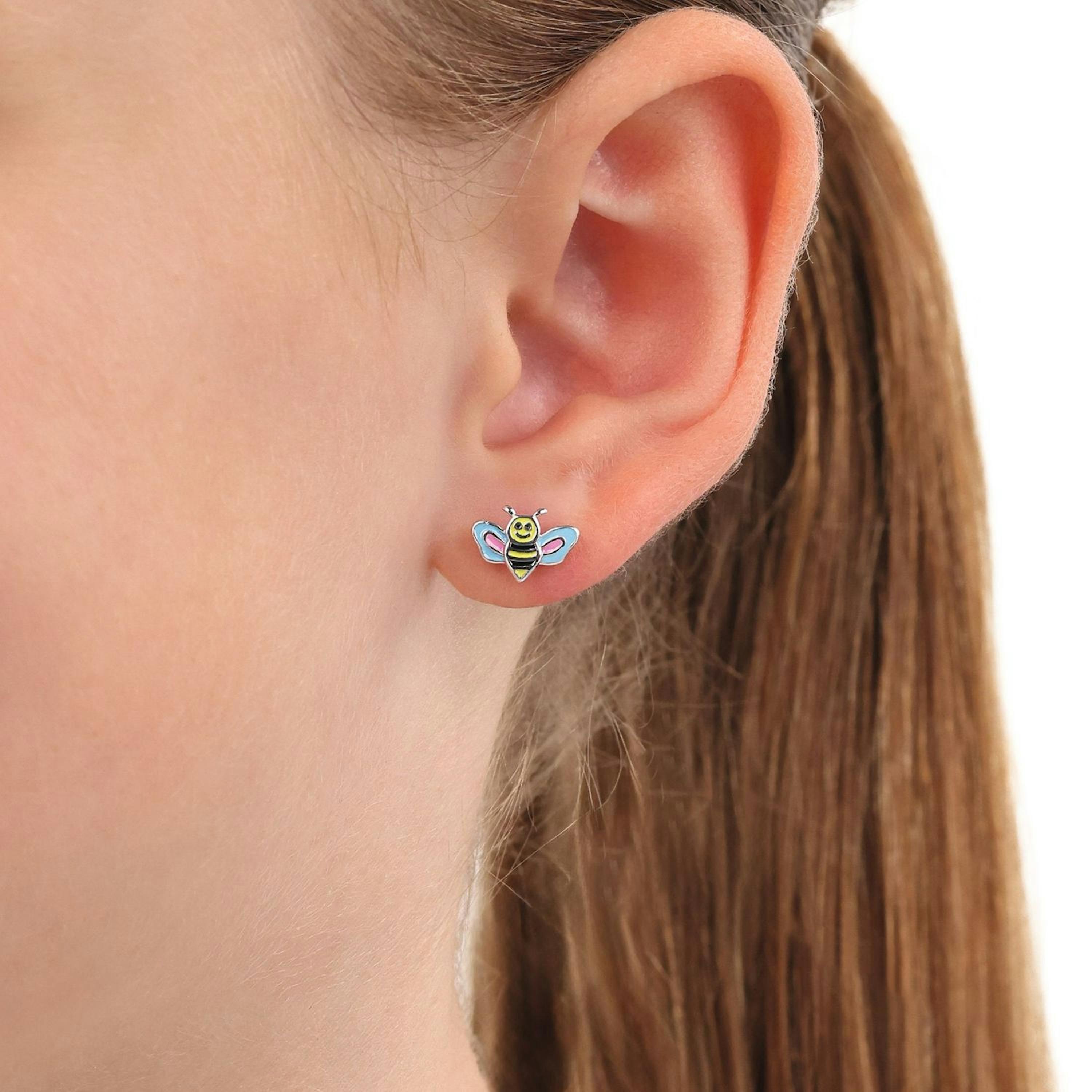 - Süße Kinder-Ohrstecker für trendbewusste kleine Mädchen mit Bienen-Motiv; Maße ca. 7 mm x 10 mm