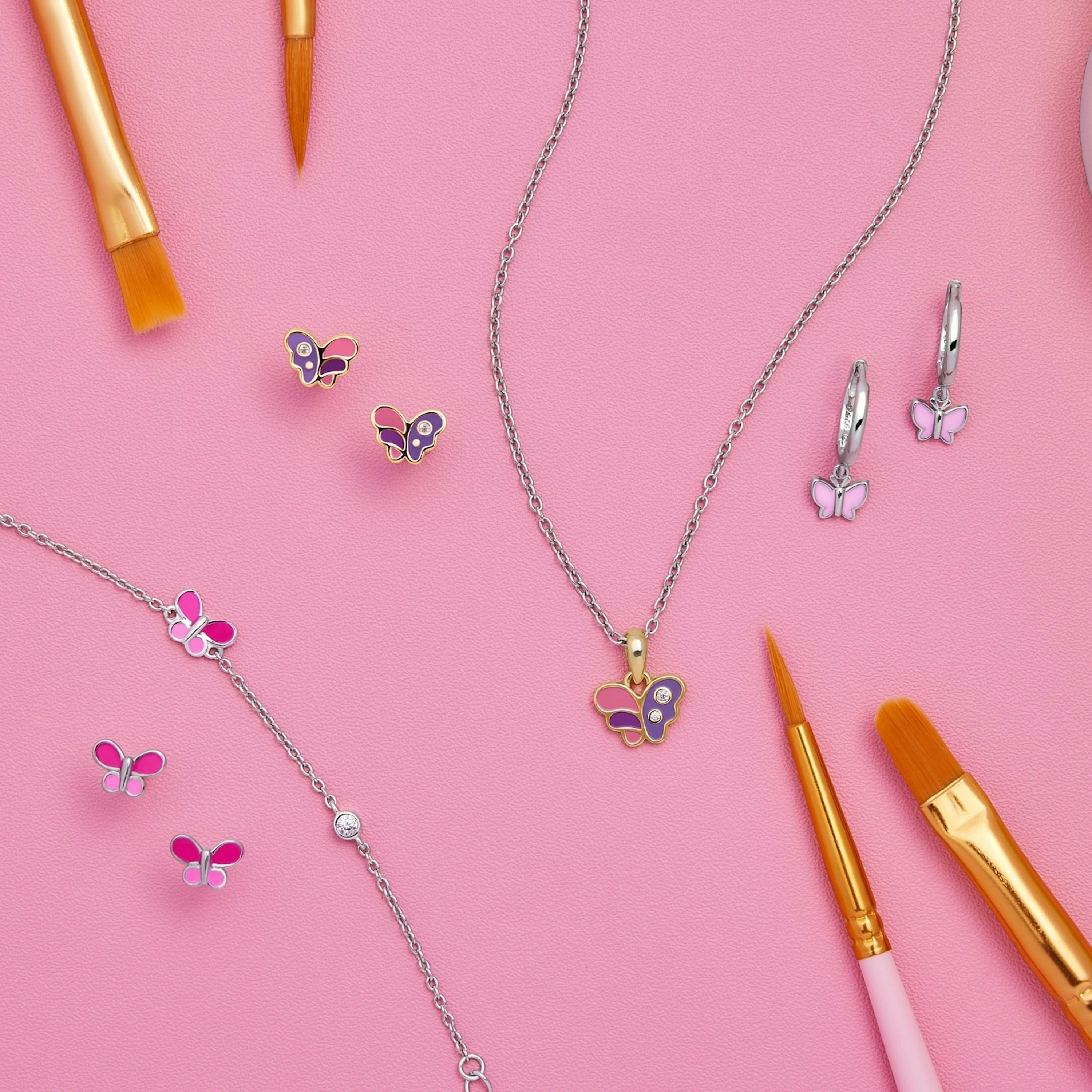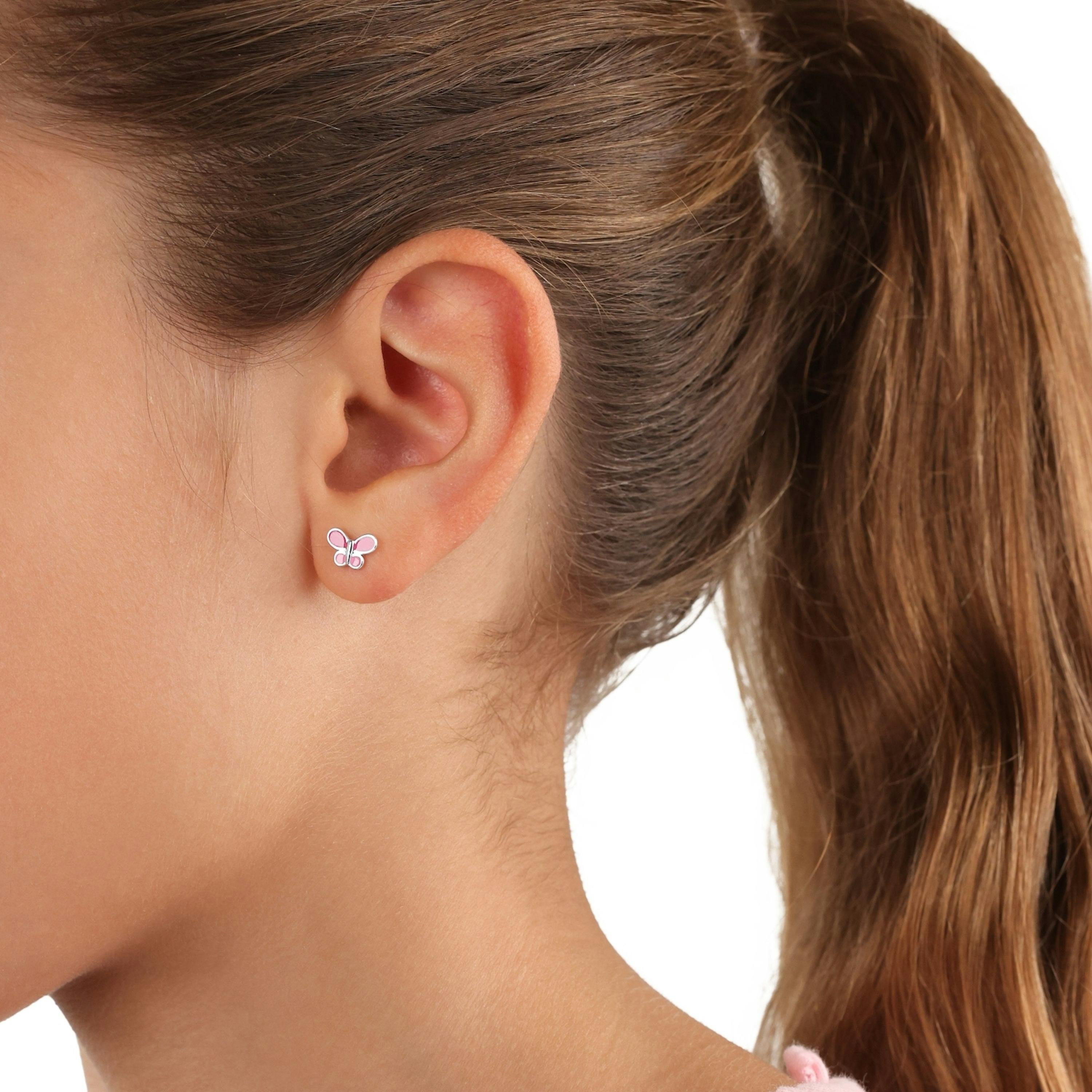 Niedliche Ohrstecker mit Schmetterling-Motiv für Mädchen von Prinzessin Lillifee. Diese süßen Ohrringe der Marke Prinzessin Lillifee wird deine kleine Prinzessin lieben. Der Ohrschmuck wurde aus hochwertigem 925 Sterling Silber hergestellt, wodurch kleine Mädchen noch länger Freude an dem Accessoire haben. Die Flügel des süßen Schmetterlings sind mit einer Emaille versehen. Die Mädchenohrringe haben Breite von 8 mm und eine Länge von 6 mm. Für den sicheren Halt beim Tragen sowie eine einfache Handhabe sorgt der praktische Steckverschluss. Die Kinderohrstecker lassen sich gerne mit weiteren Schmuckstücken kombinieren, wie beispielsweise mit dem passenden Armband oder der stimmigen Halskette.